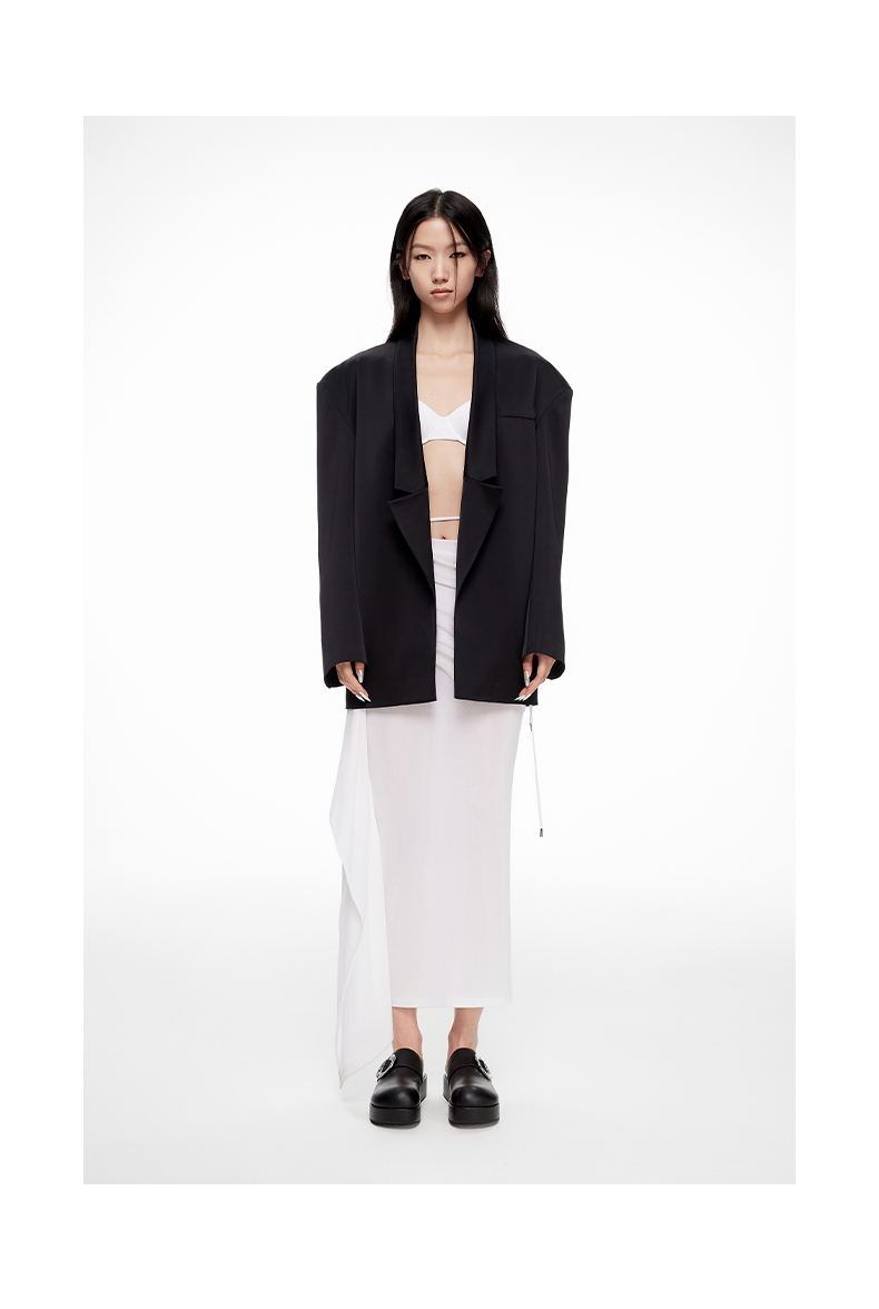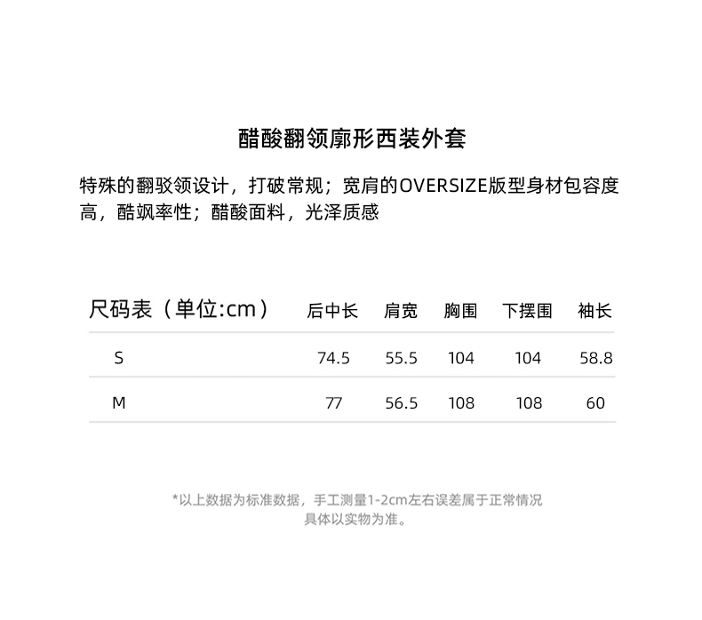 [捡漏价]lost in echo2024春季新款设计师品牌醋酸宽肩翻领廓形西装外套