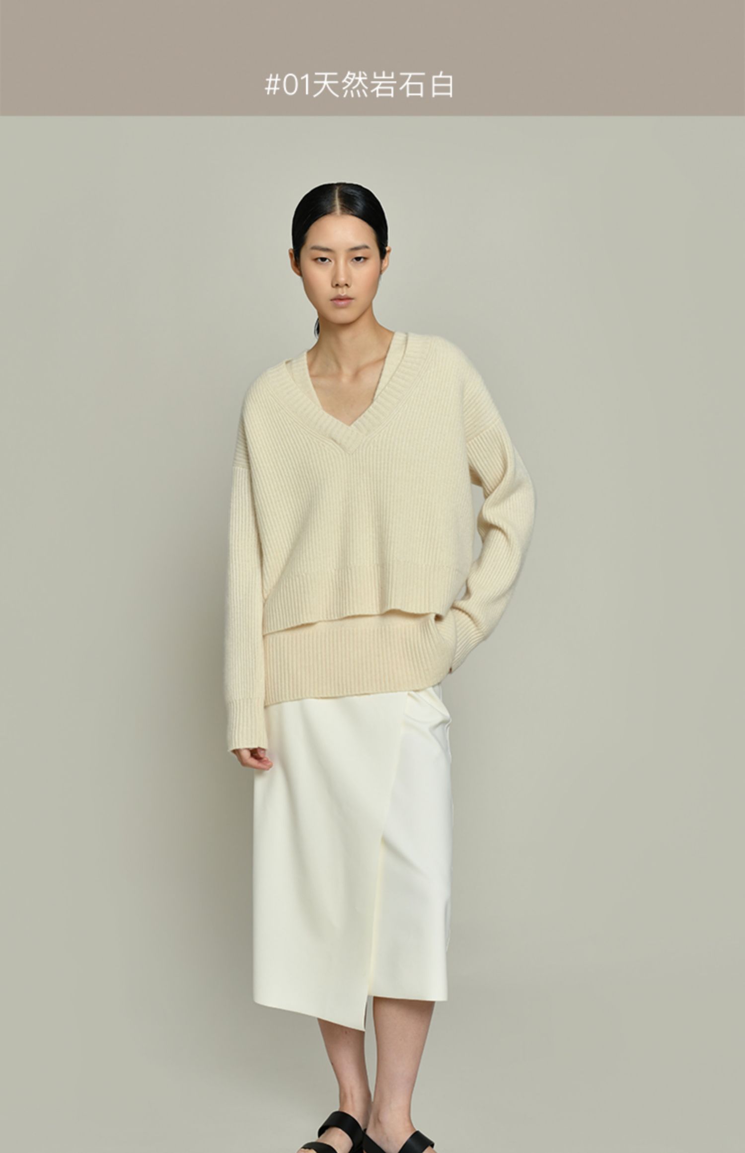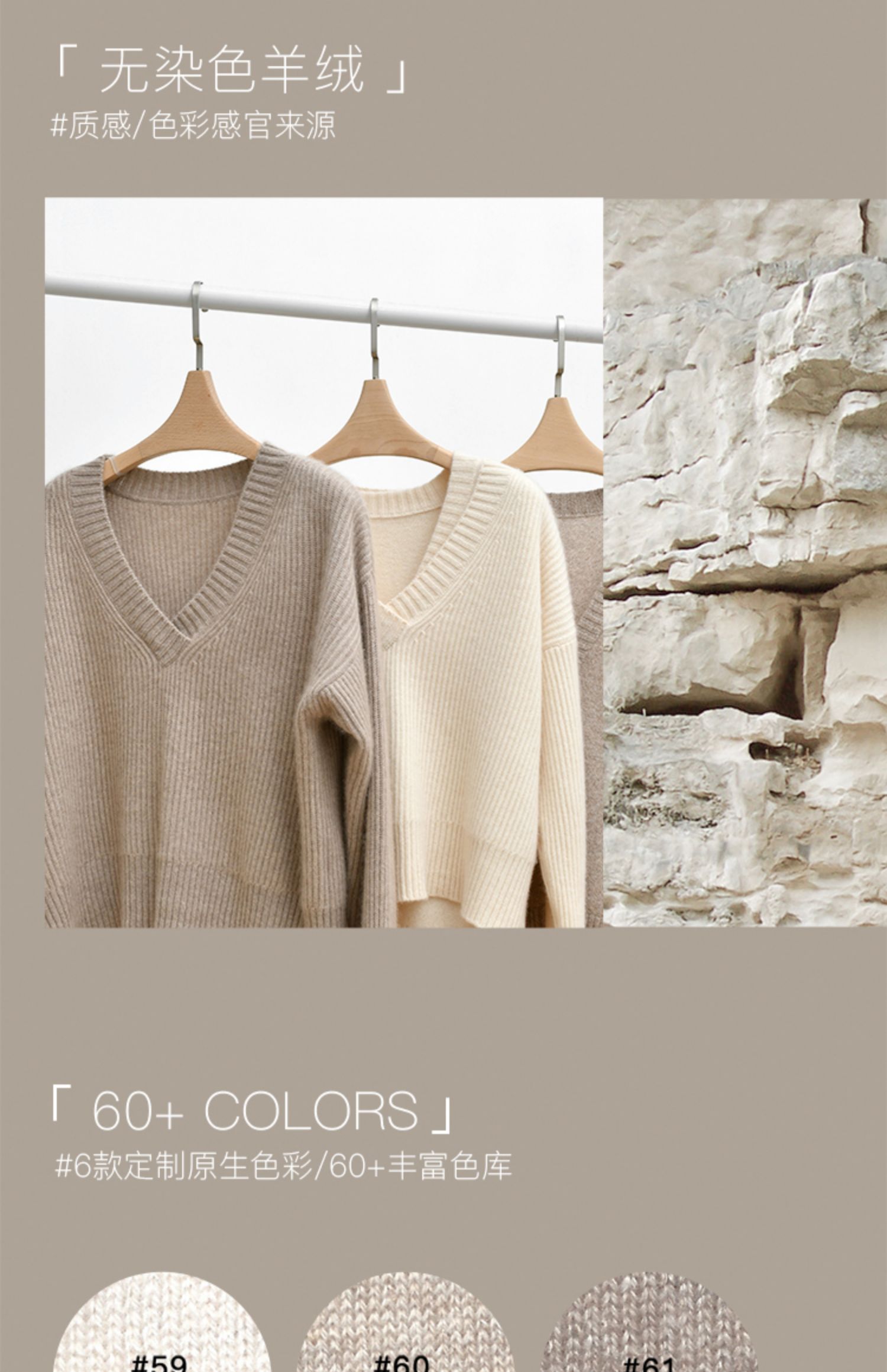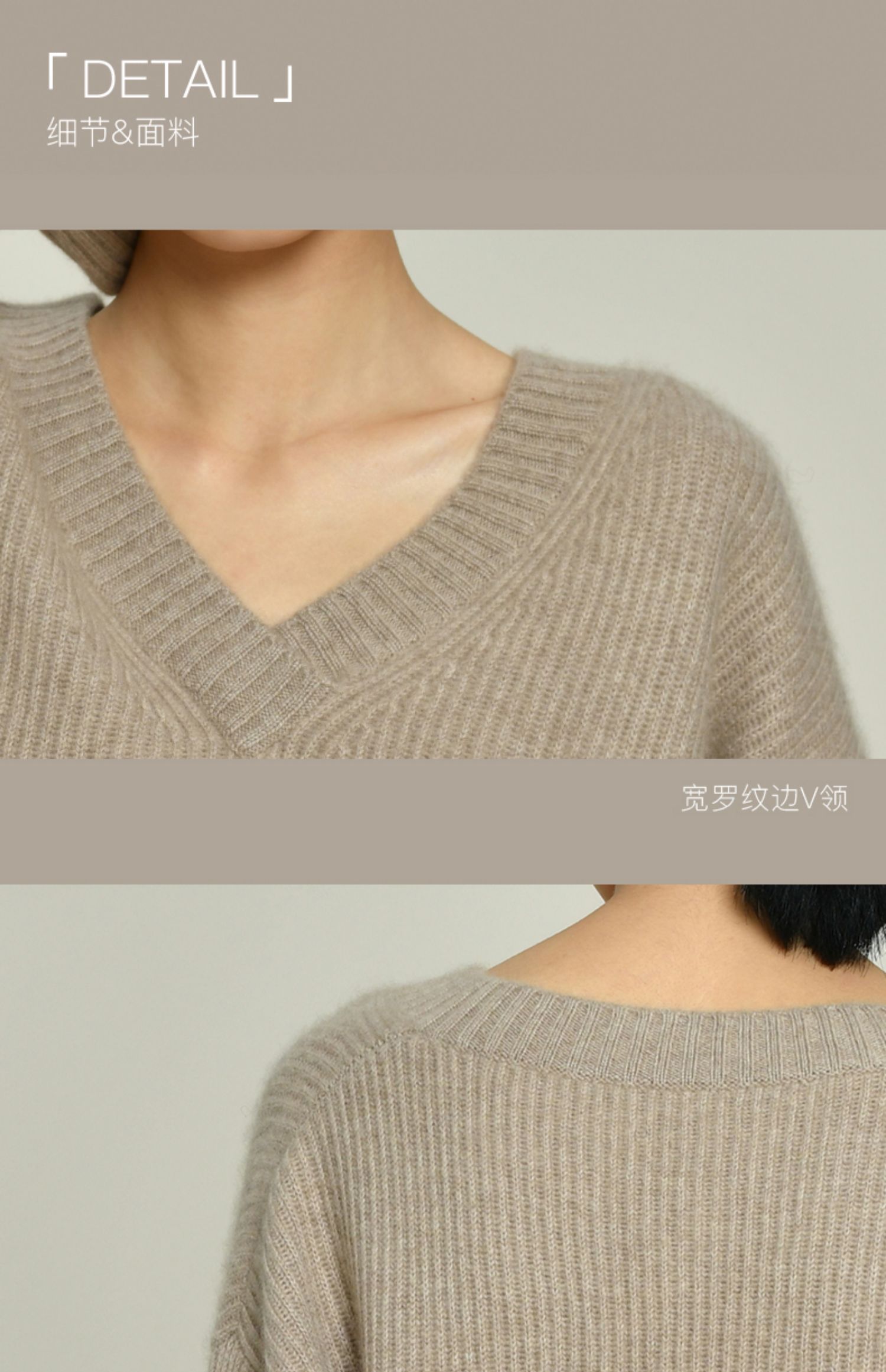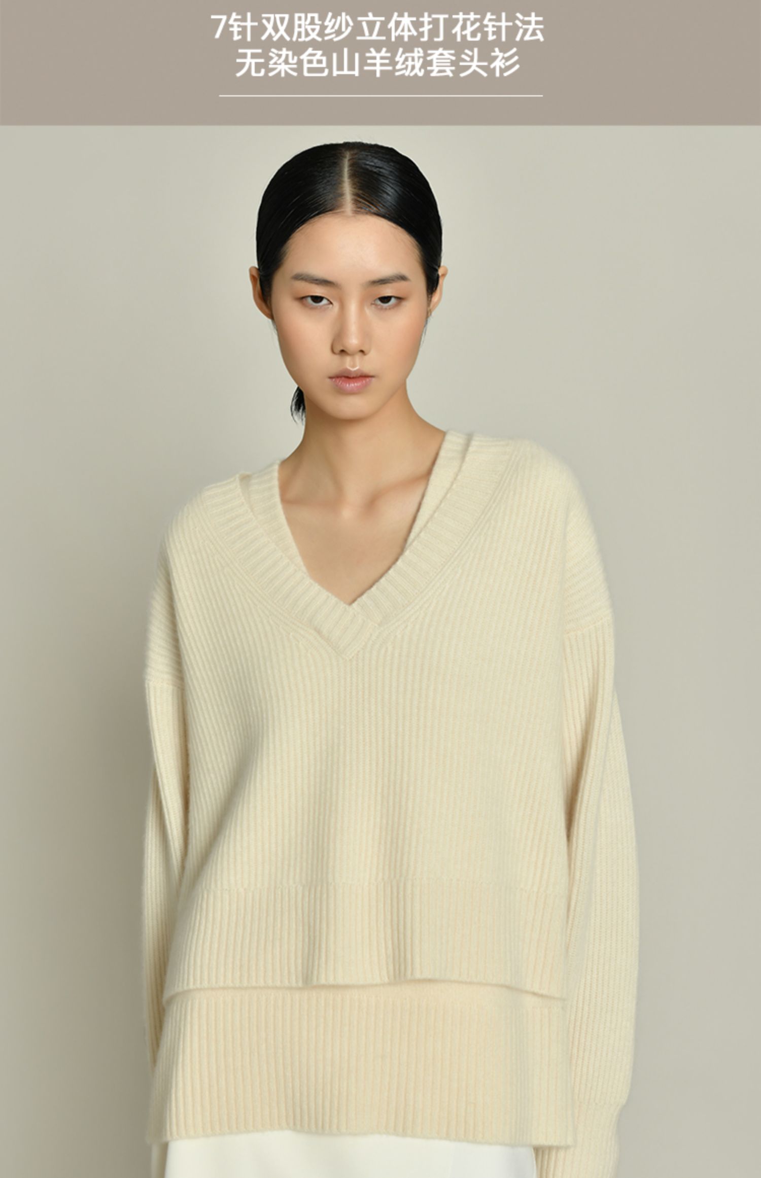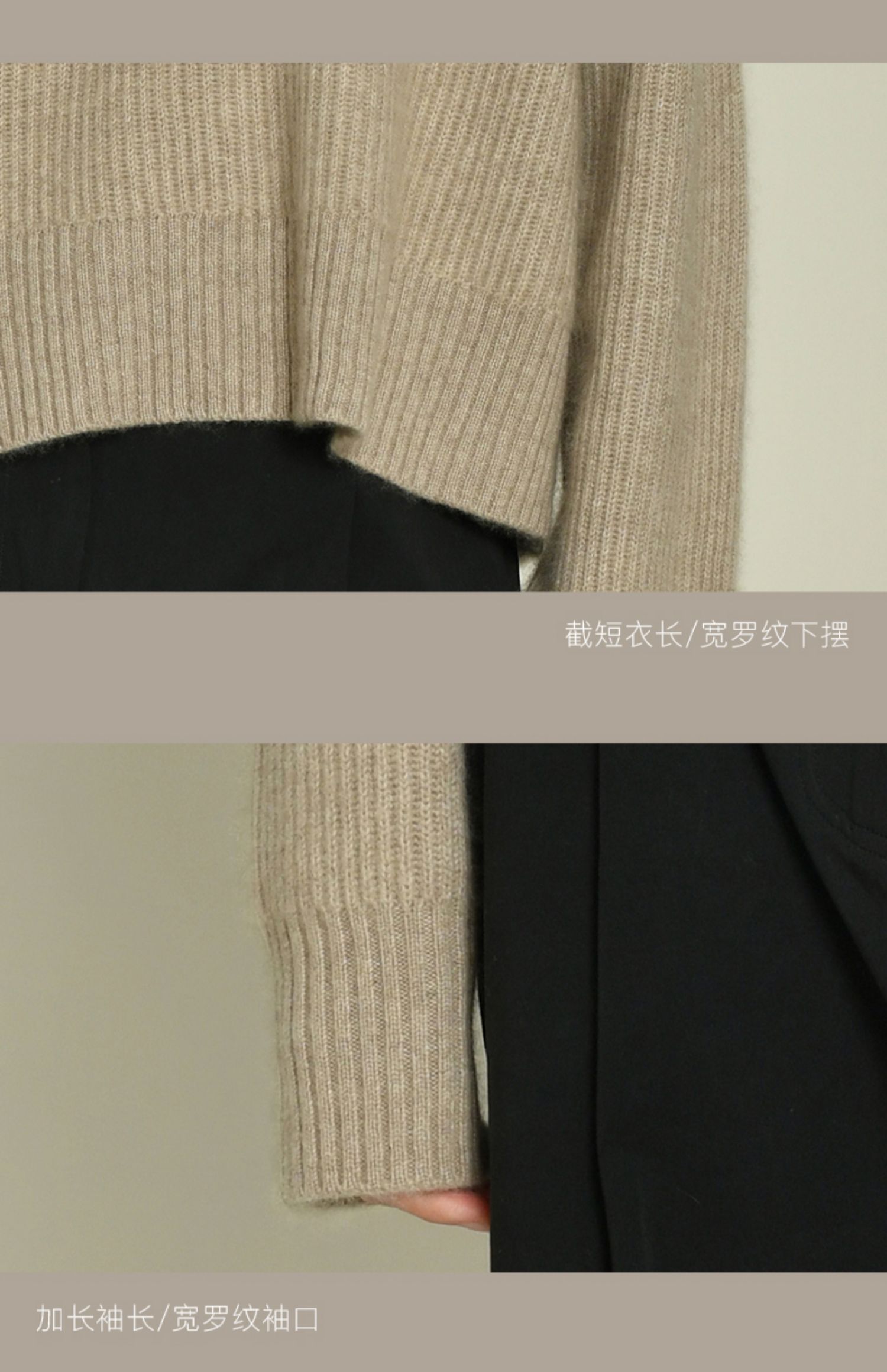 女士2021新款无染色纯山羊绒短款长袖V领套头衫