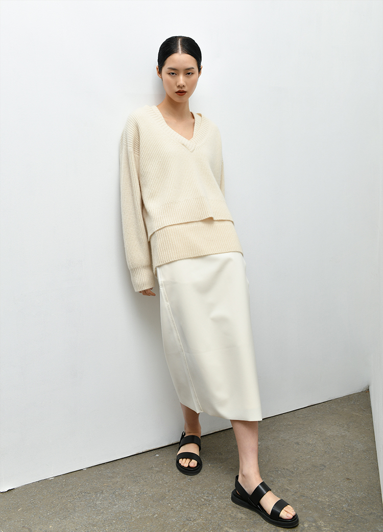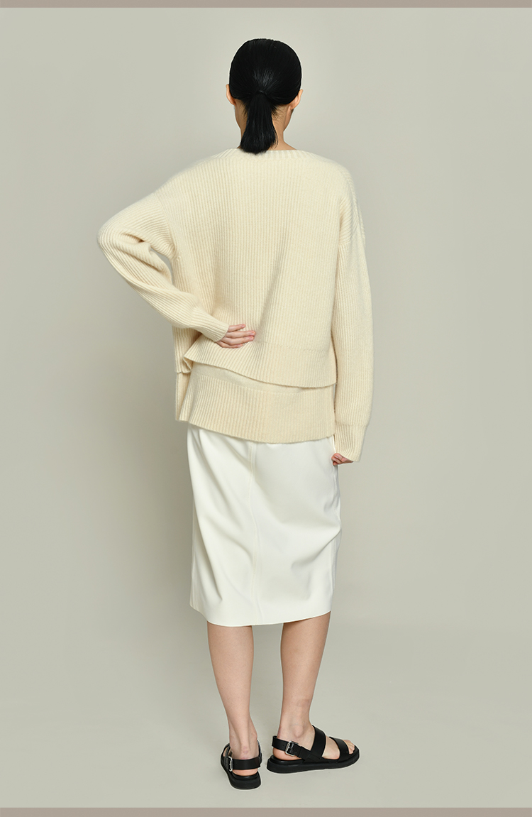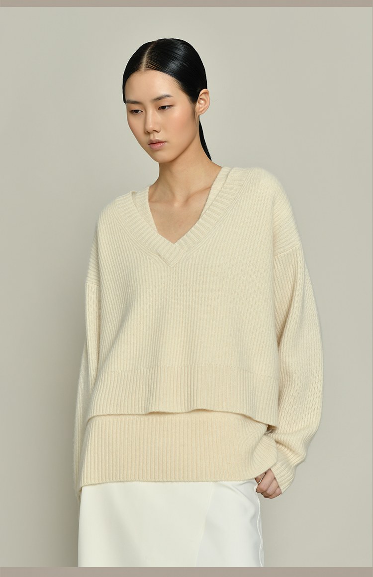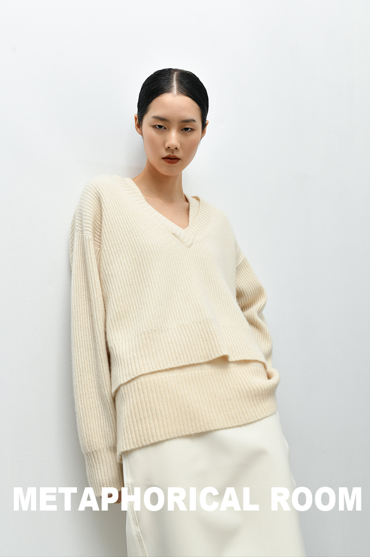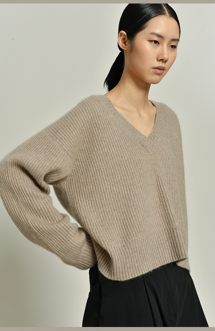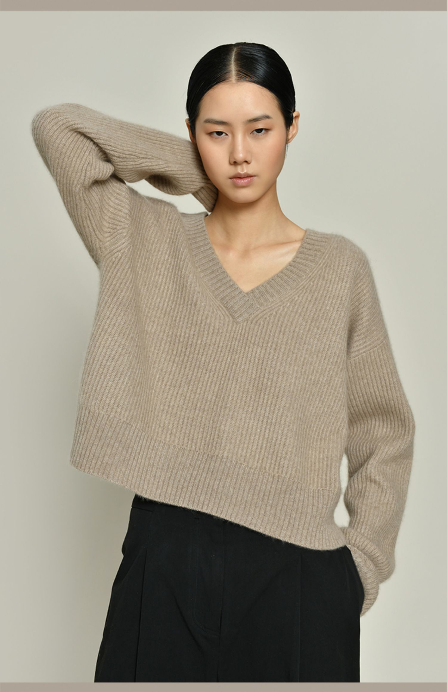 女士2021新款无染色纯山羊绒短款长袖V领套头衫