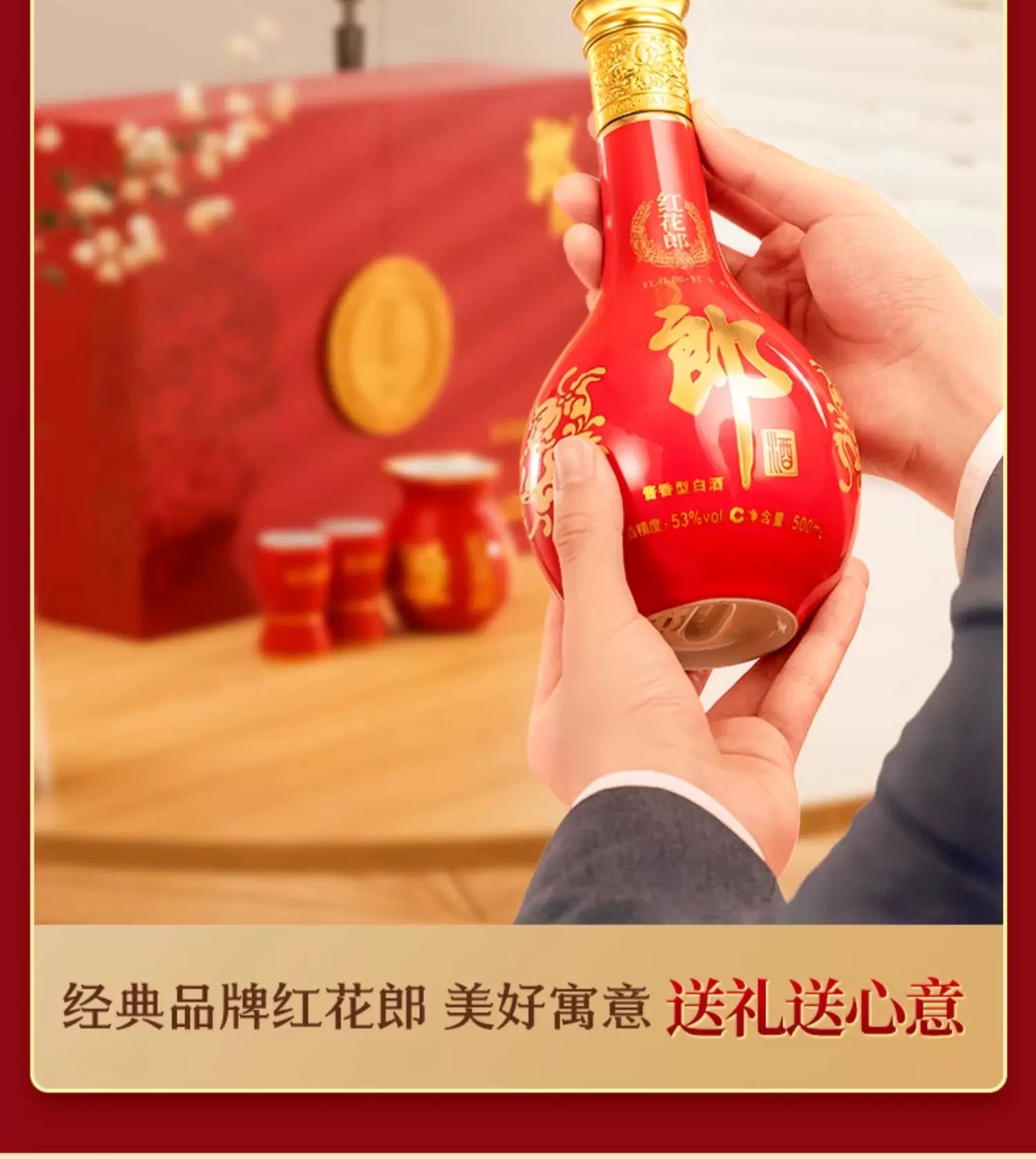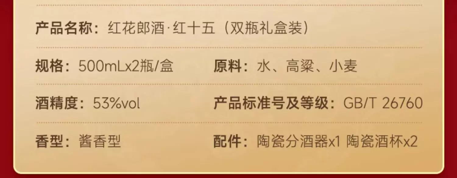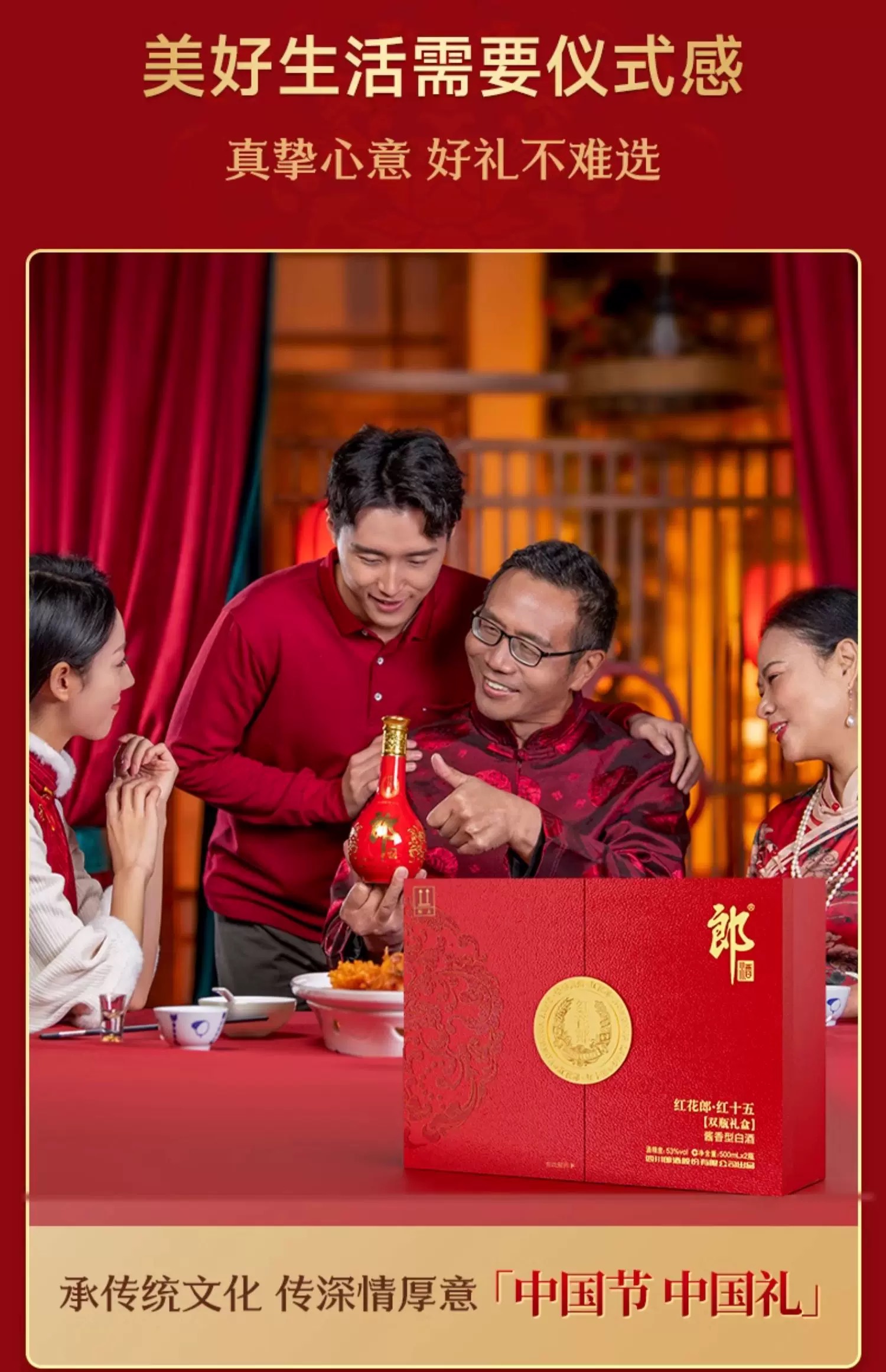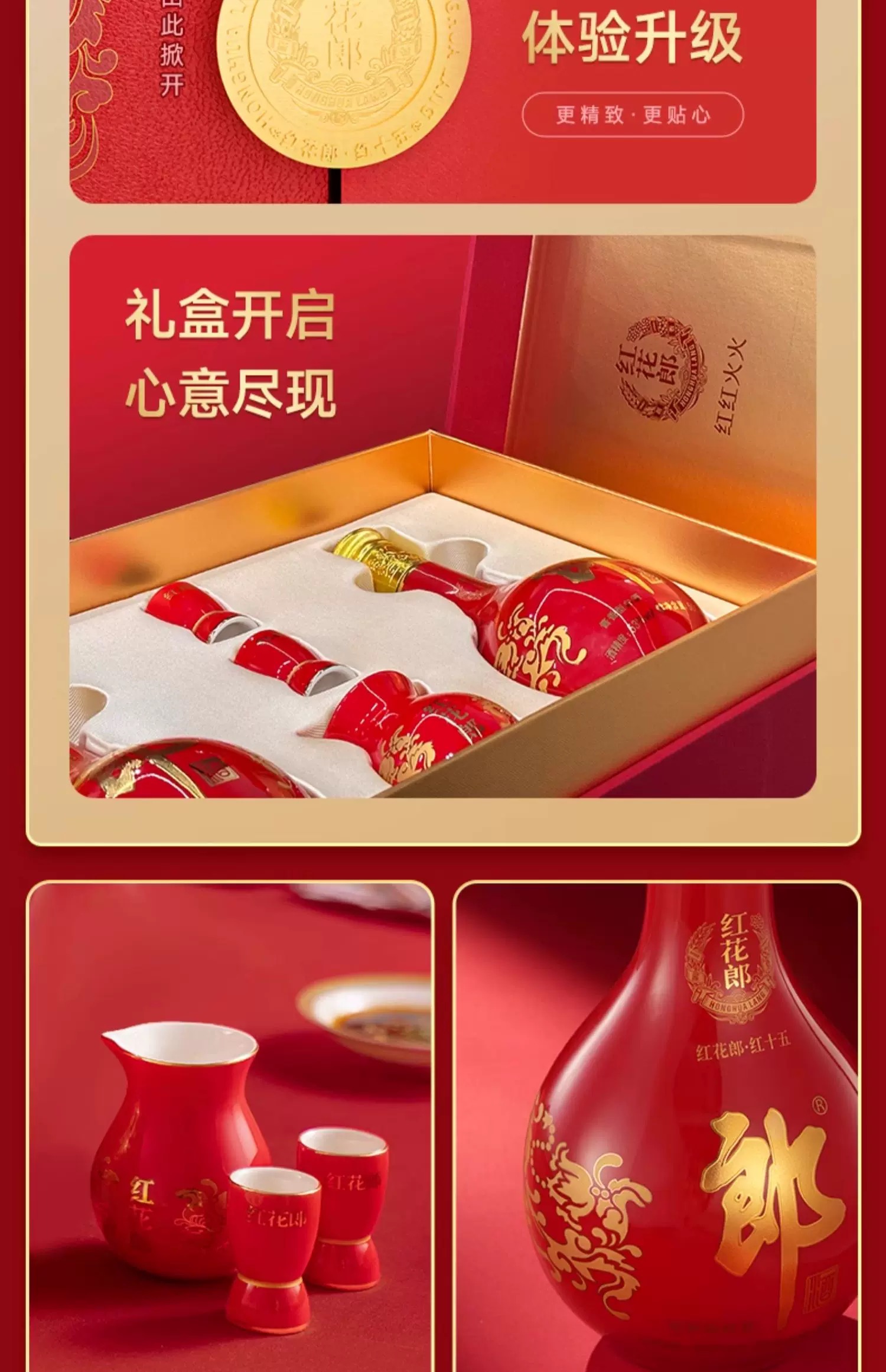 红花郎红十五双瓶礼盒装 53度酱香型白酒 500ml*2瓶*4盒整箱装