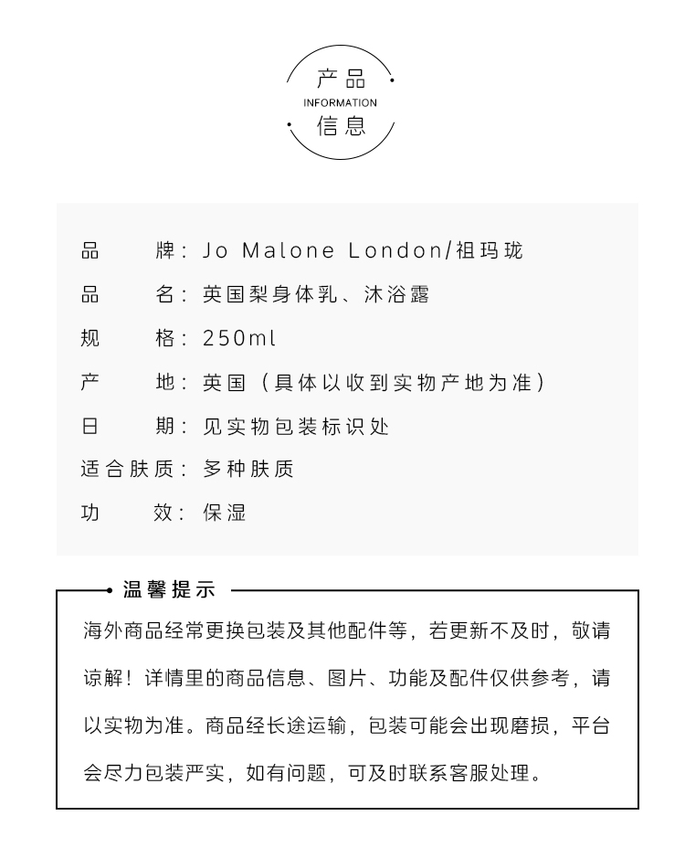 JOMALONE祖玛珑英国梨/蓝风铃香氛身体润肤乳液 250ml/沐浴露250ml(CDF)