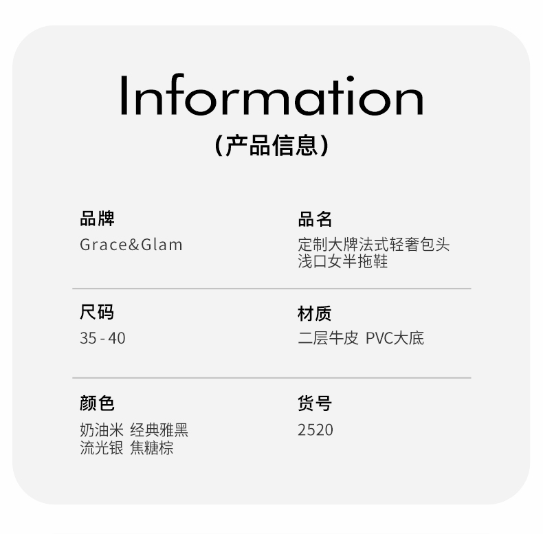Grace&Glam 定制大牌法式轻奢包头浅口女半拖鞋 (脚宽脚厚拍大一码)