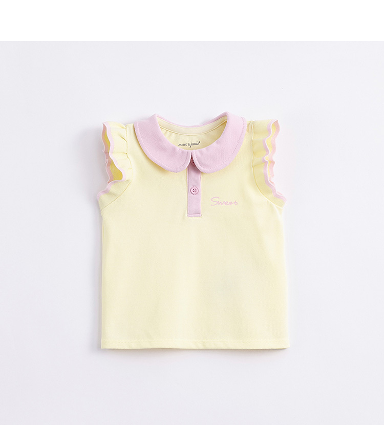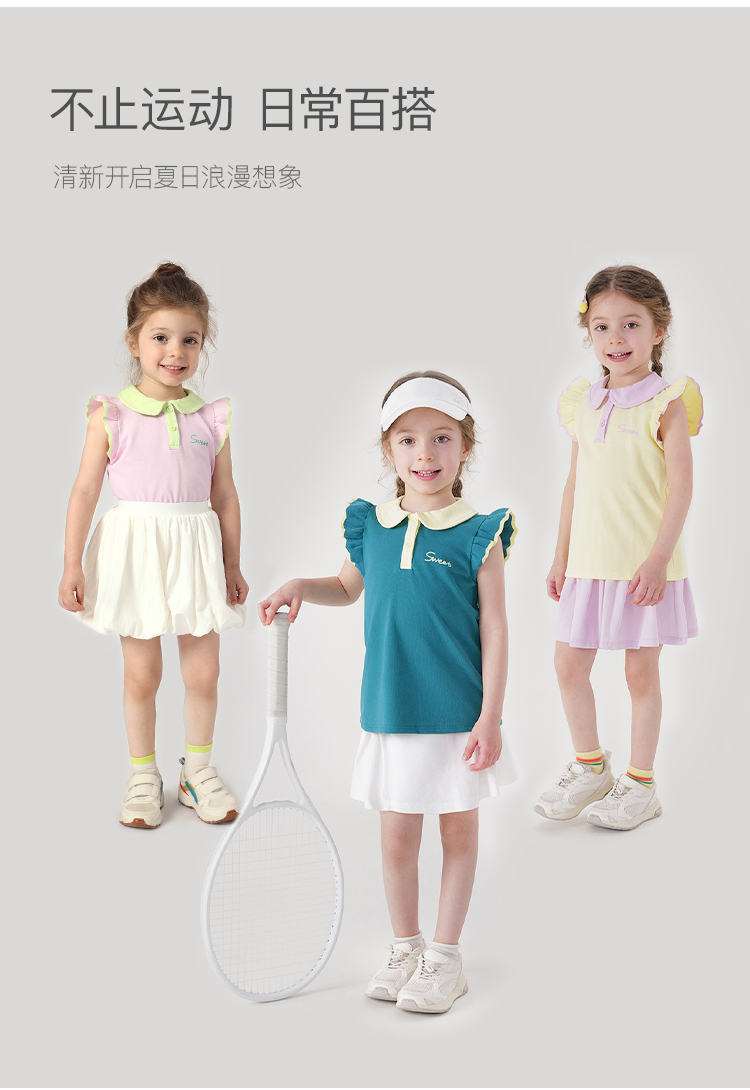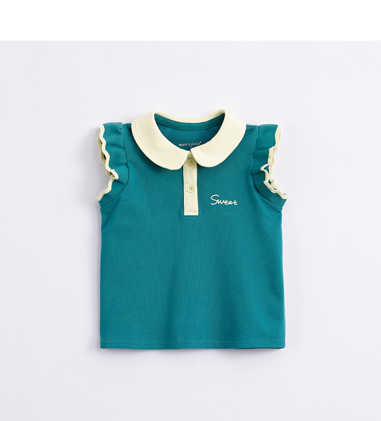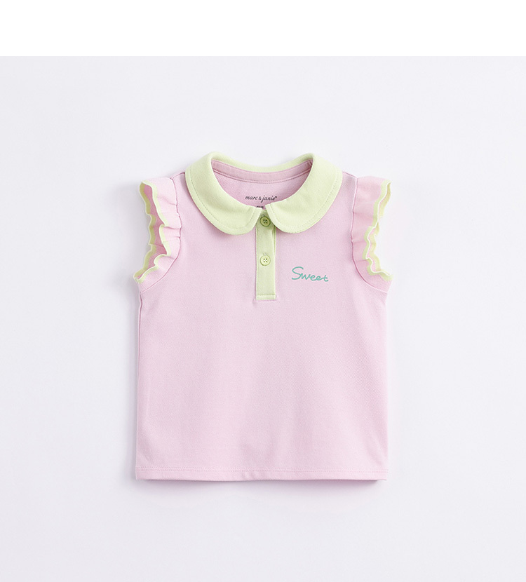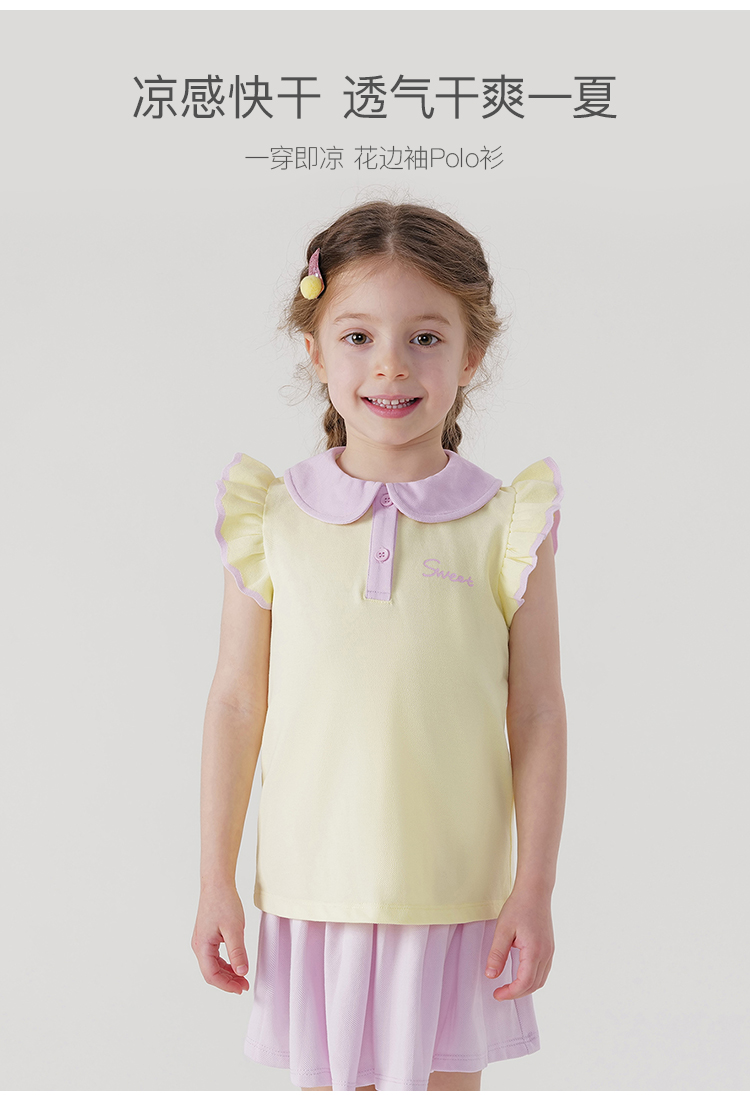 【凉感快干】马克珍妮新款夏装 女童撞色花边袖POLO衫230823