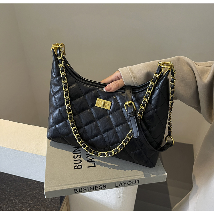 【YW】无忧购 复古菱格小香风链条托特包包女百搭腋下包单肩斜挎包 TM080(截单后3-5天发货)