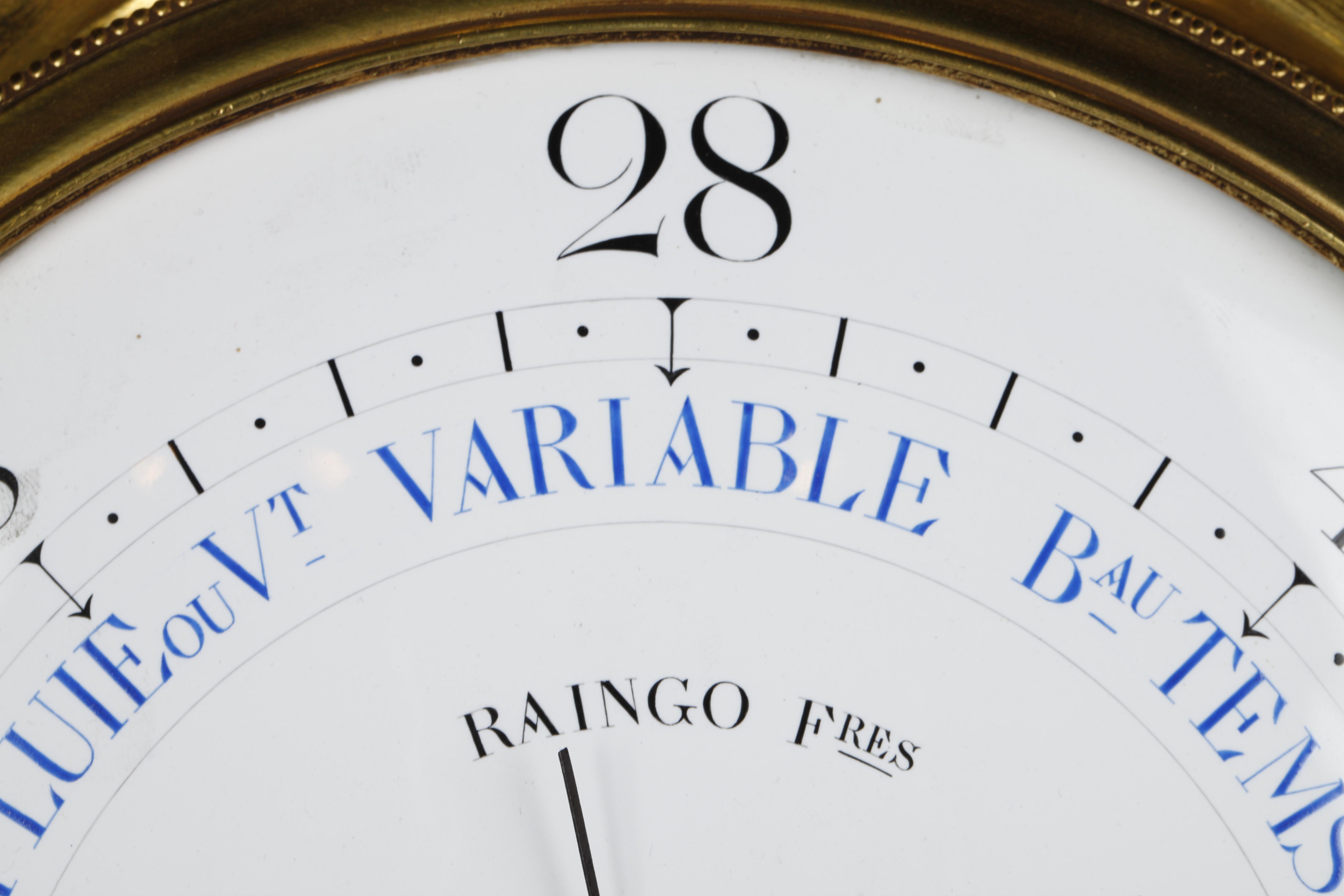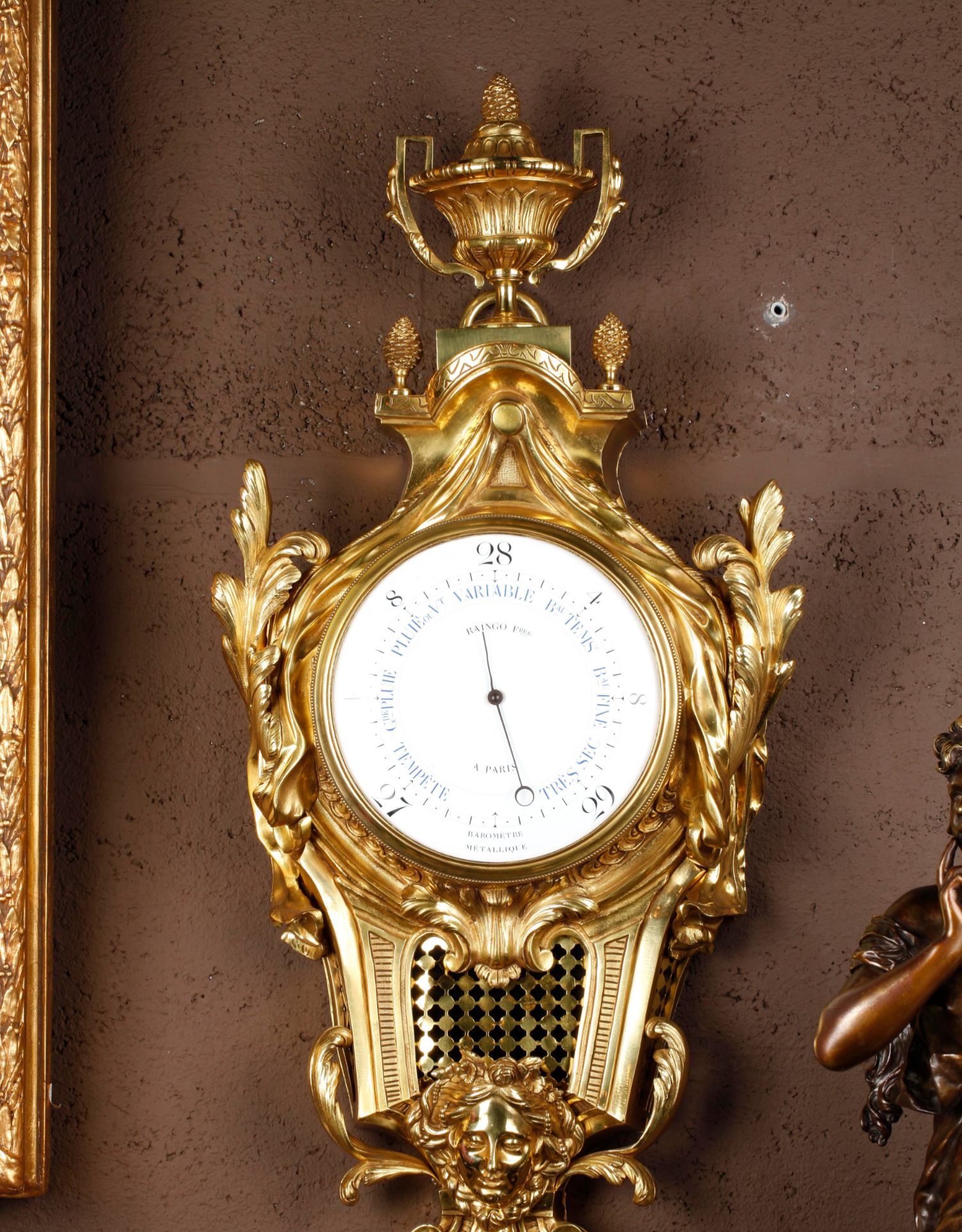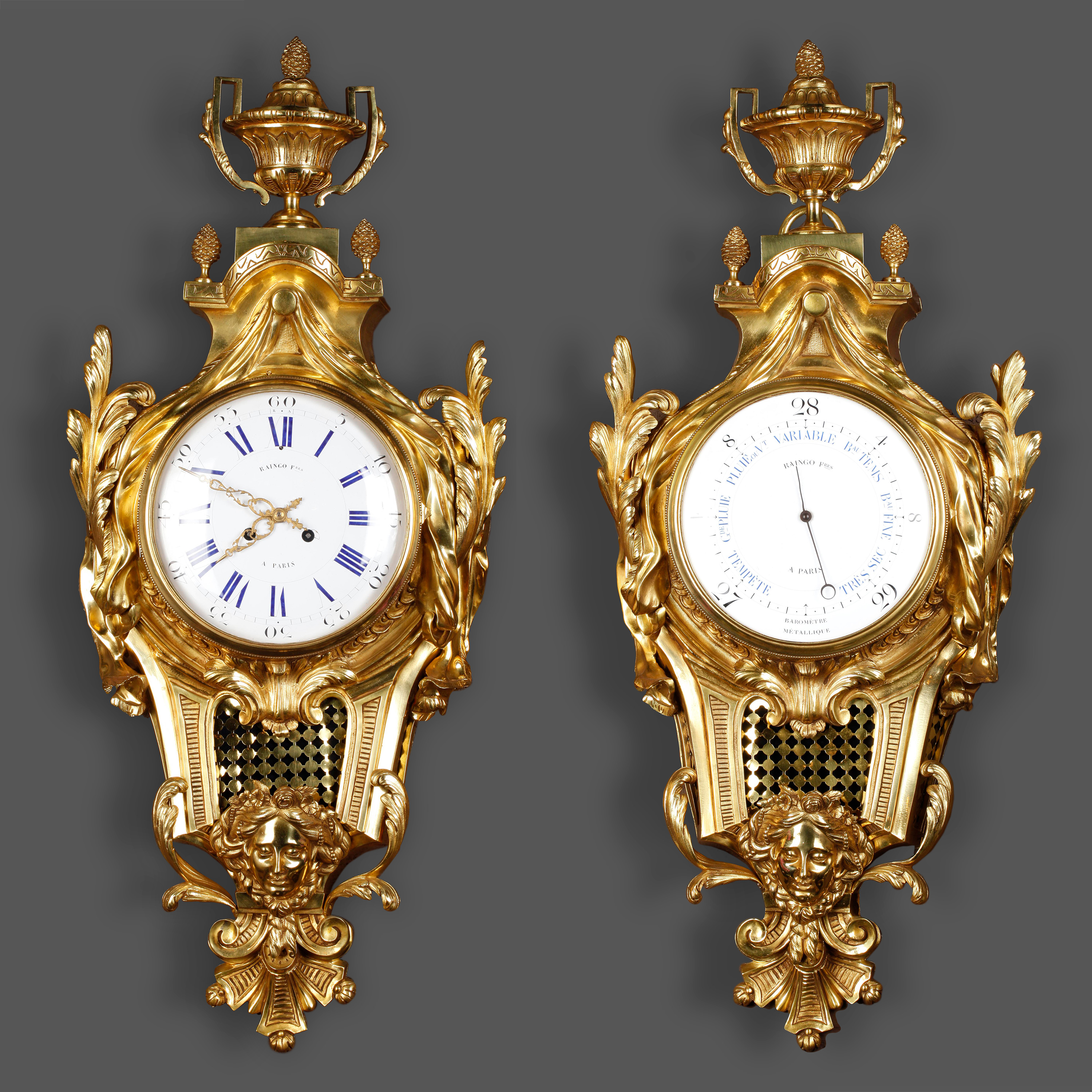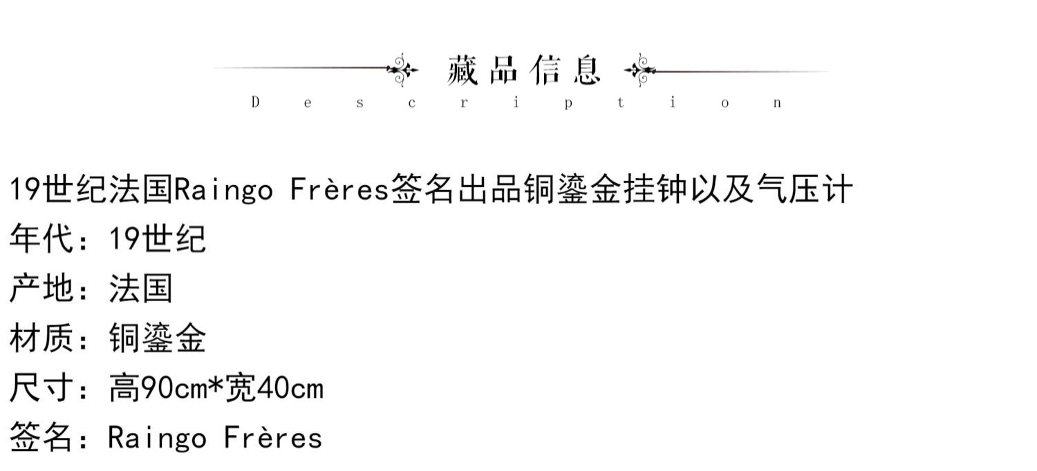 独角鹿西洋古董19世纪法国Raingo Frères铜鎏金挂钟气压计一对