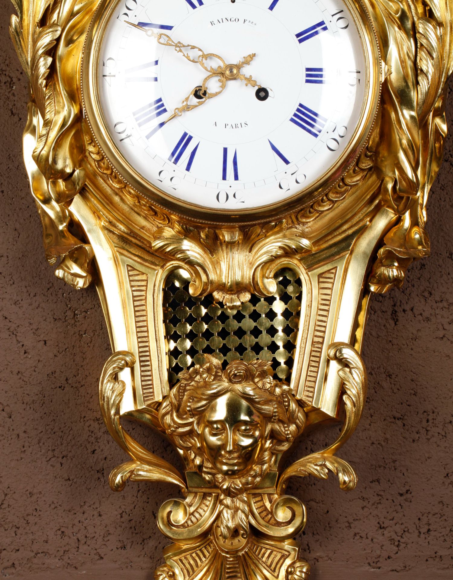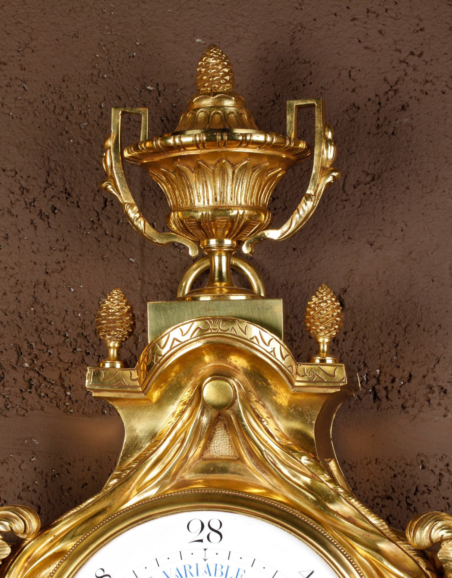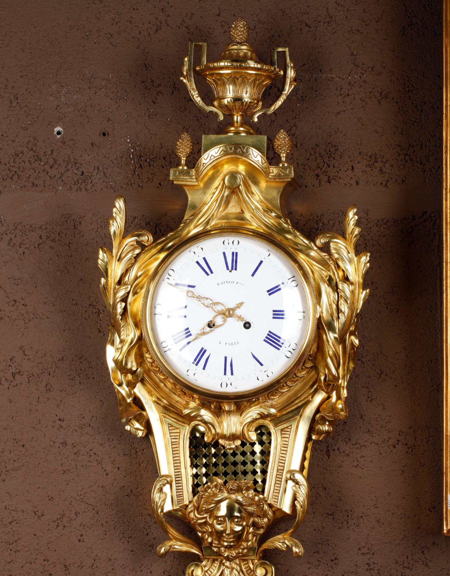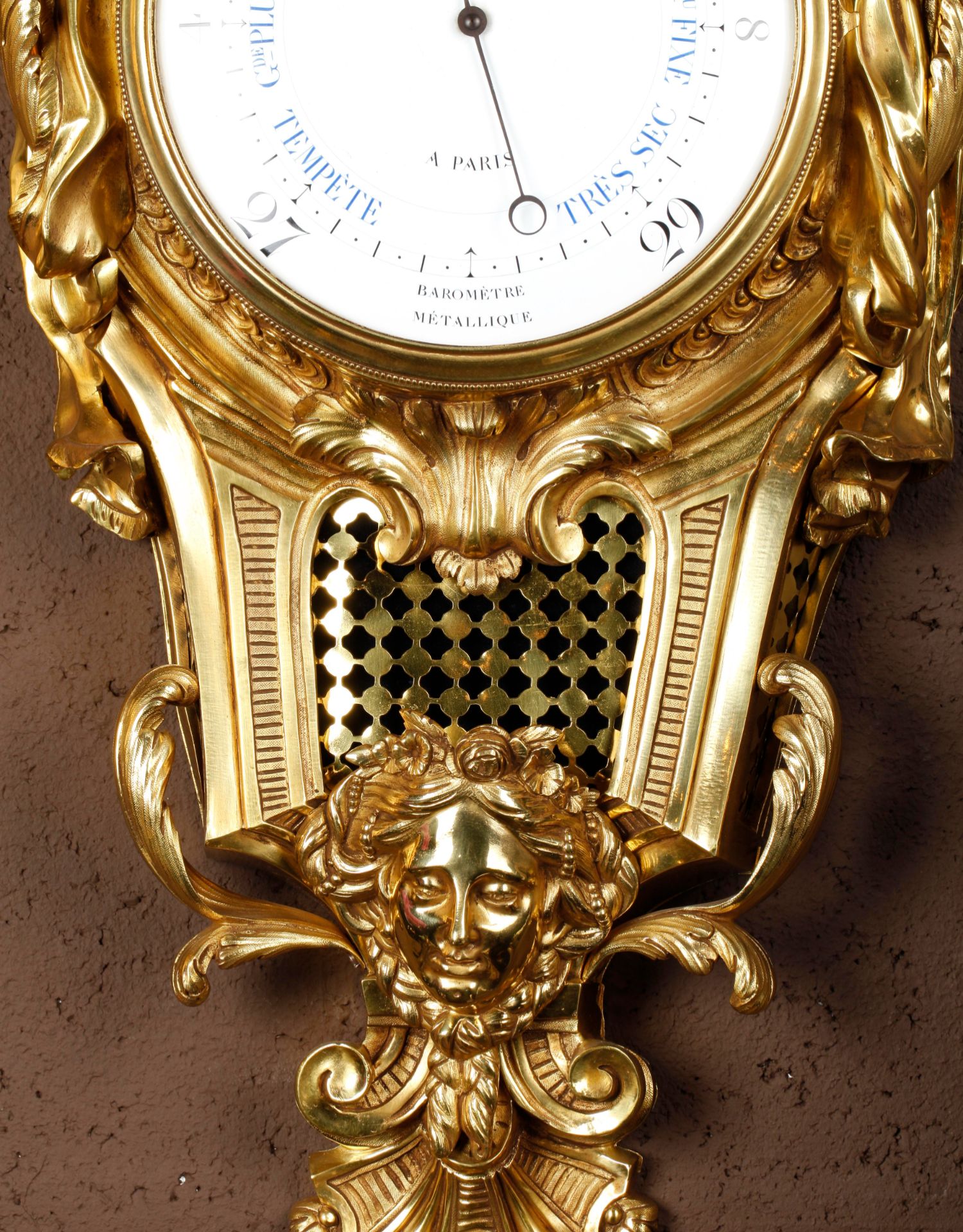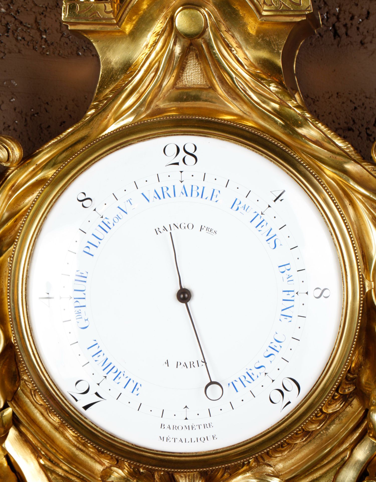 独角鹿西洋古董19世纪法国Raingo Frères铜鎏金挂钟气压计一对