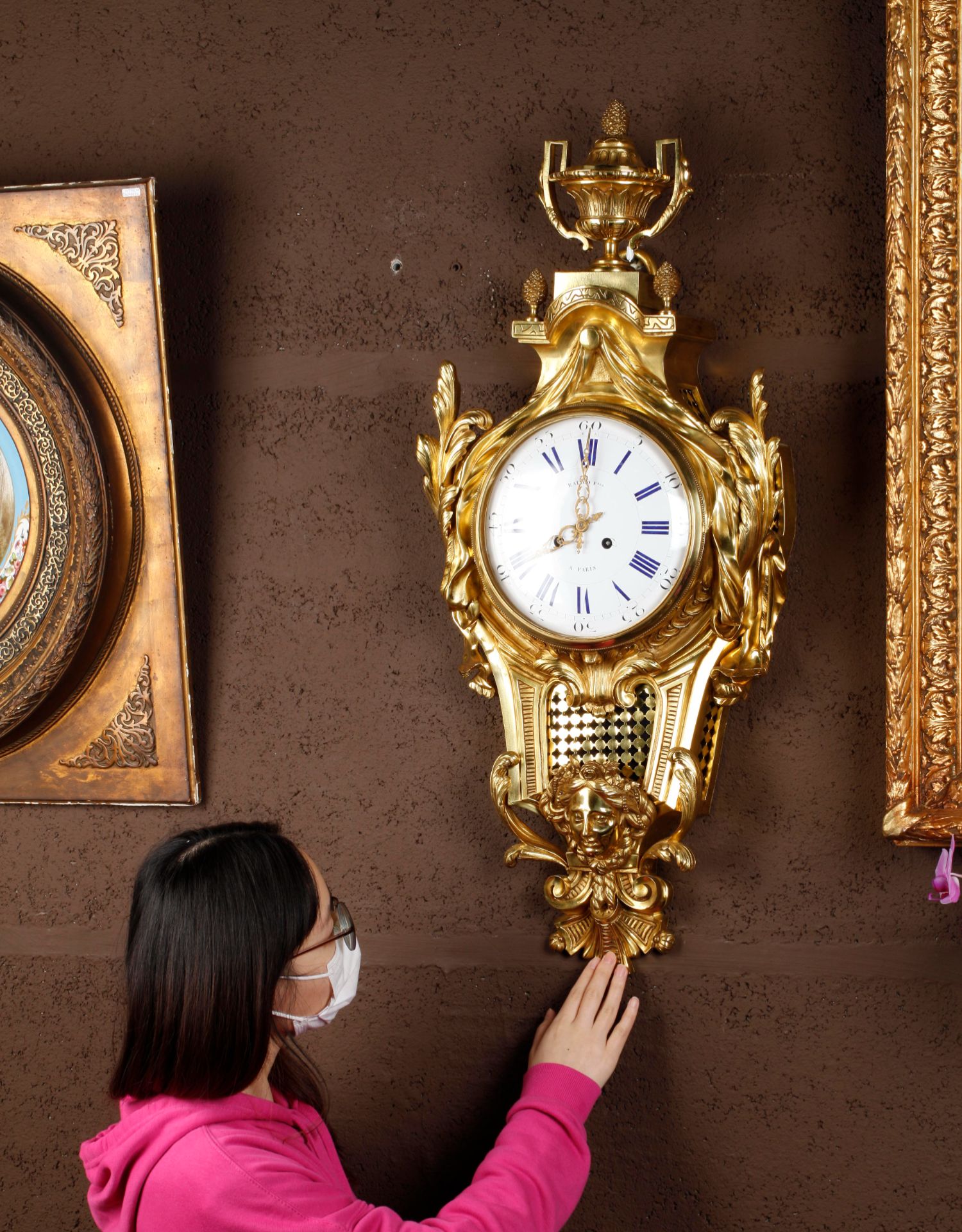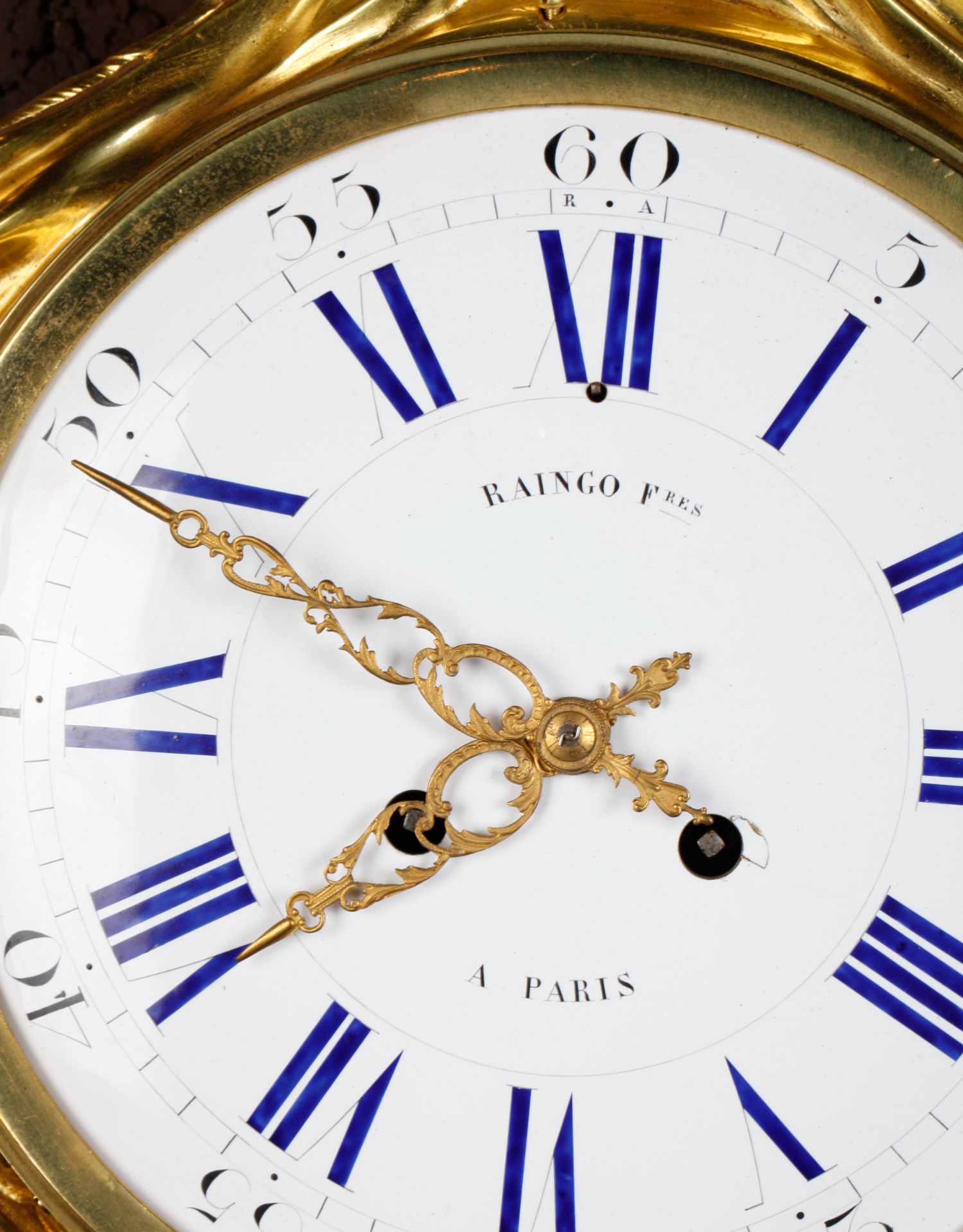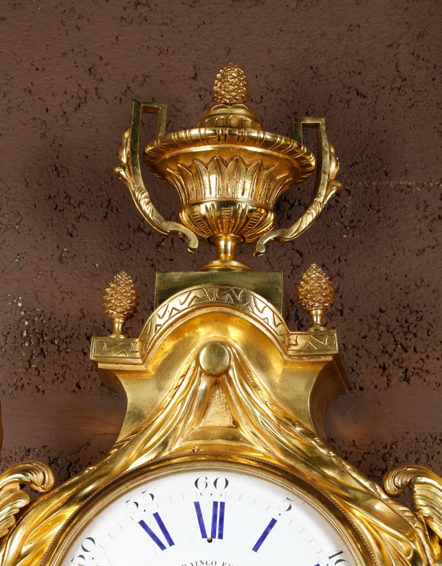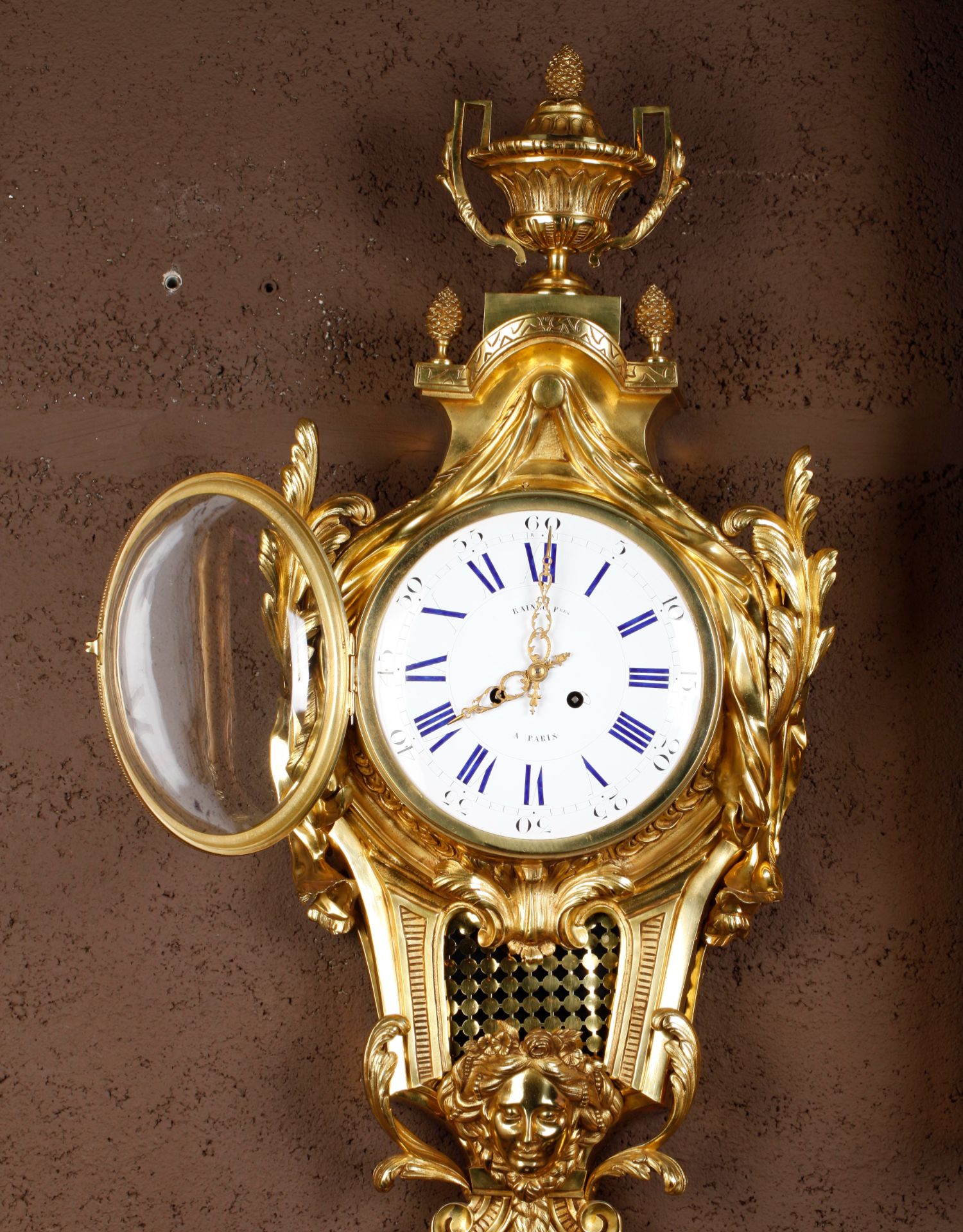 独角鹿西洋古董19世纪法国Raingo Frères铜鎏金挂钟气压计一对