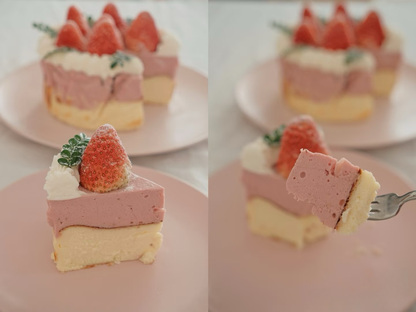 「食材」100%法国 / 新西兰动物奶油,法国芝士,新西兰牛奶,当季新鲜草莓,自制草莓果蓉。