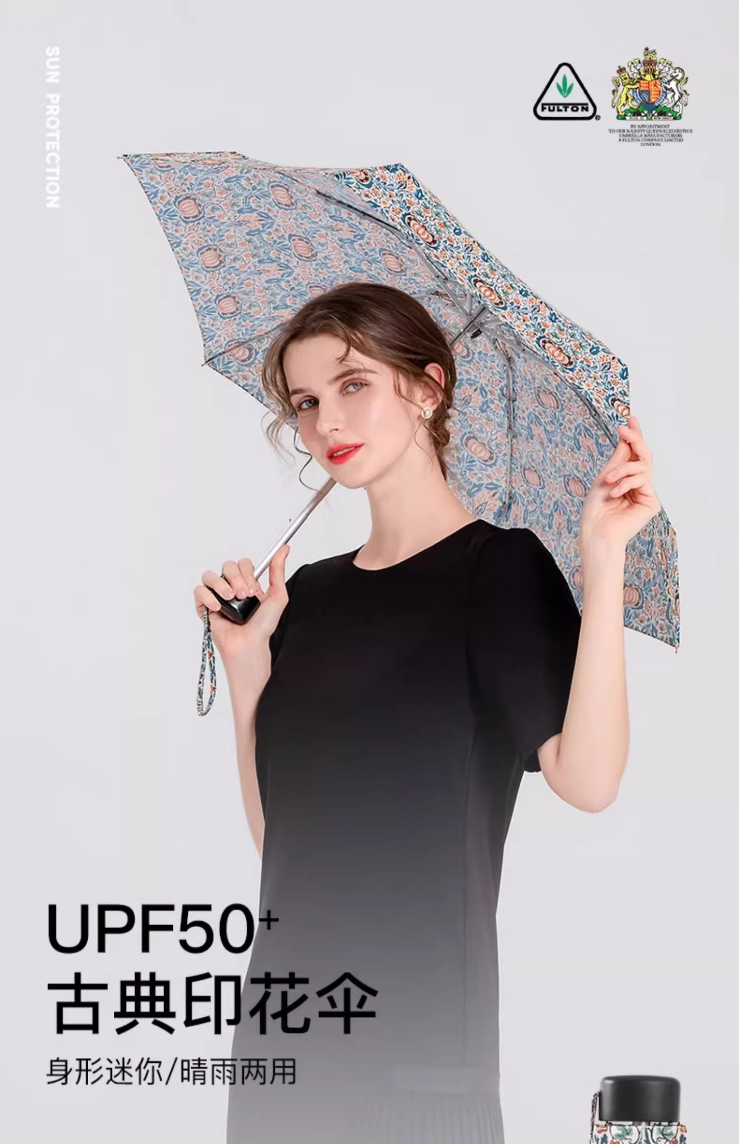 Fulton 富尔顿FULTON英国进口Morris Tiny-2 Little Chintz(防晒款)五折伞