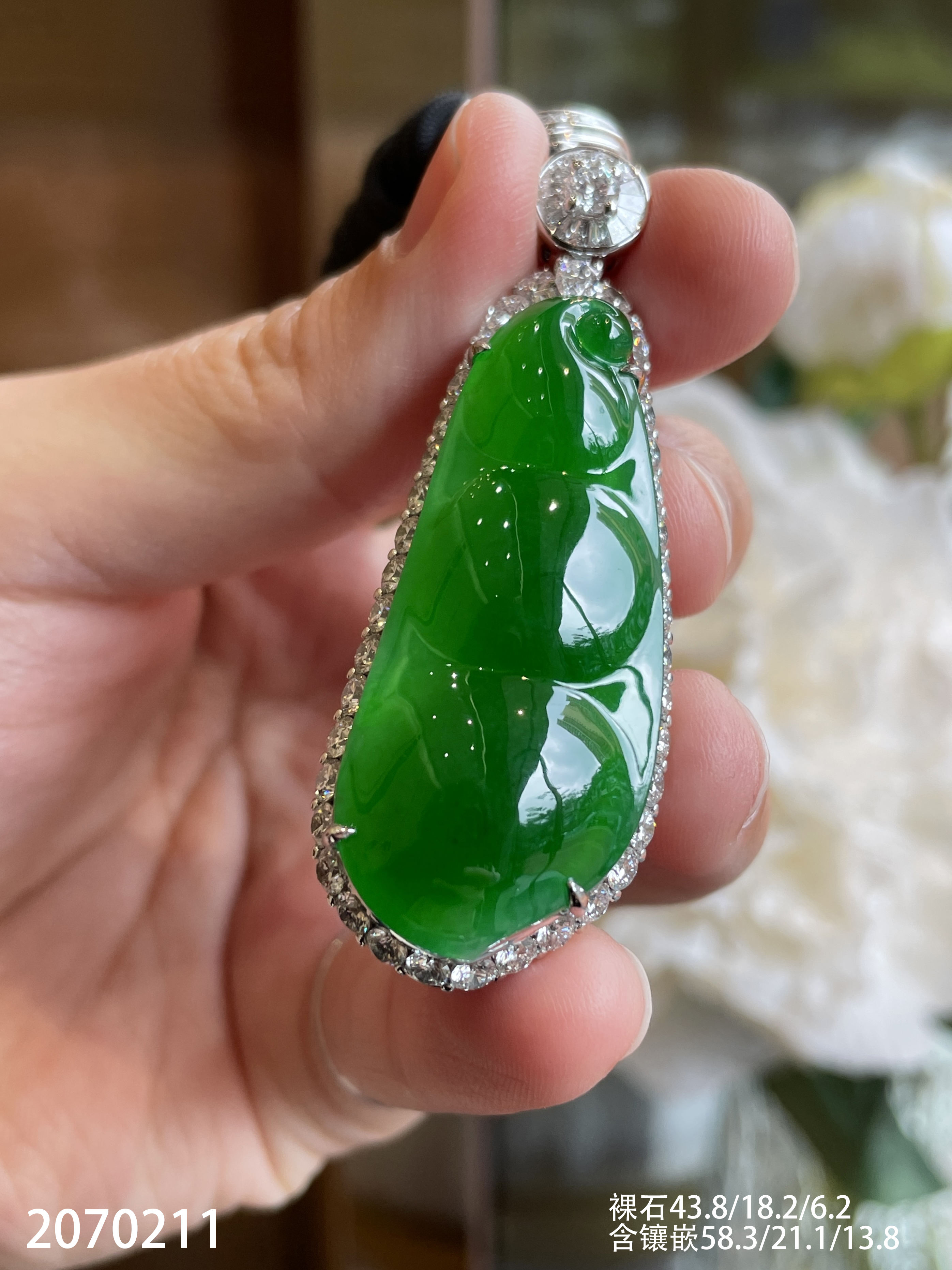 老坑冰艳绿福豆吊坠【2070211】具体价格微信咨询