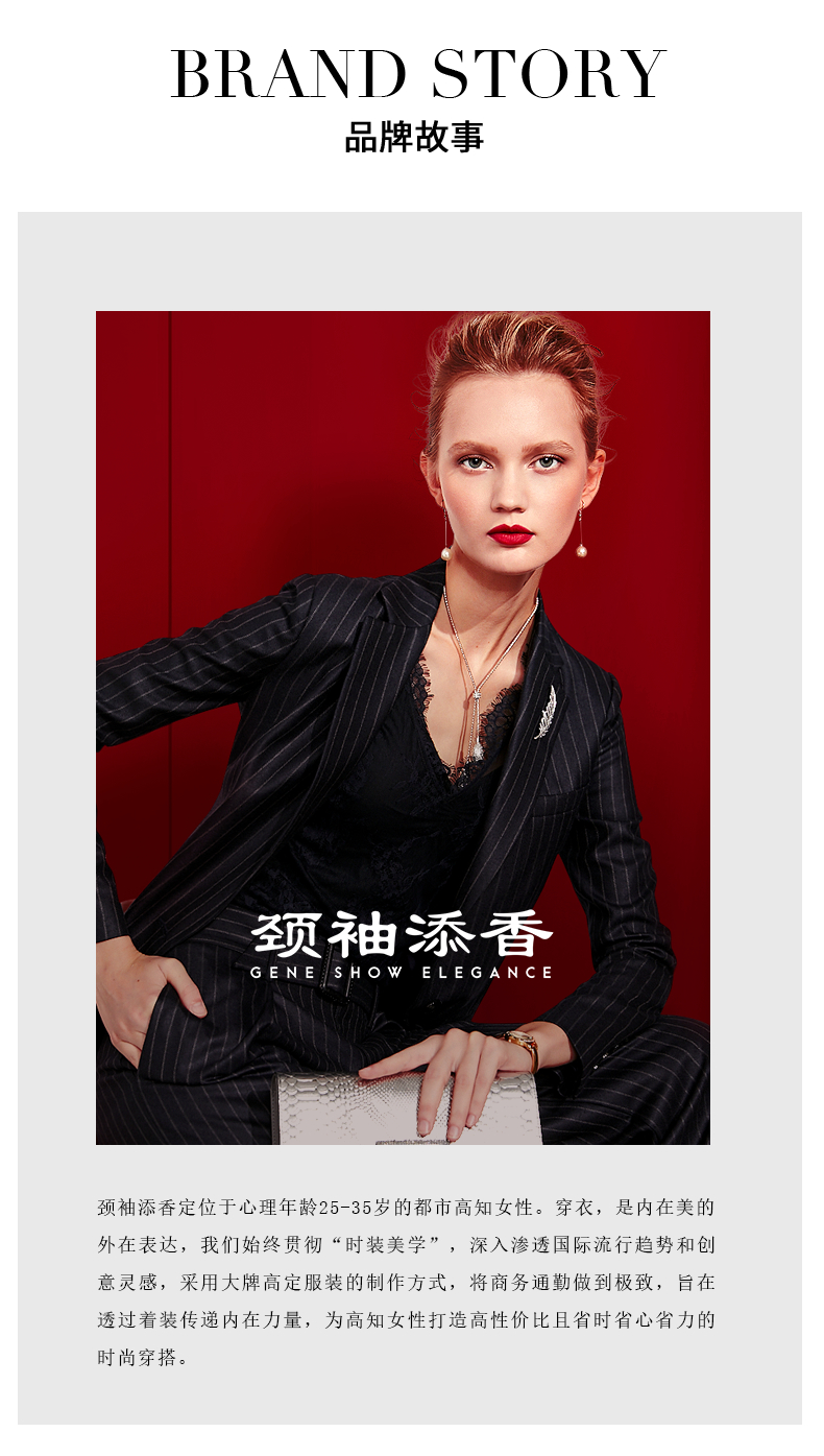 我们的产品:全网最具“质价比”的精英女装,只为有场合的“三高”女性打造,高知,高姿,高资。