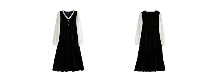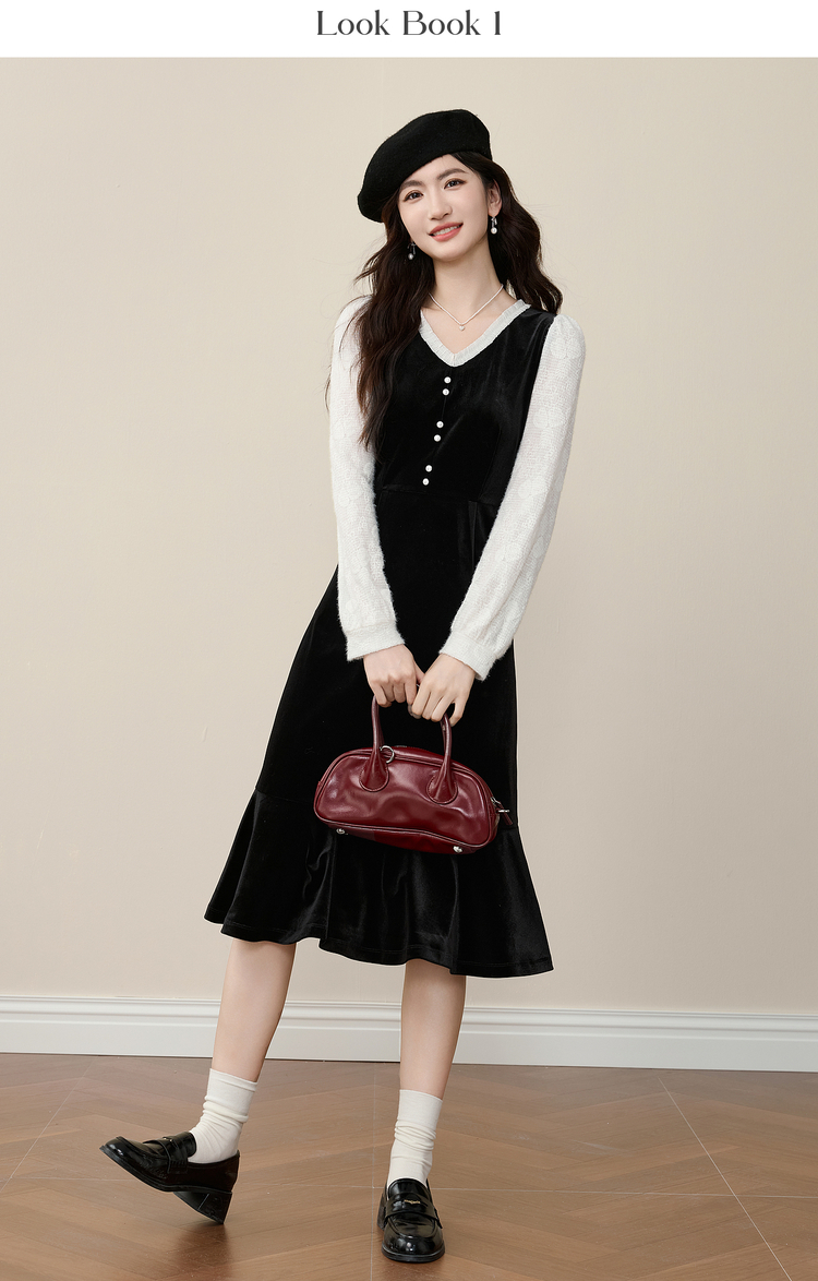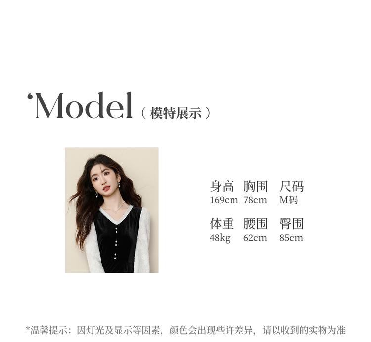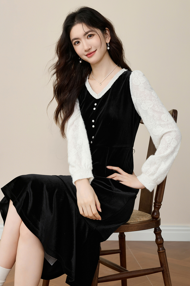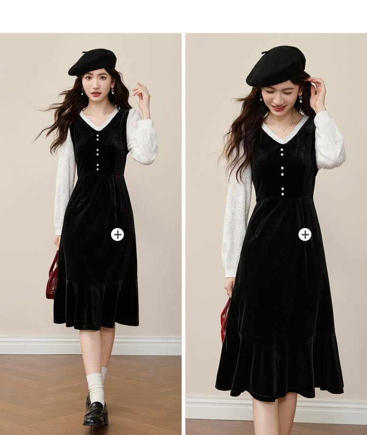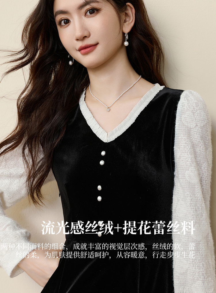【12/10新品6折】熙世界优雅赫本风假两件连衣裙女2025秋冬新款蕾丝拼接丝绒鱼尾裙