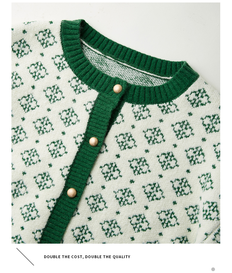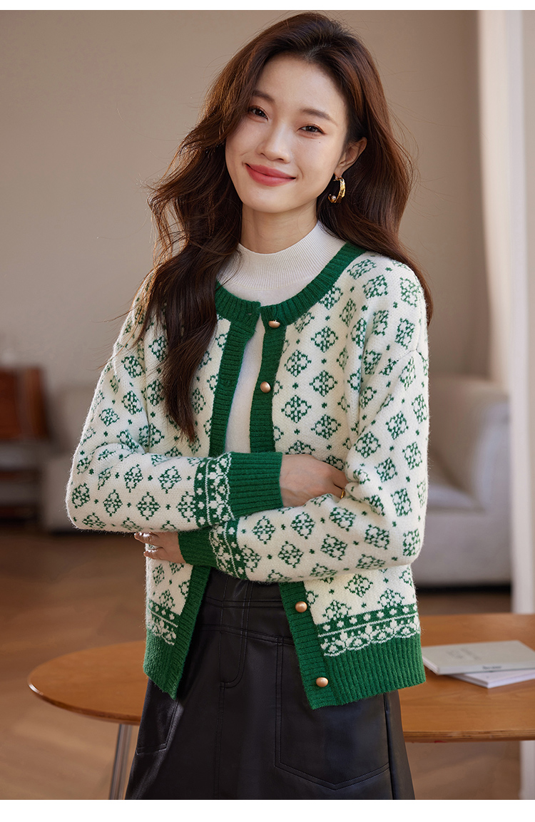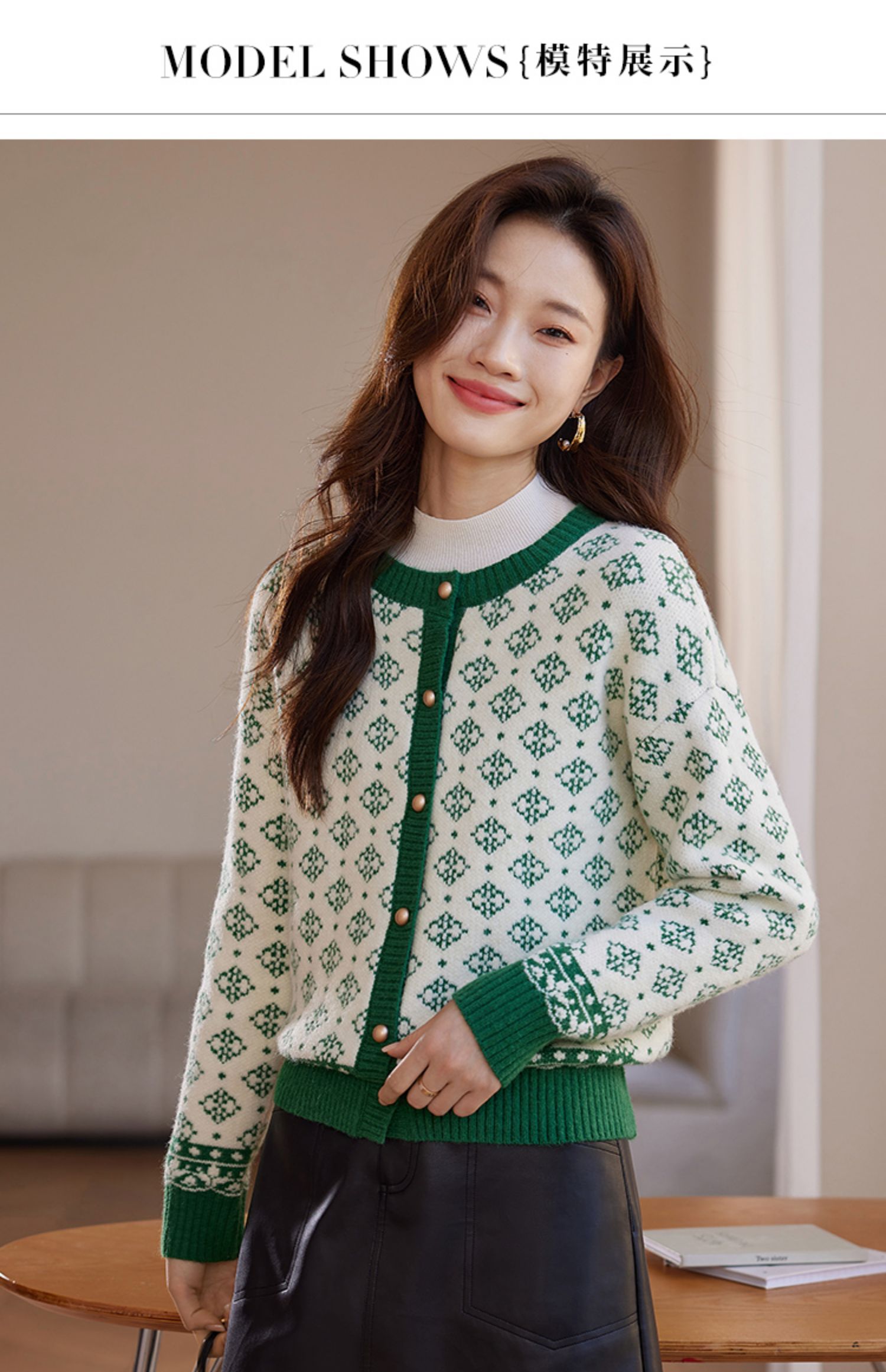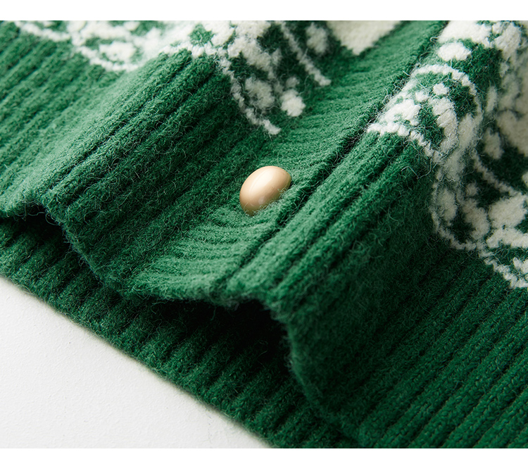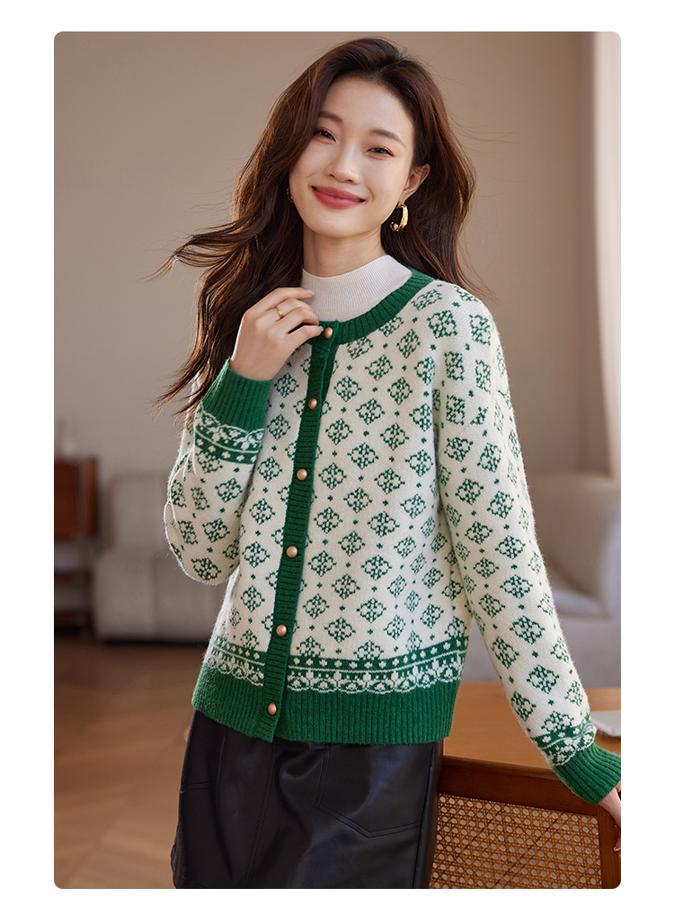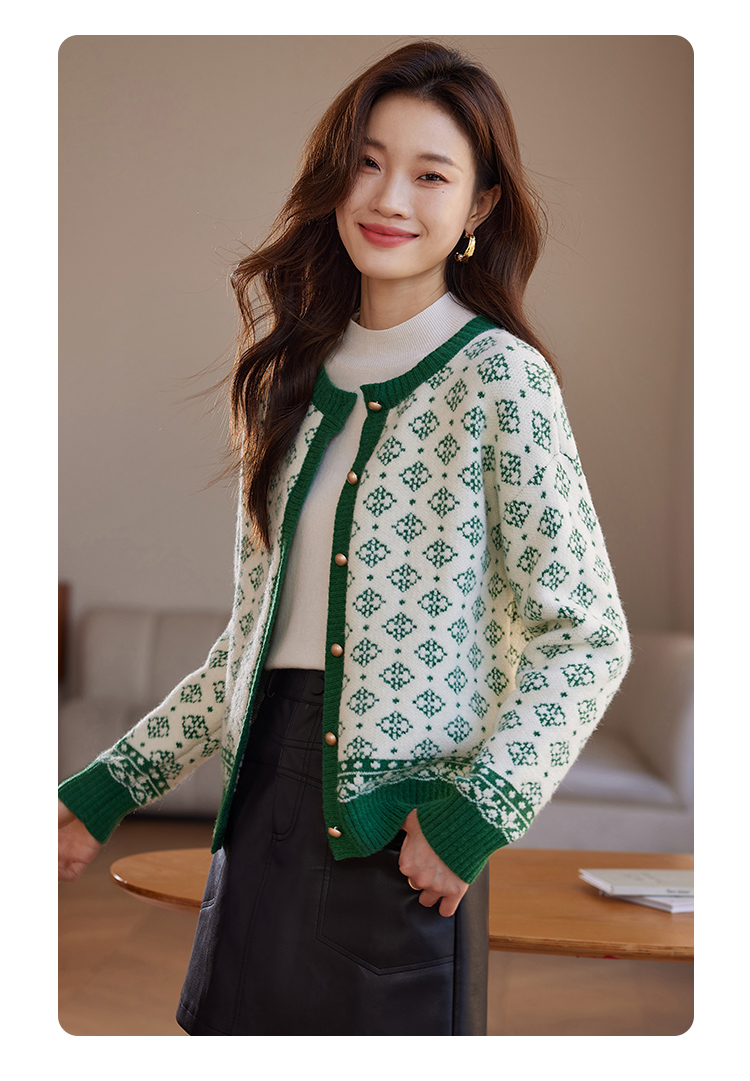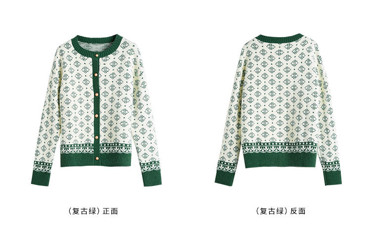 【年终特卖】熙世界氛围感穿搭毛衣开衫秋冬提花圆领针织短外套