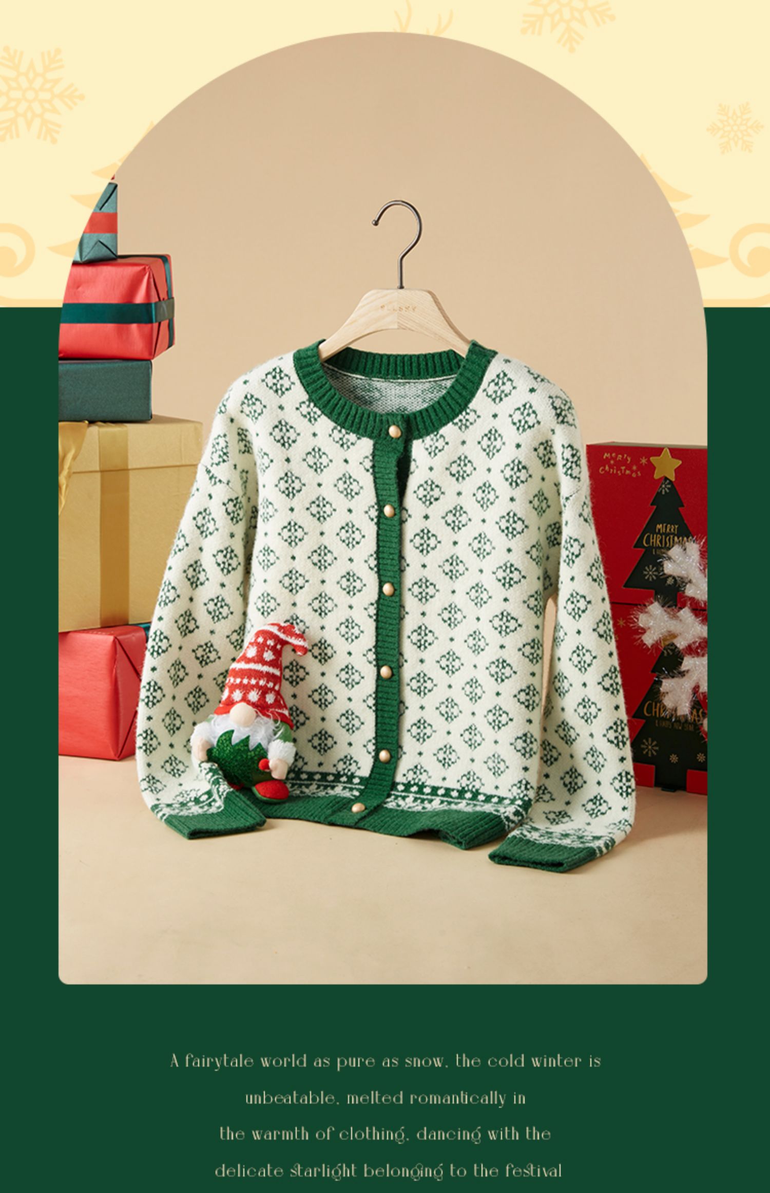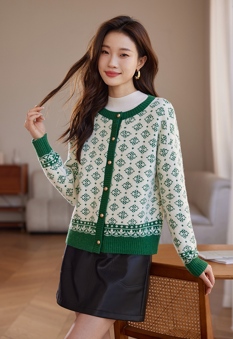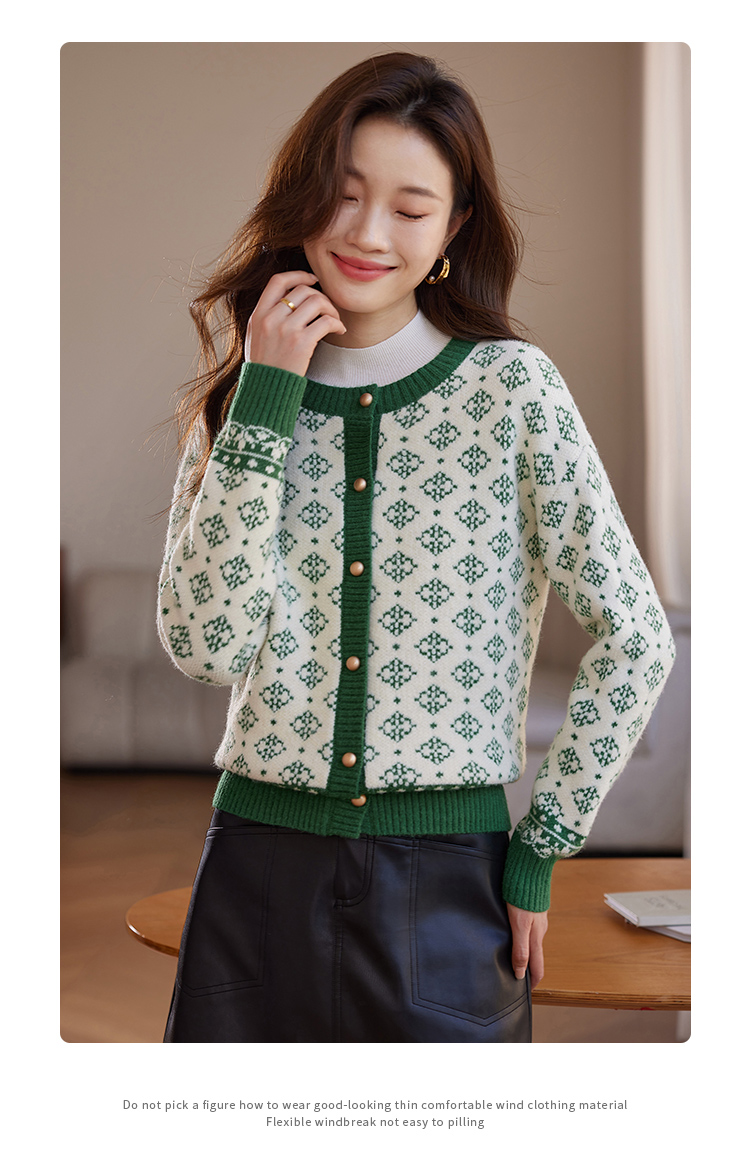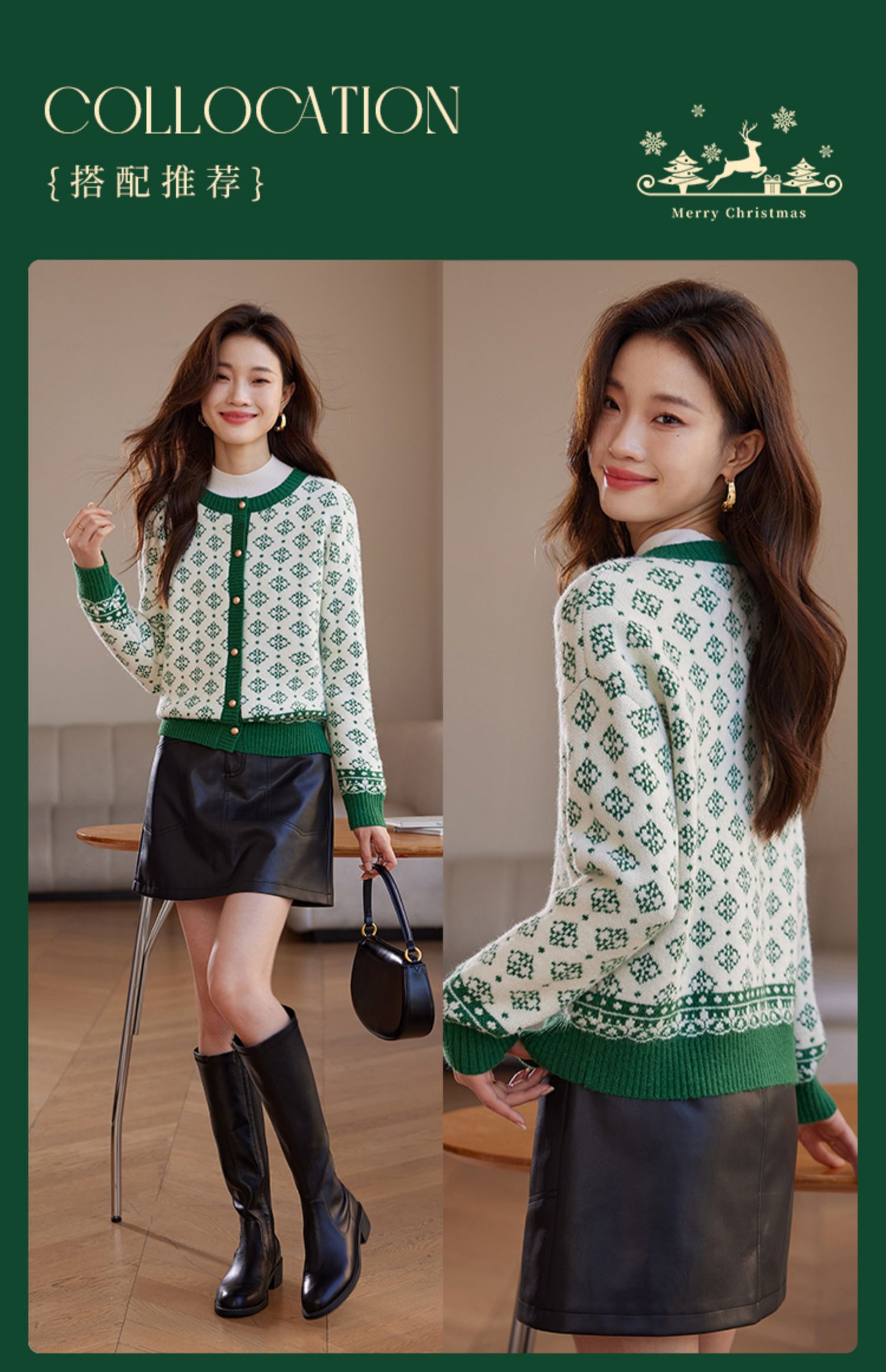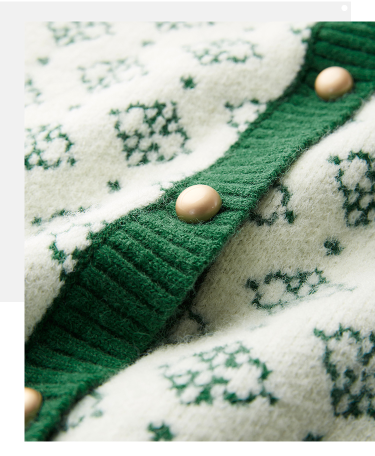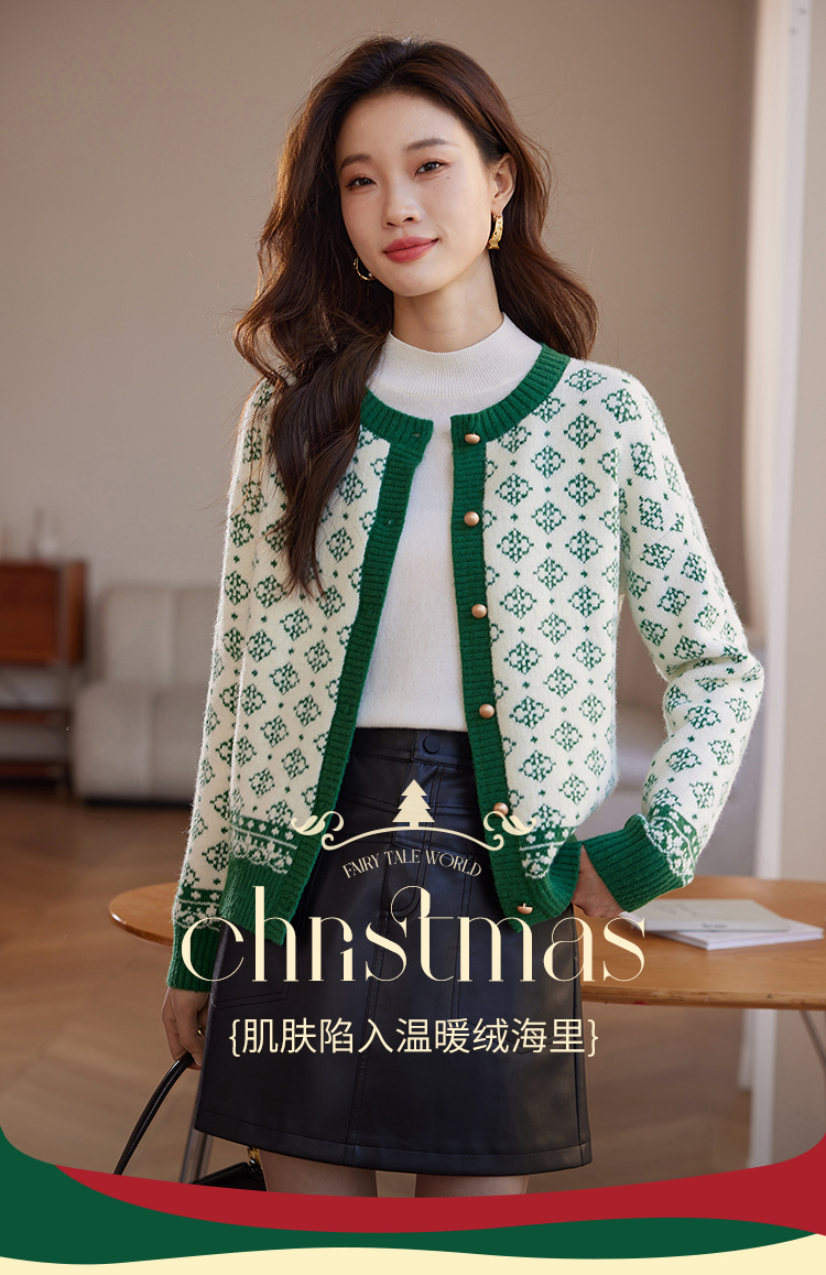 【年终特卖】熙世界氛围感穿搭毛衣开衫秋冬提花圆领针织短外套