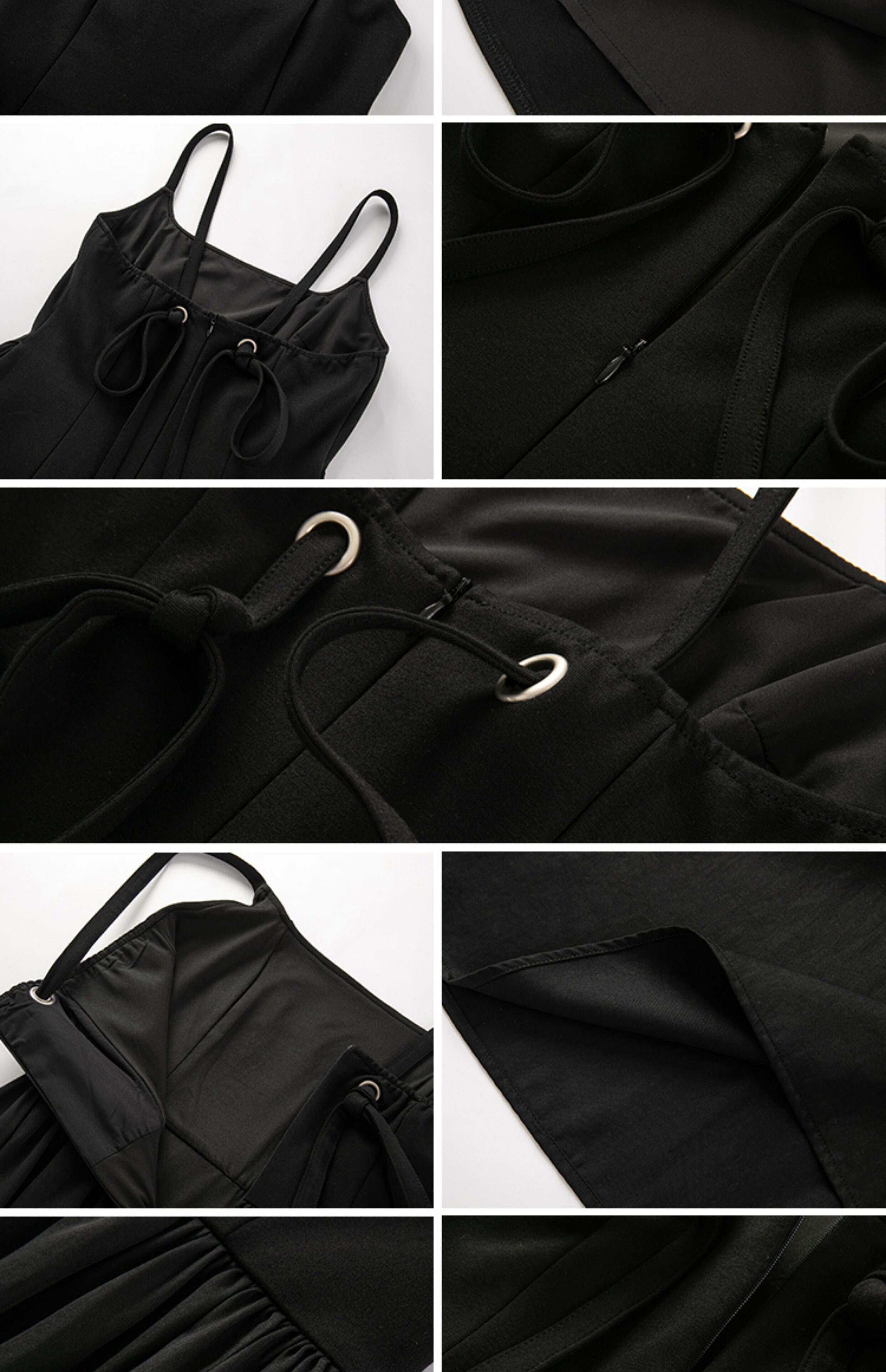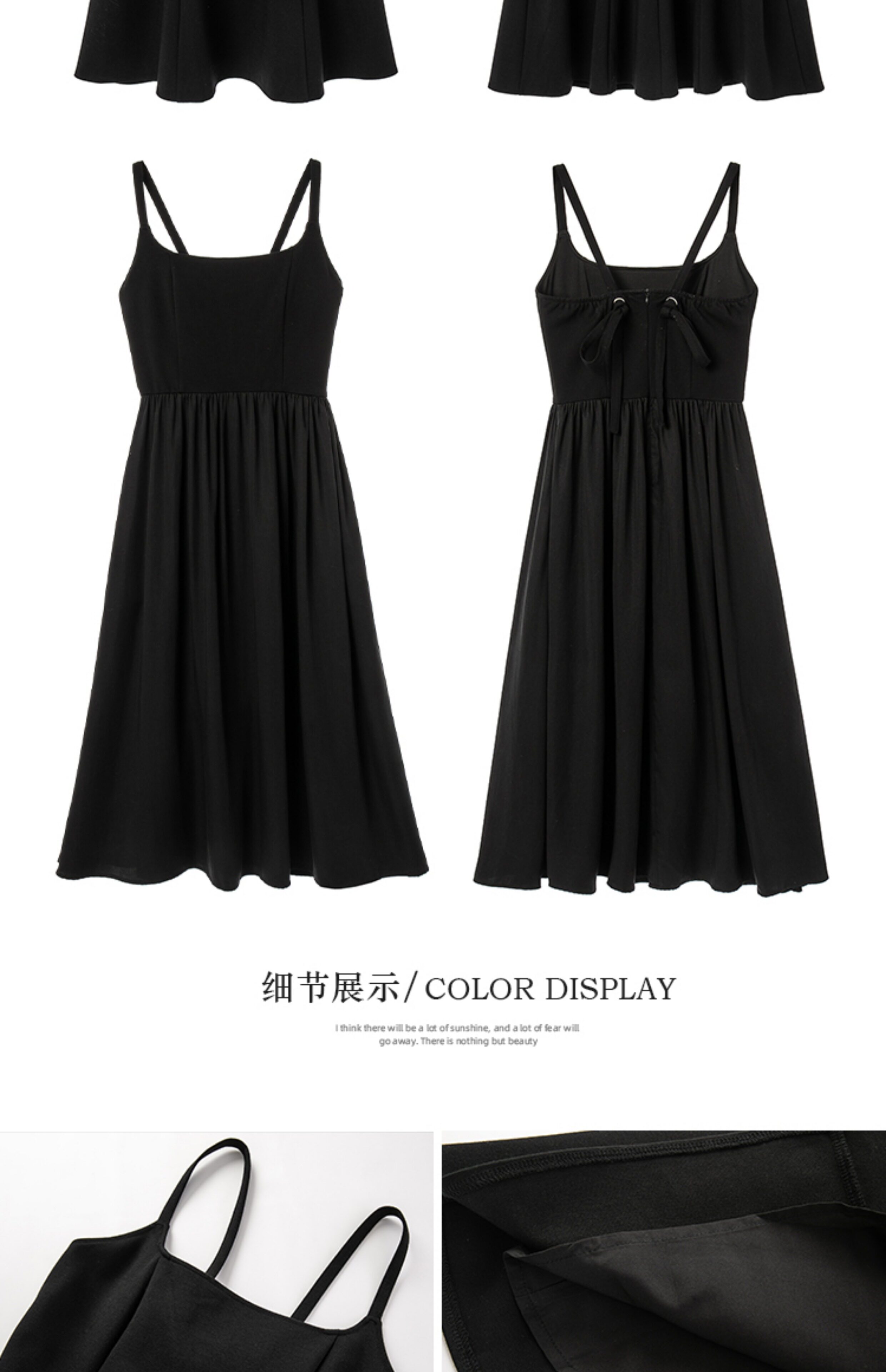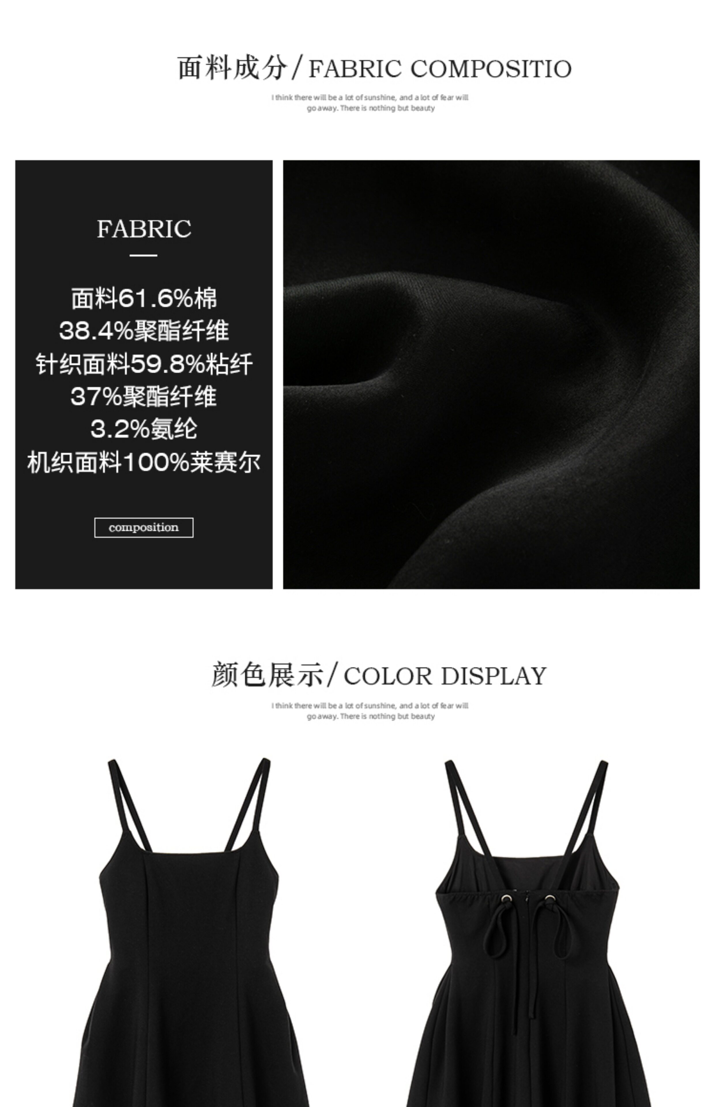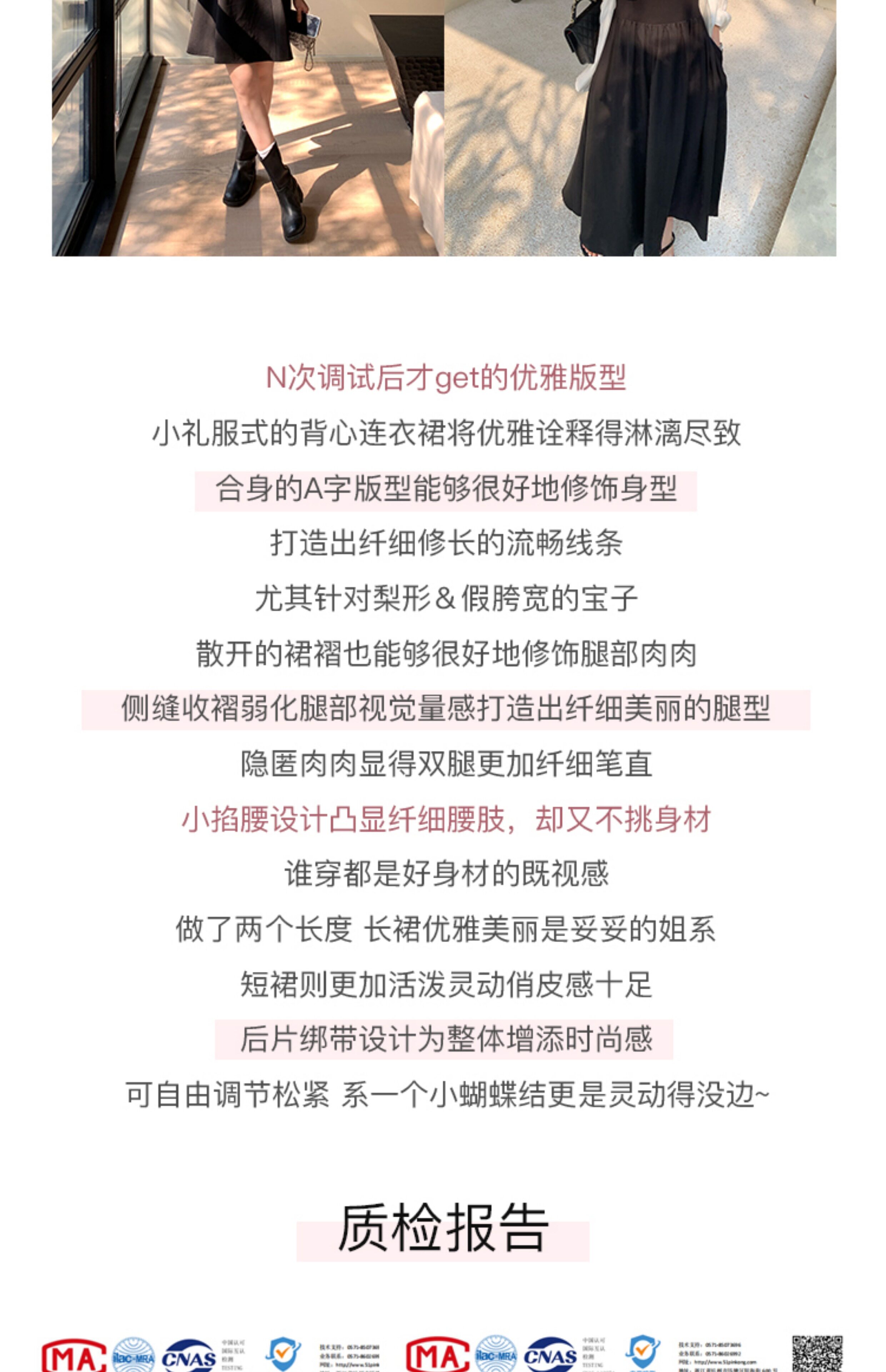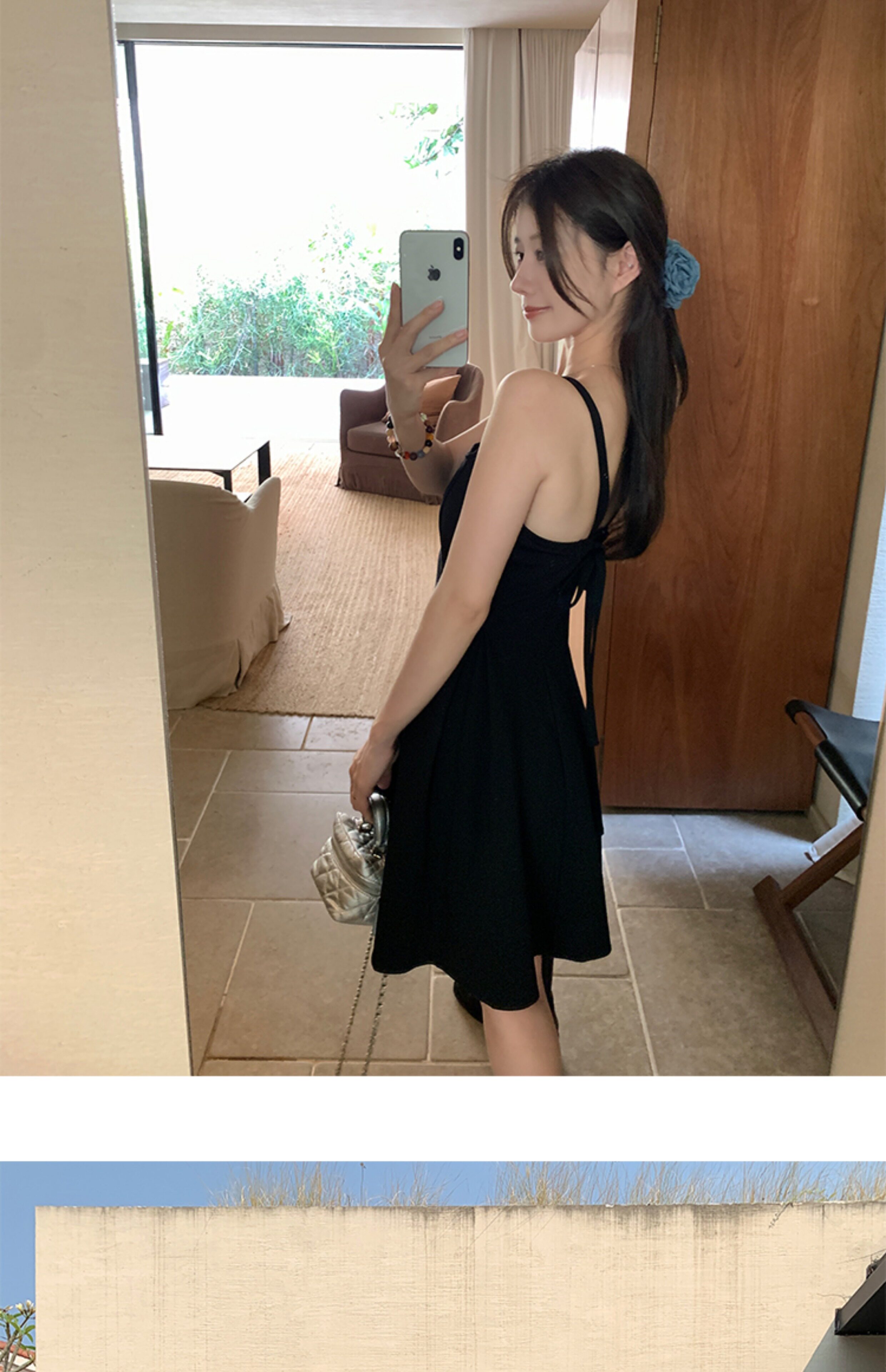 EKOOL衣库 天丝吊带连衣裙女夏季后背绑带修身显瘦长裙a字小黑裙