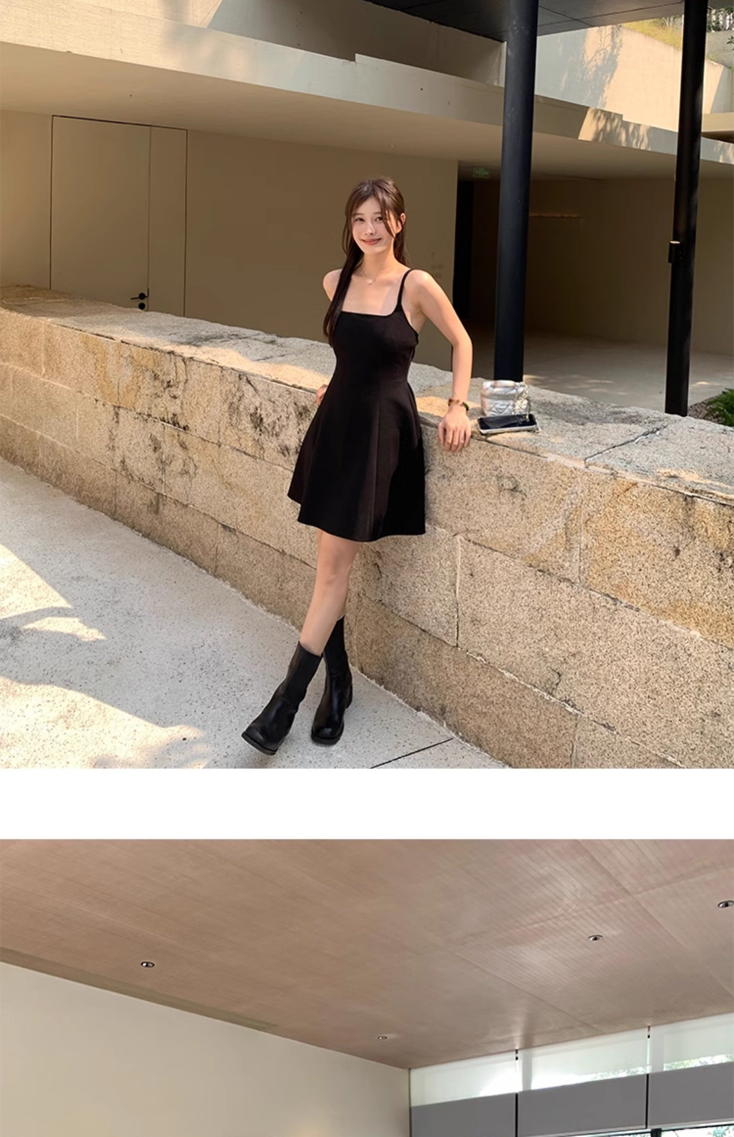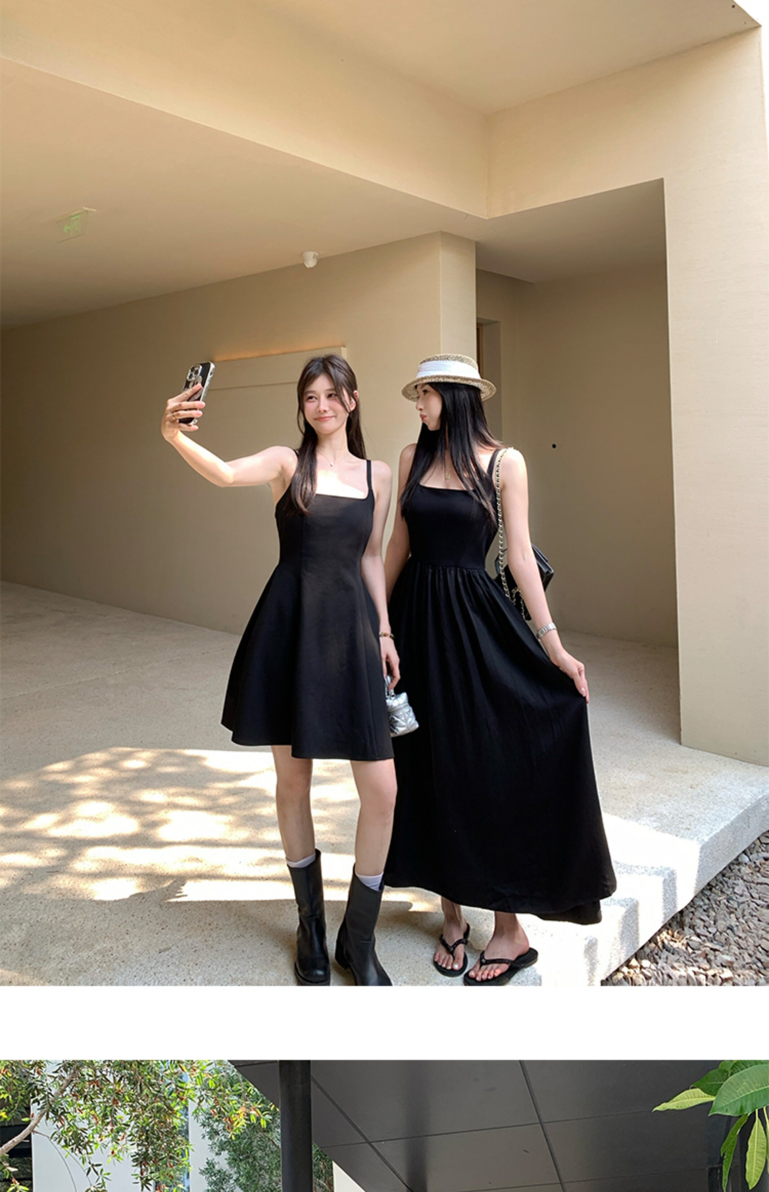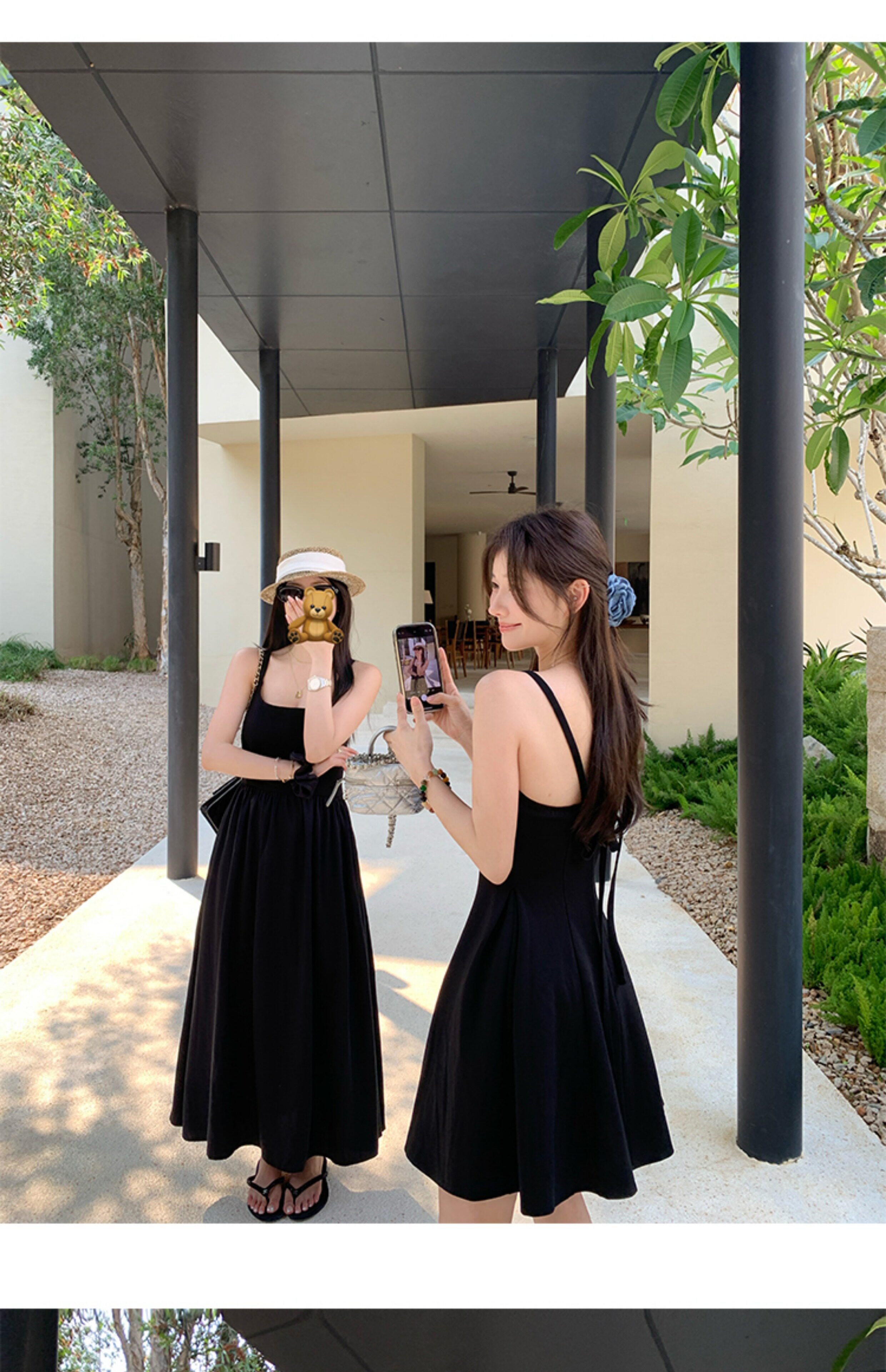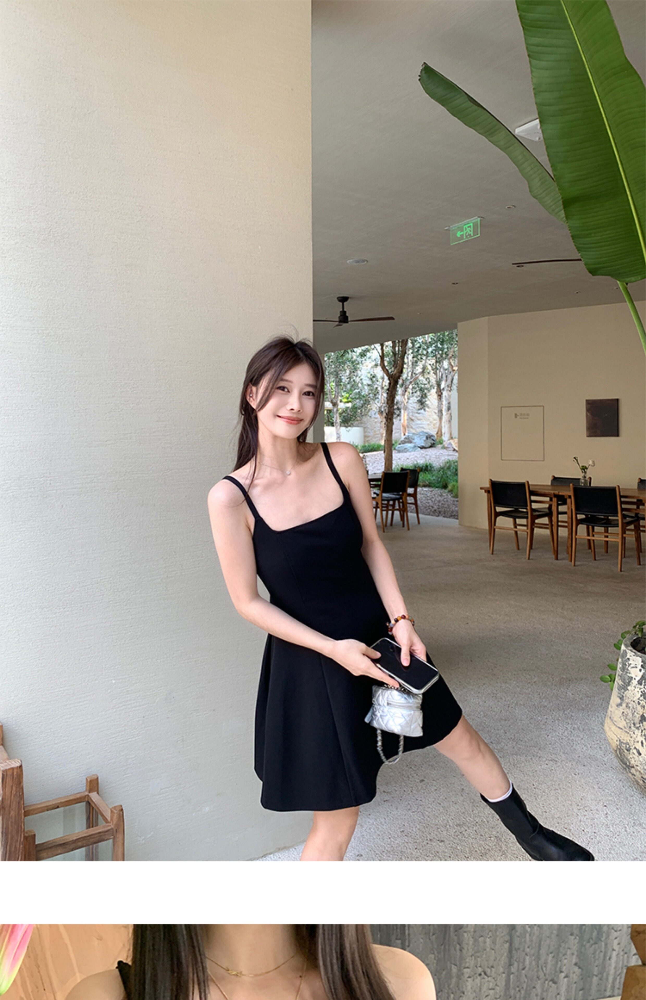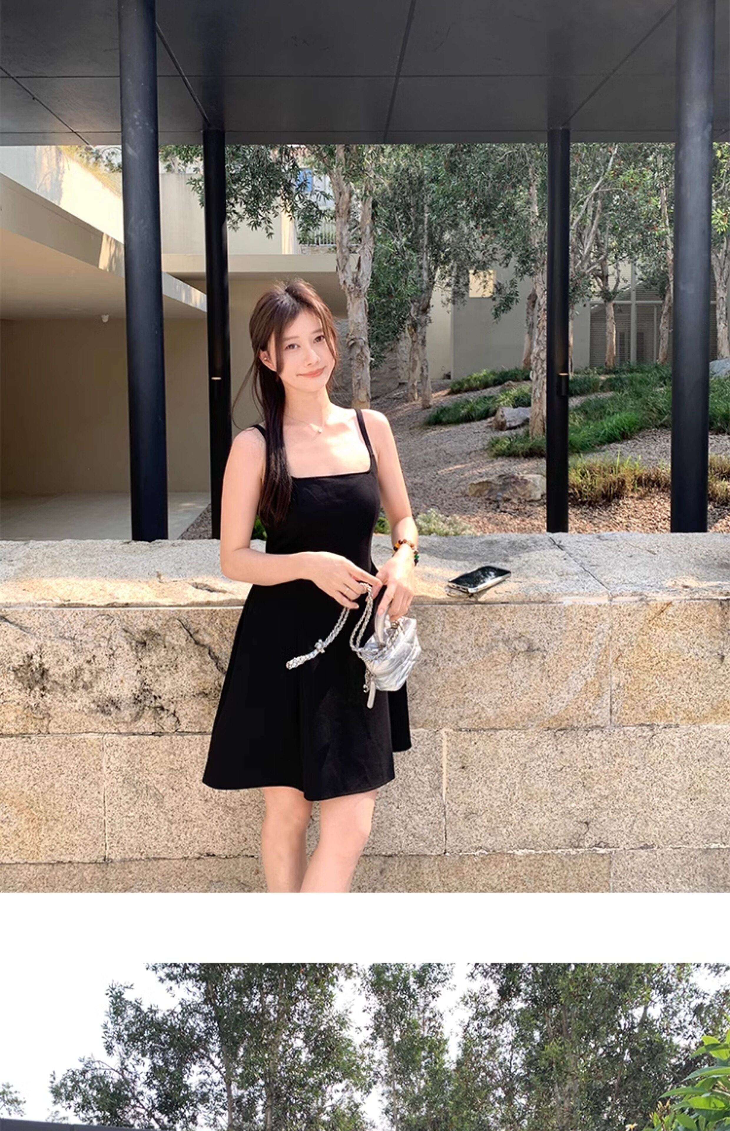 EKOOL衣库 天丝吊带连衣裙女夏季后背绑带修身显瘦长裙a字小黑裙
