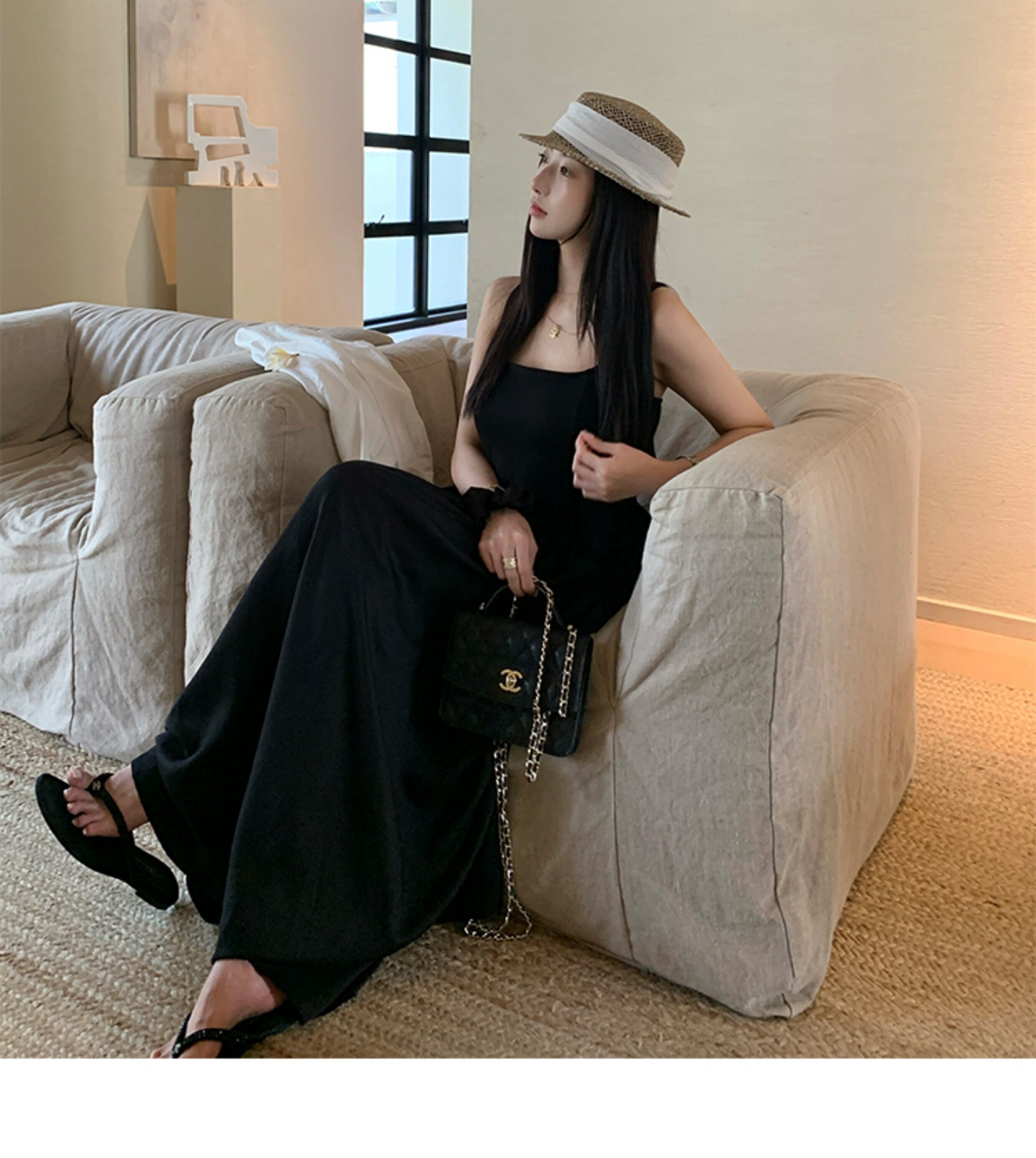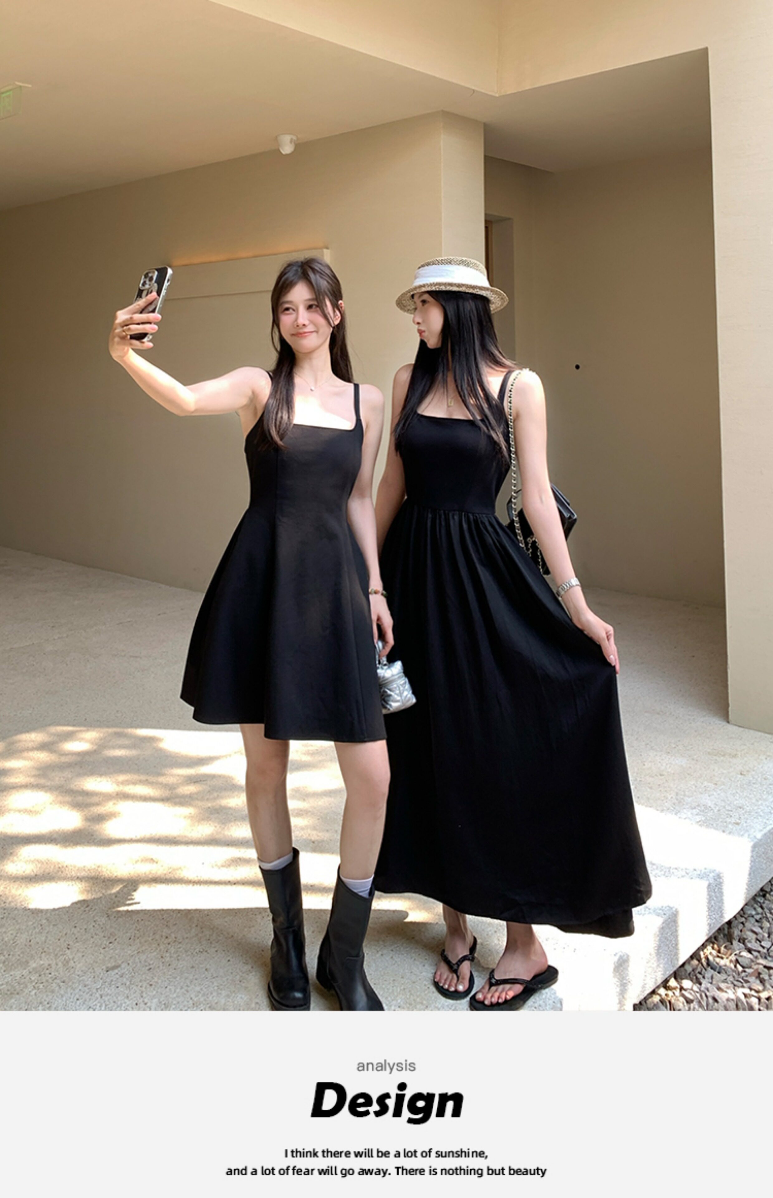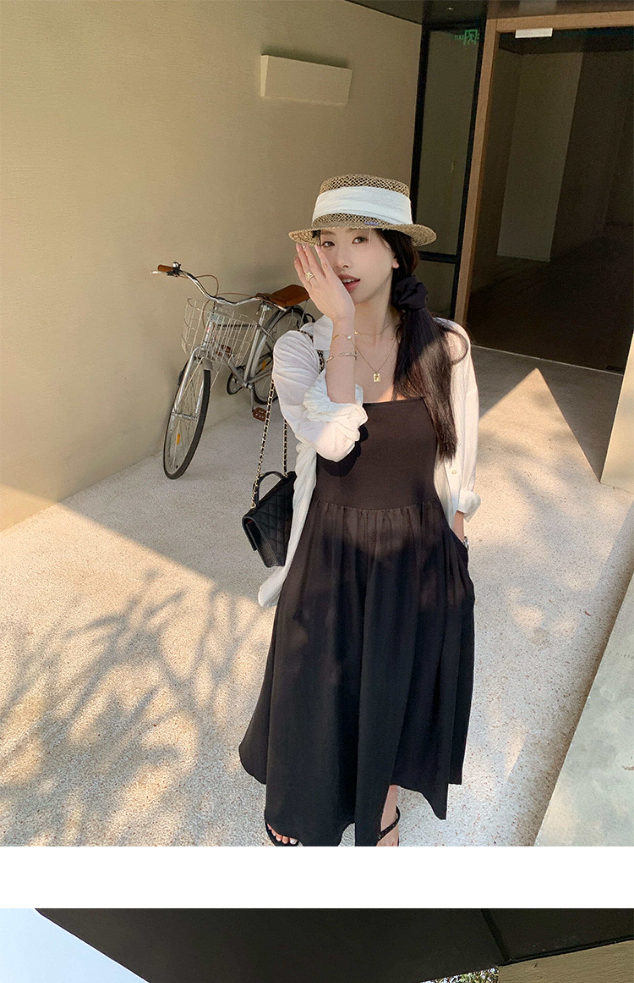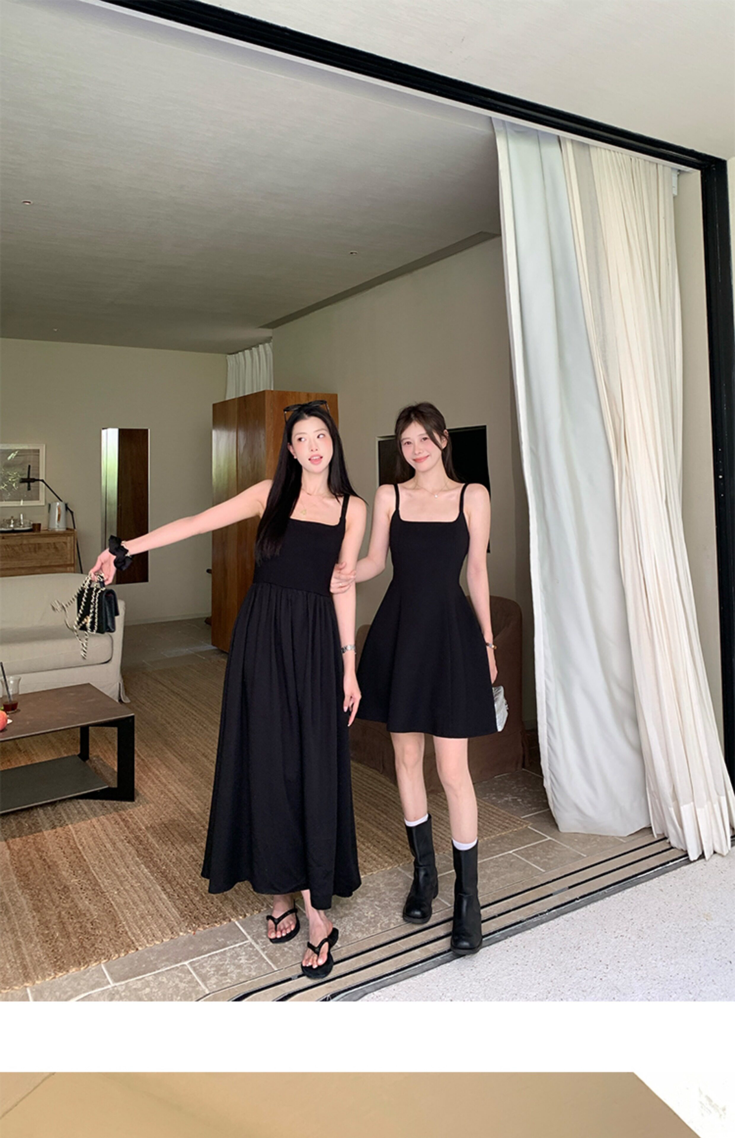 EKOOL衣库 天丝吊带连衣裙女夏季后背绑带修身显瘦长裙a字小黑裙