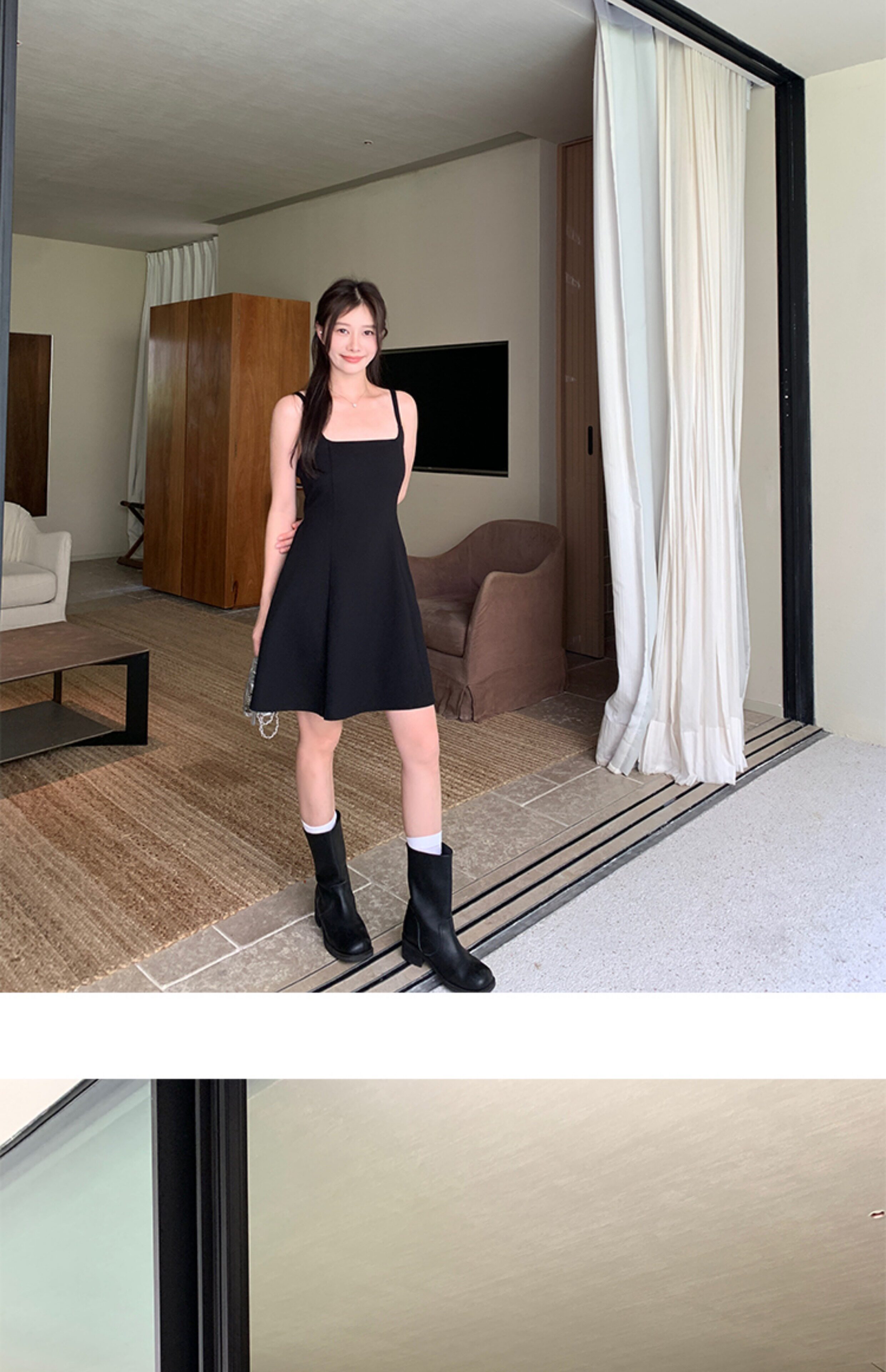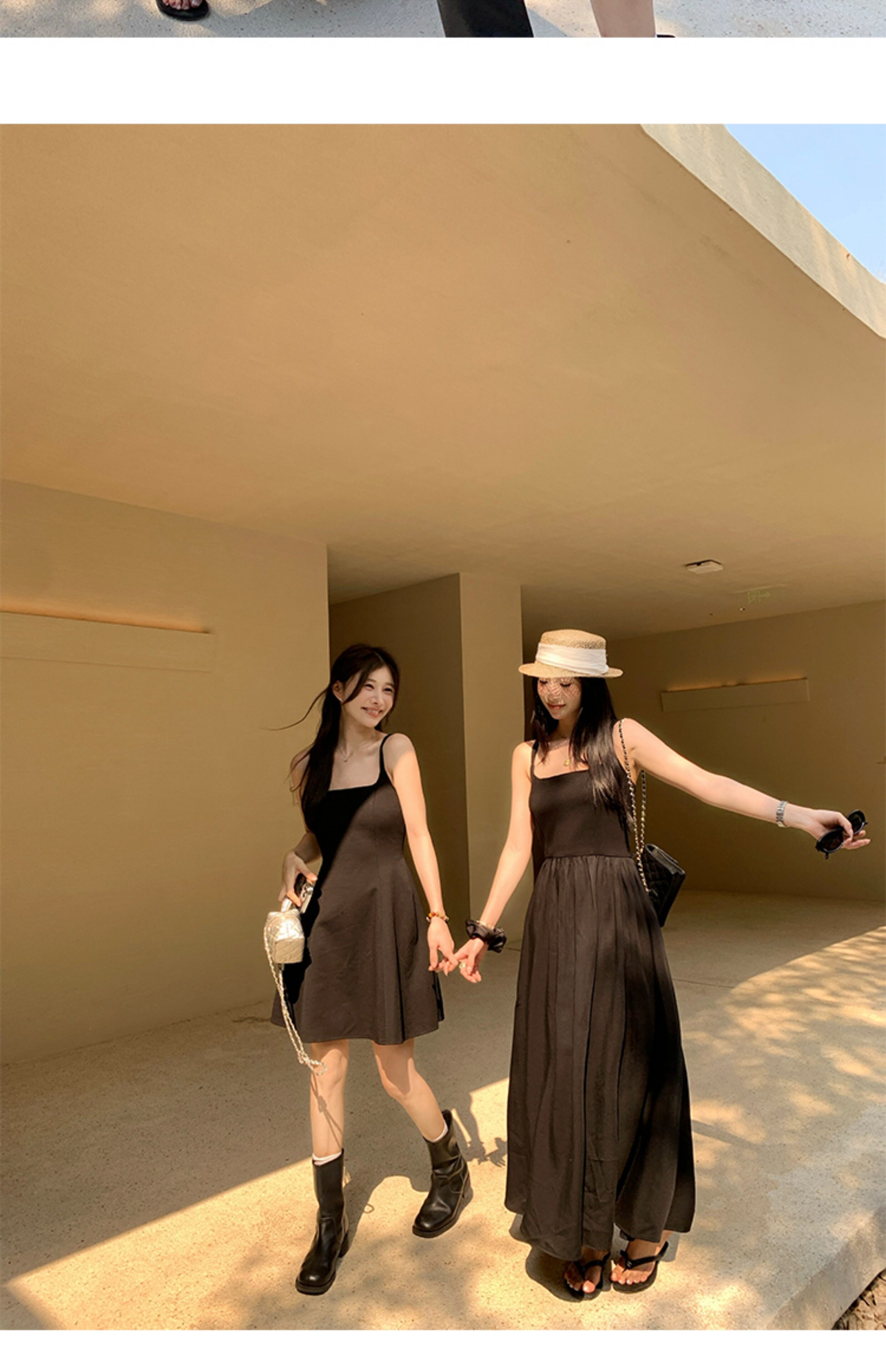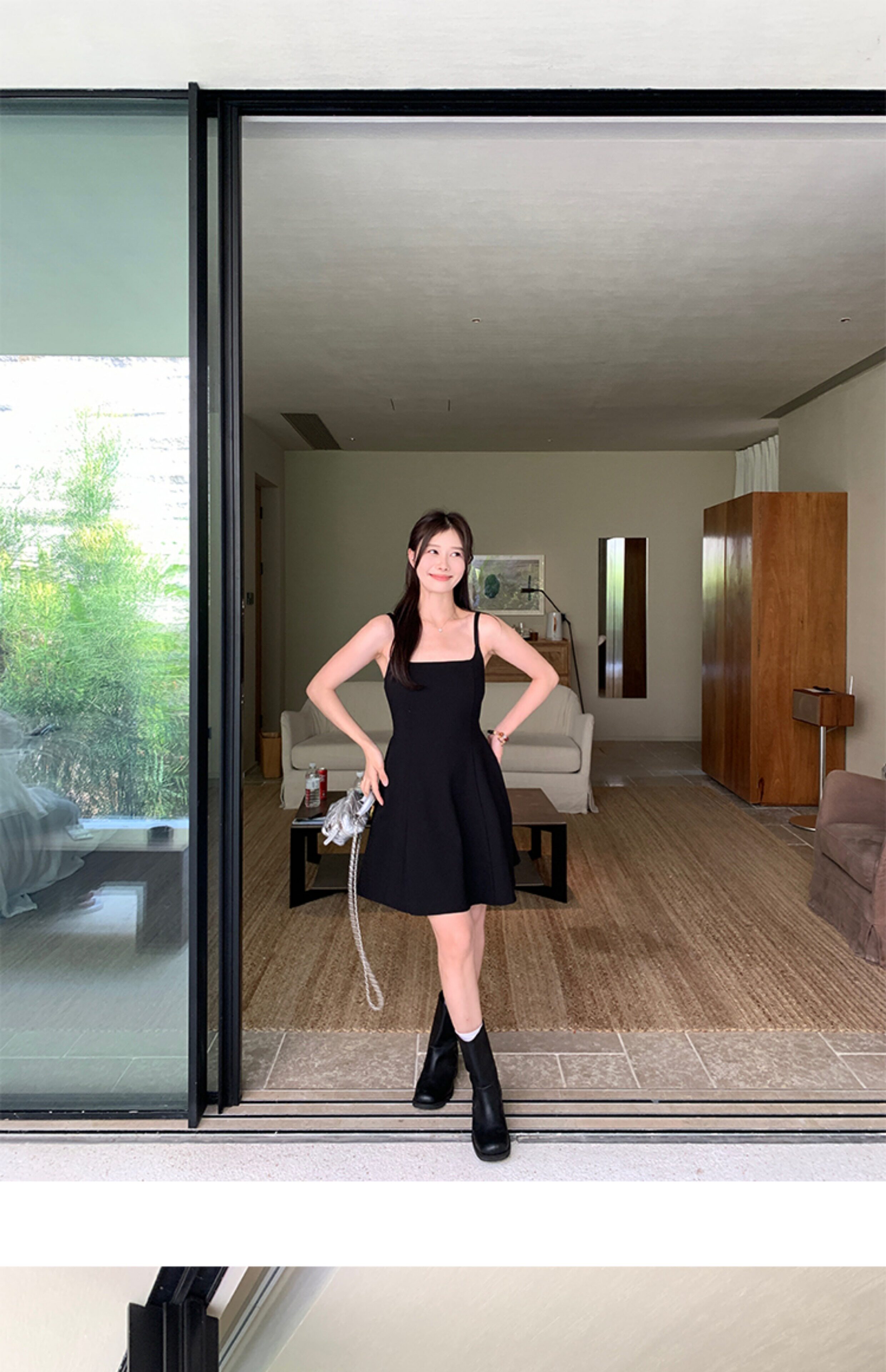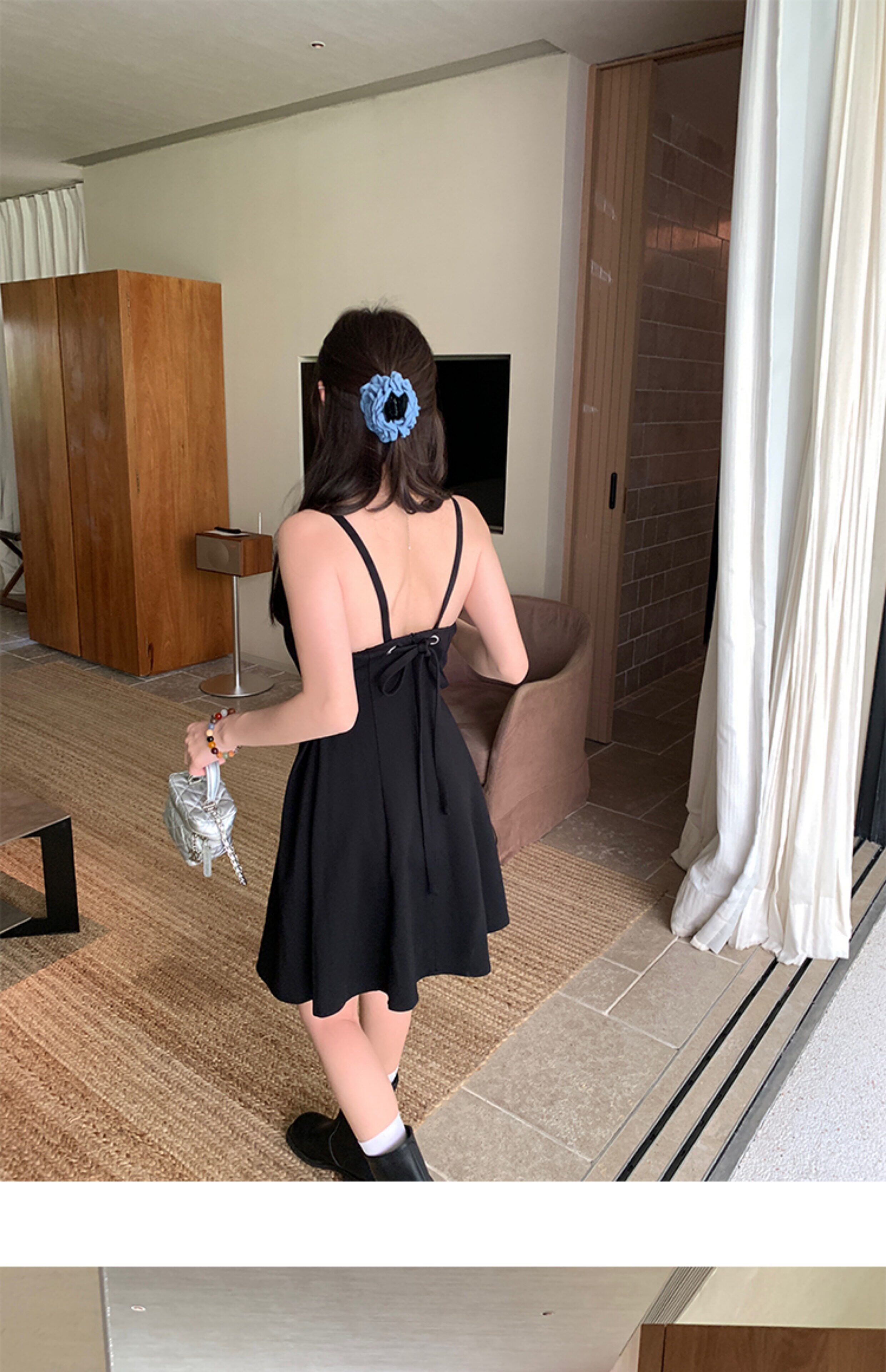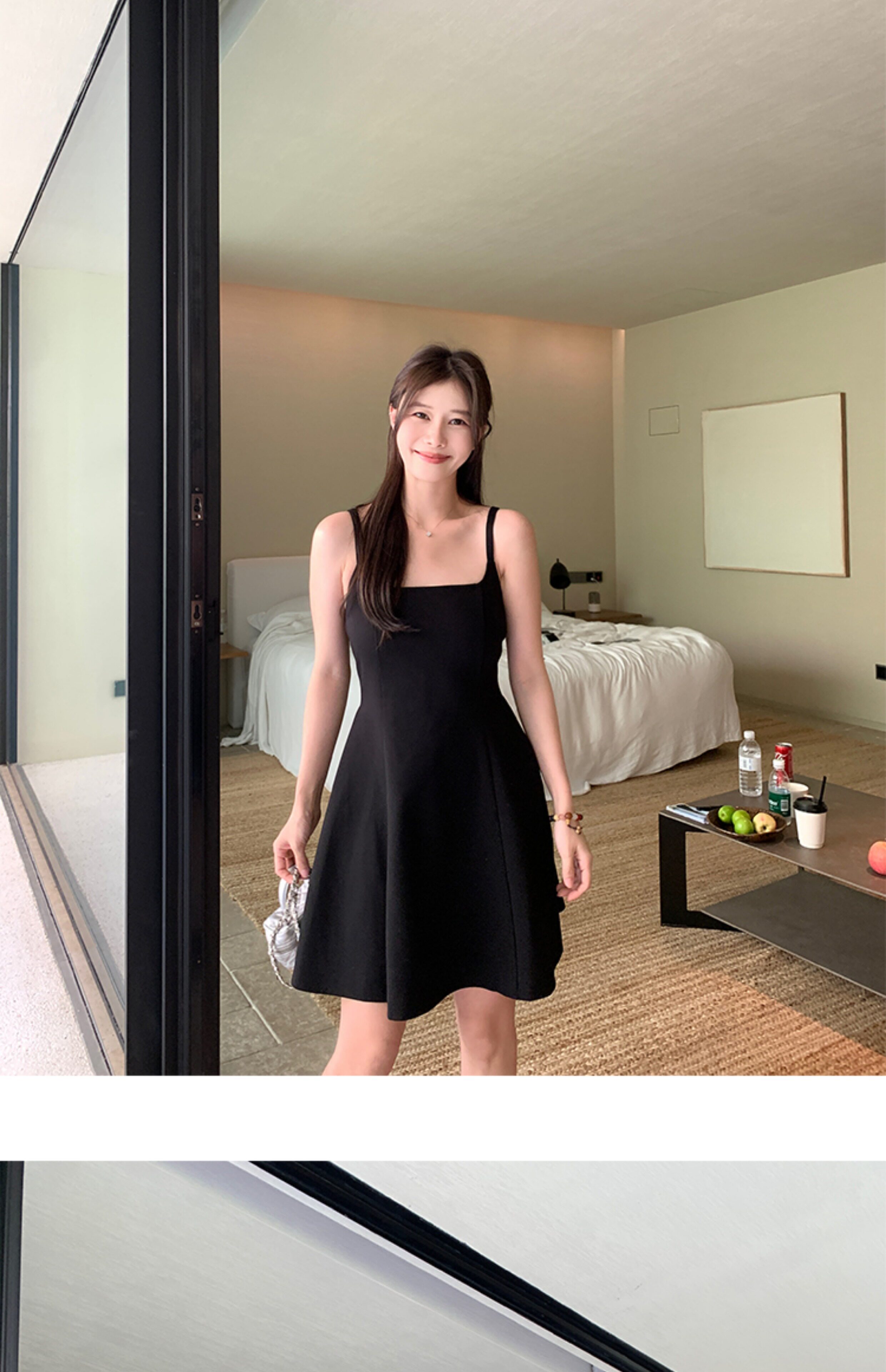 EKOOL衣库 天丝吊带连衣裙女夏季后背绑带修身显瘦长裙a字小黑裙