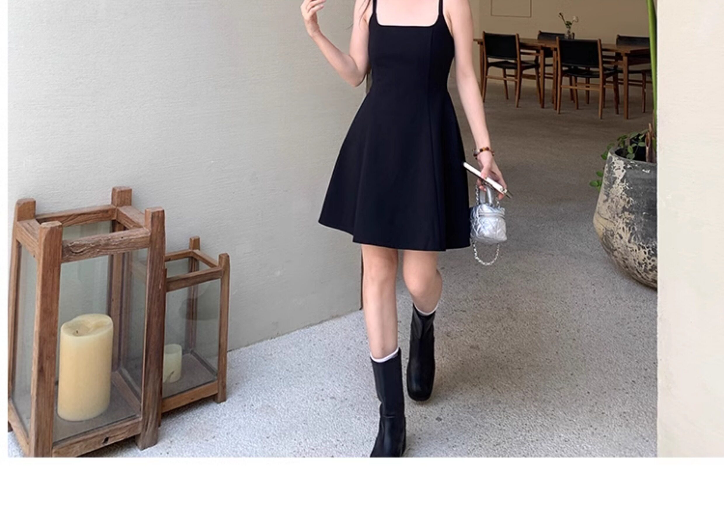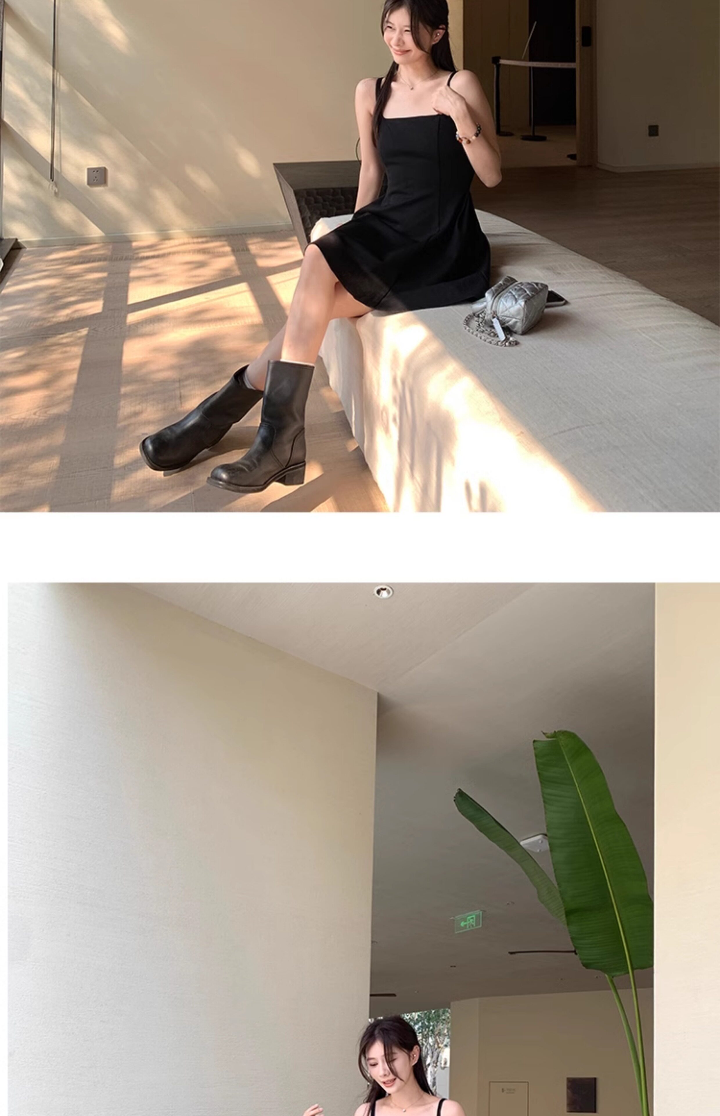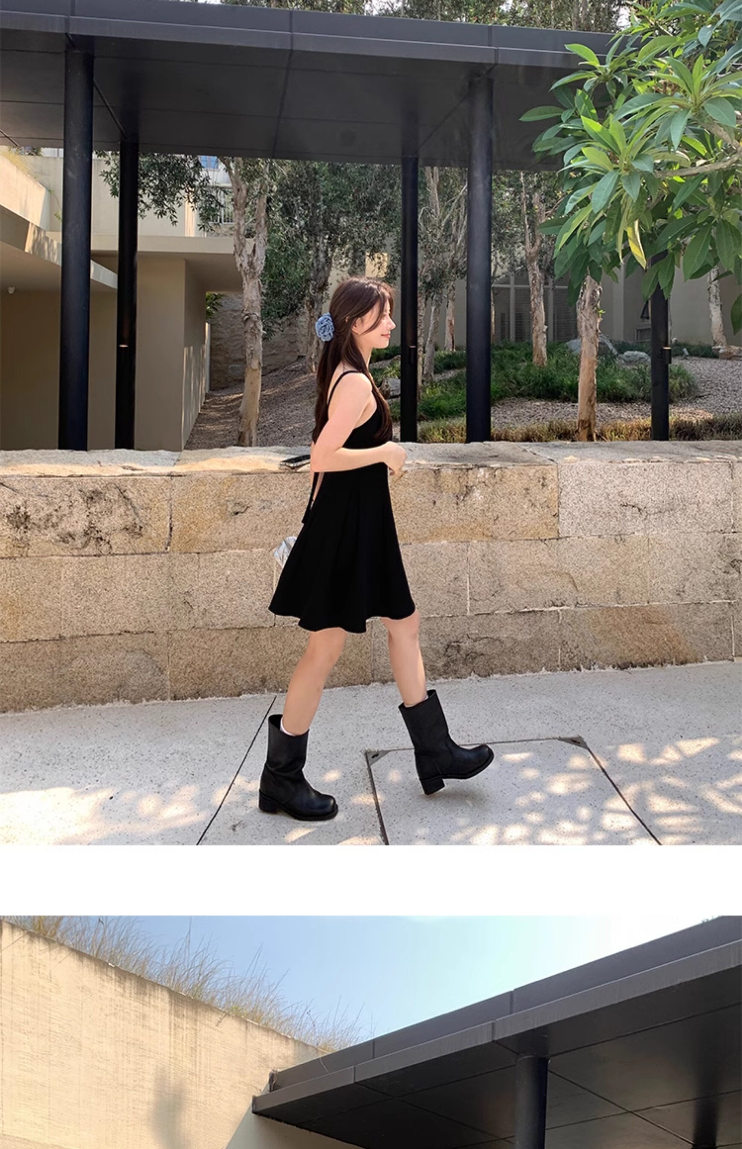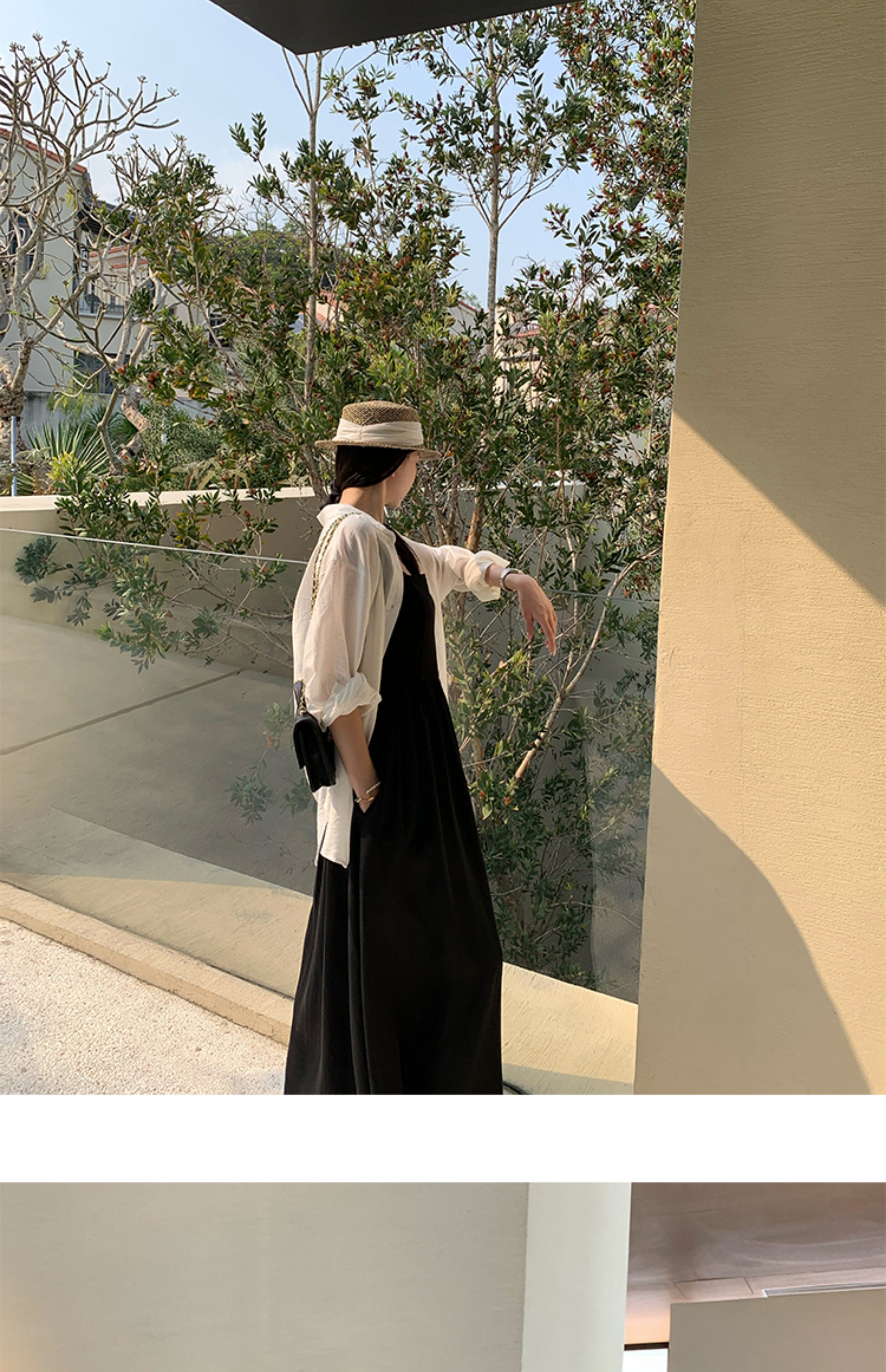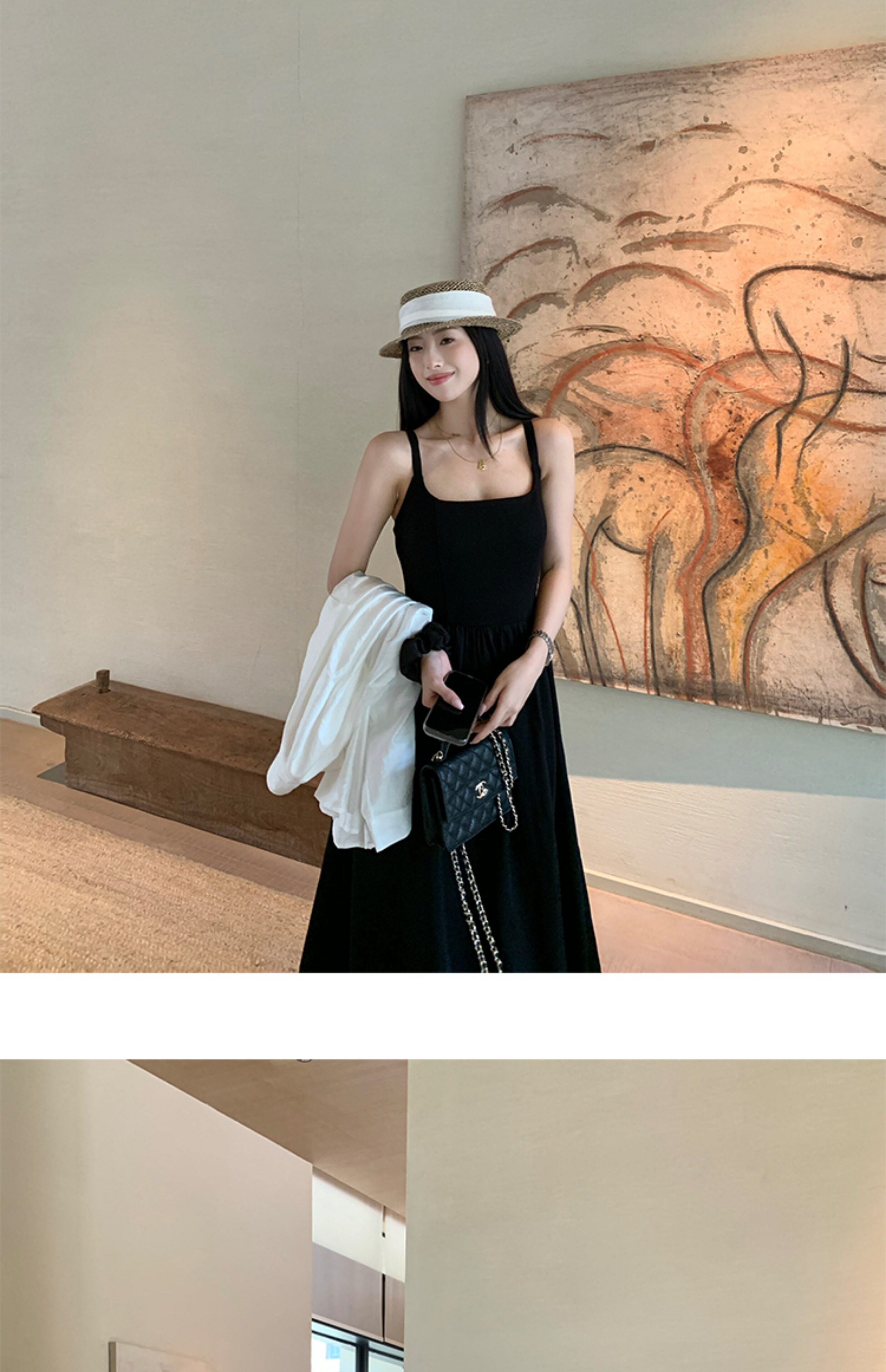 EKOOL衣库 天丝吊带连衣裙女夏季后背绑带修身显瘦长裙a字小黑裙