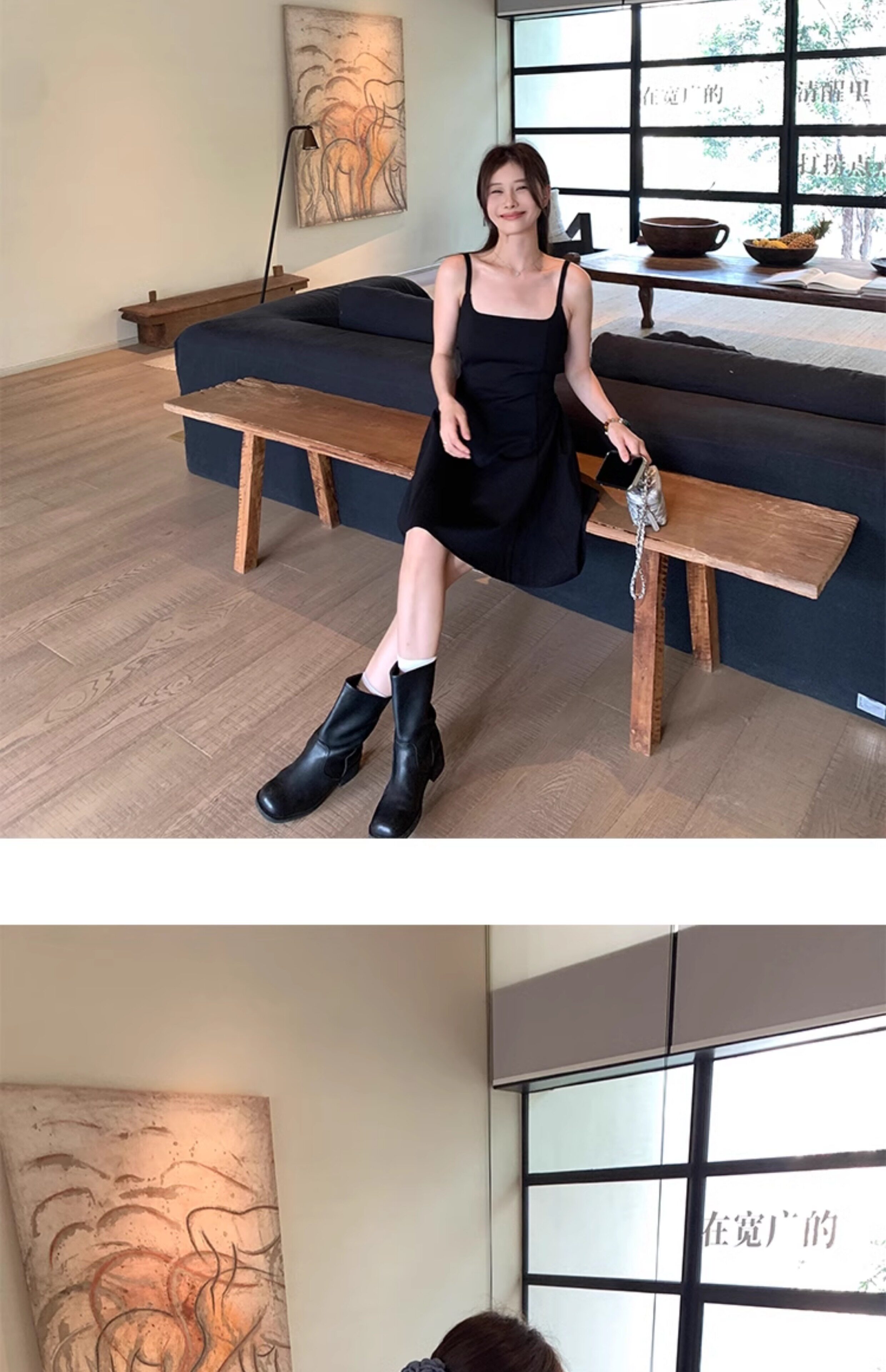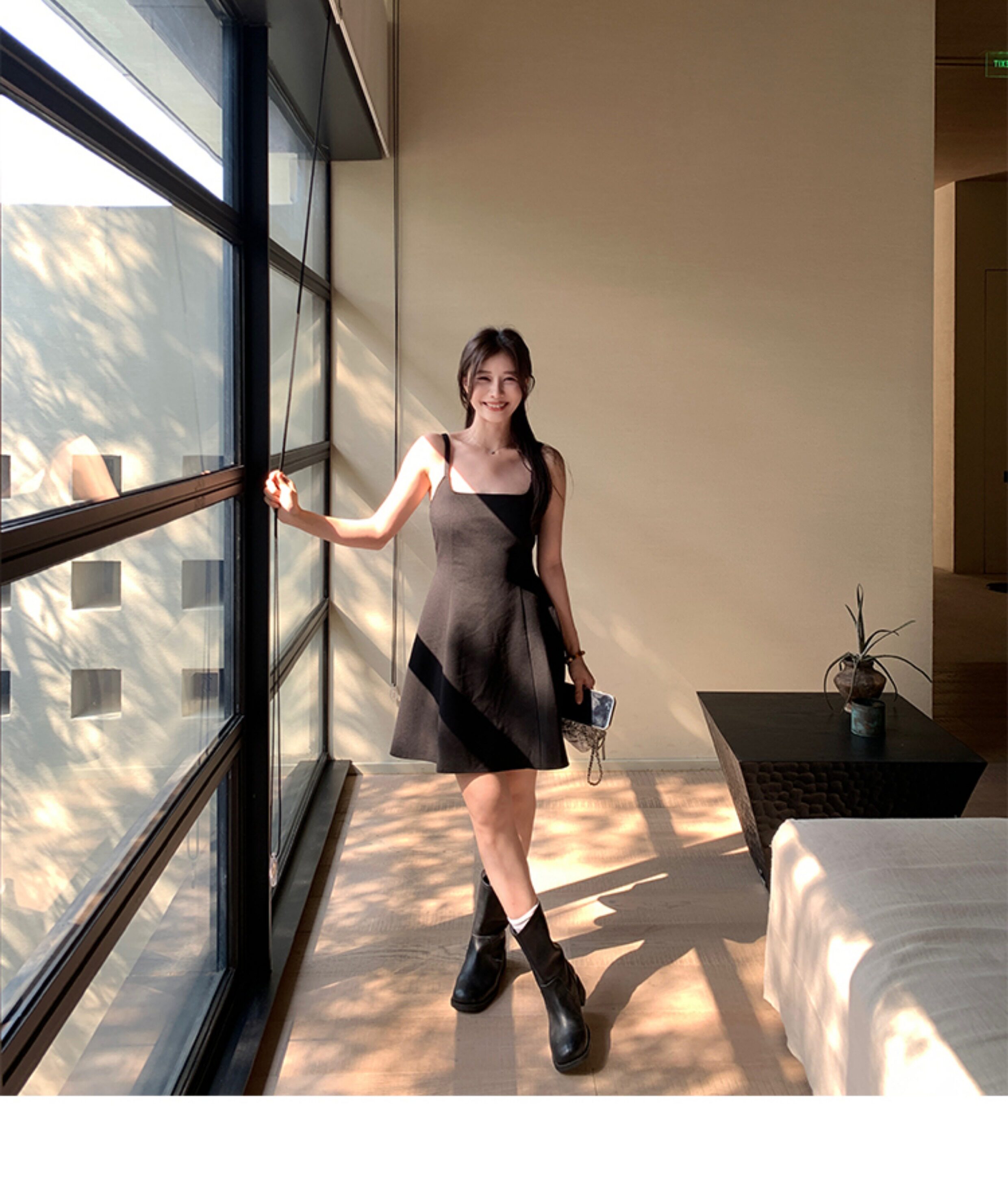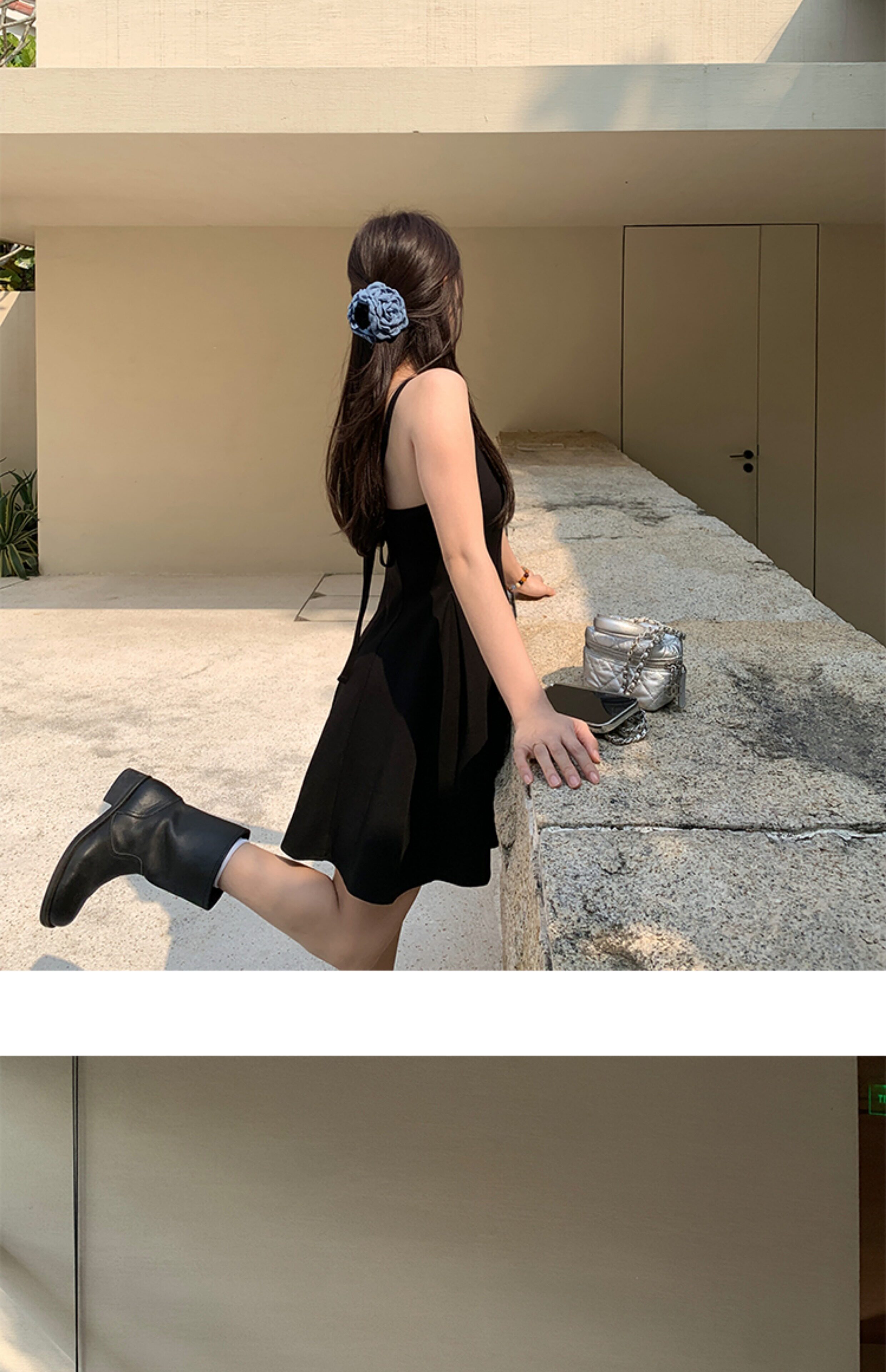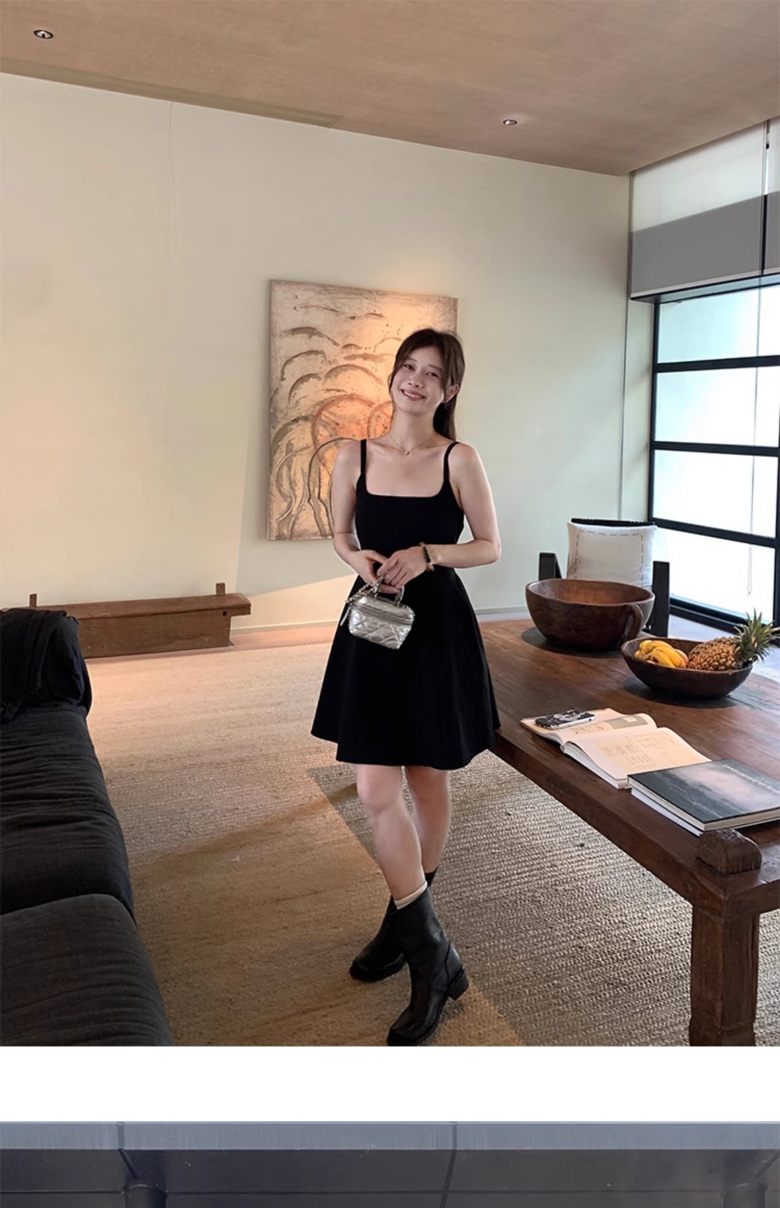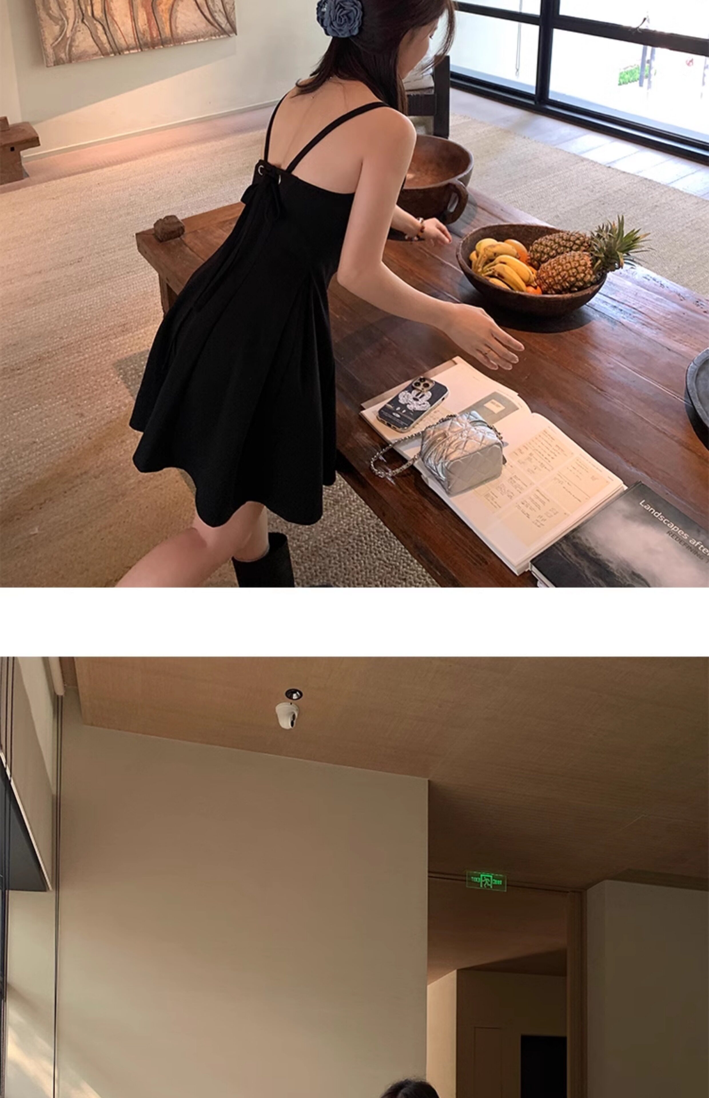 EKOOL衣库 天丝吊带连衣裙女夏季后背绑带修身显瘦长裙a字小黑裙