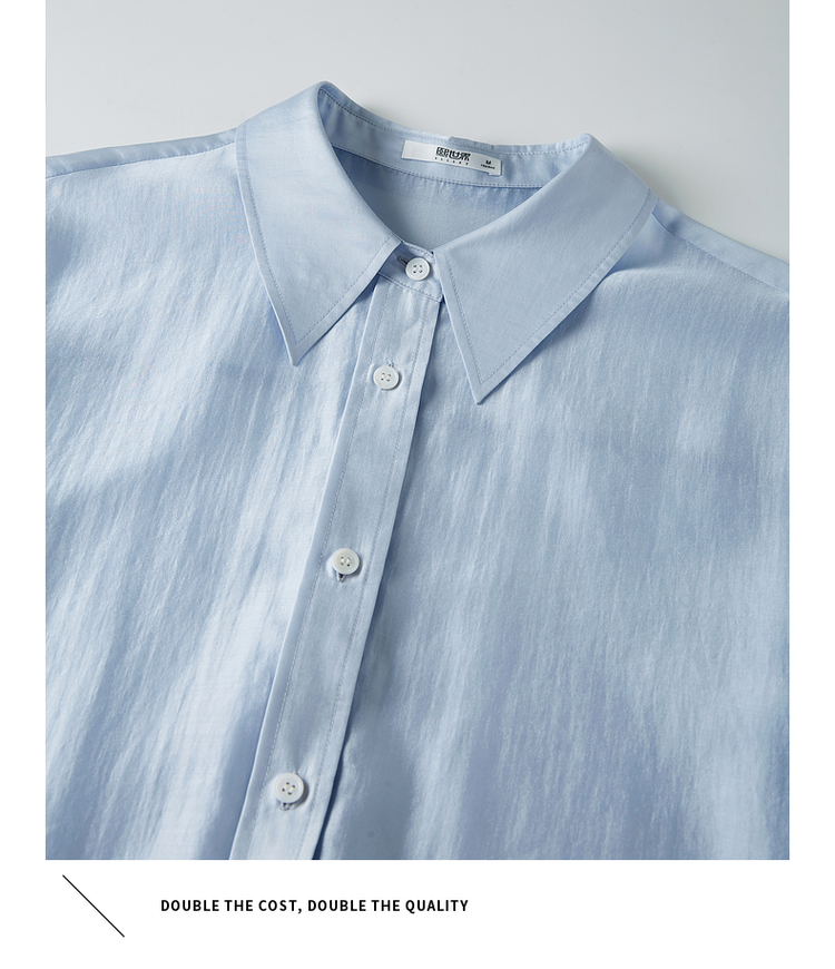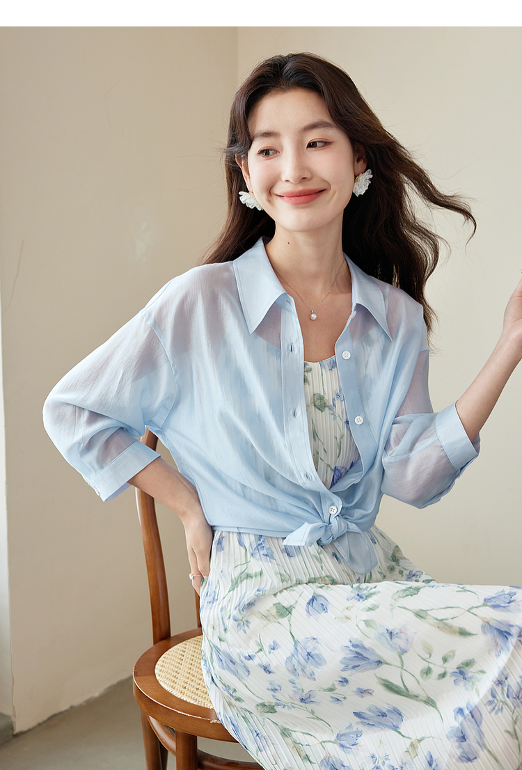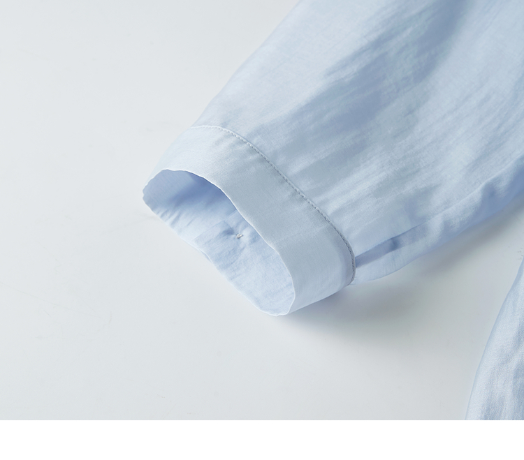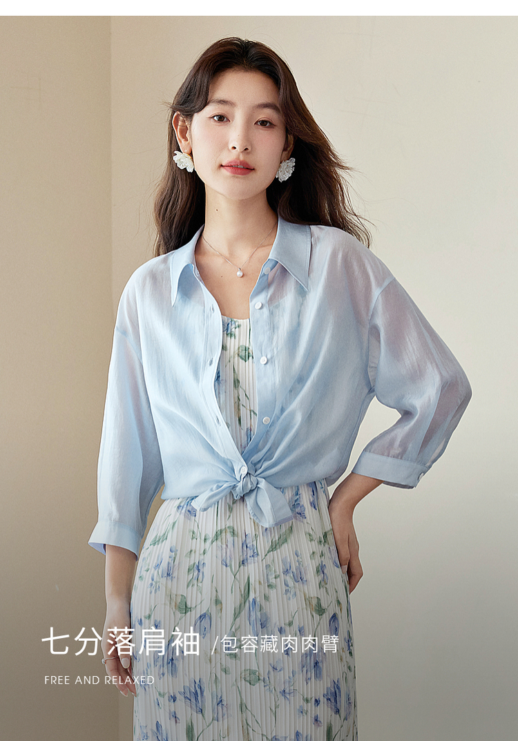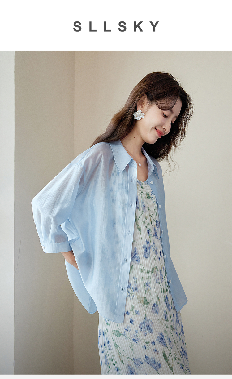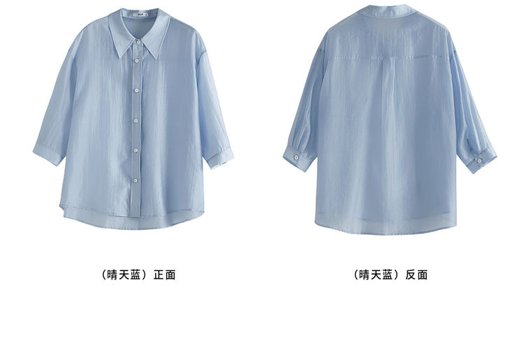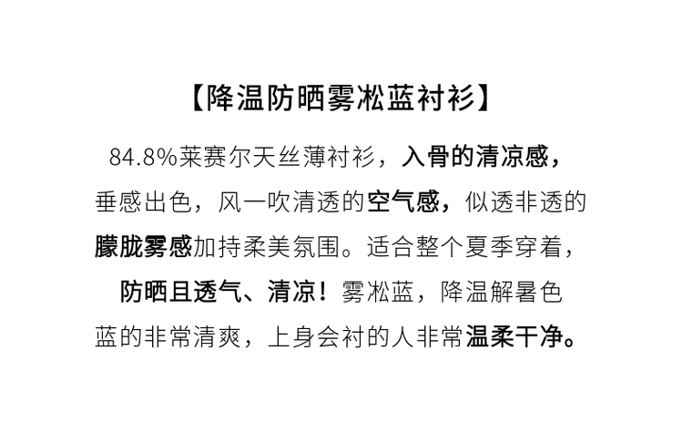 【五折购】熙世界莱赛尔防晒衬衫女2025夏季新款休闲薄款天丝开衫蓝色衬衣