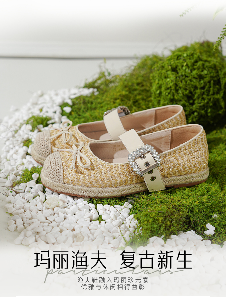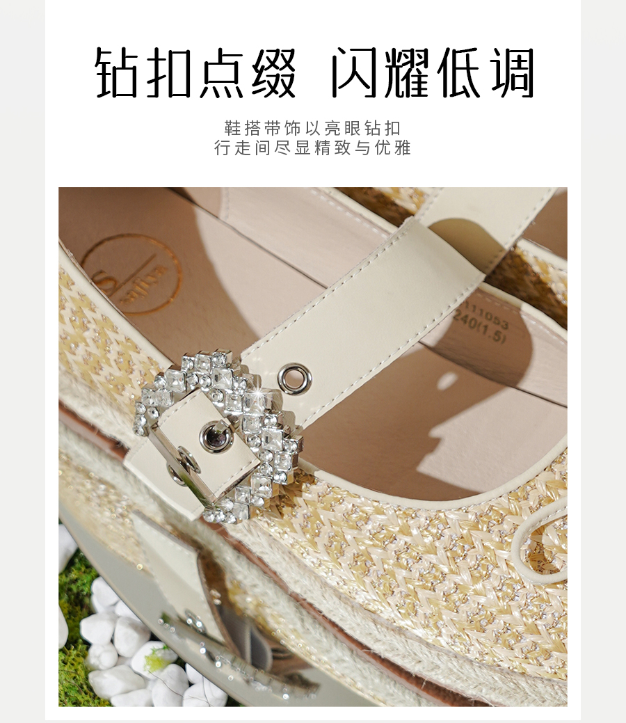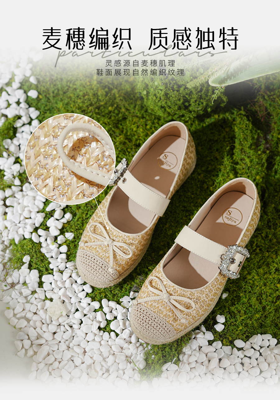 预售10天|Safiya/索菲娅2025休闲编织一字带钻扣百搭玛丽珍渔夫鞋SFD1111053