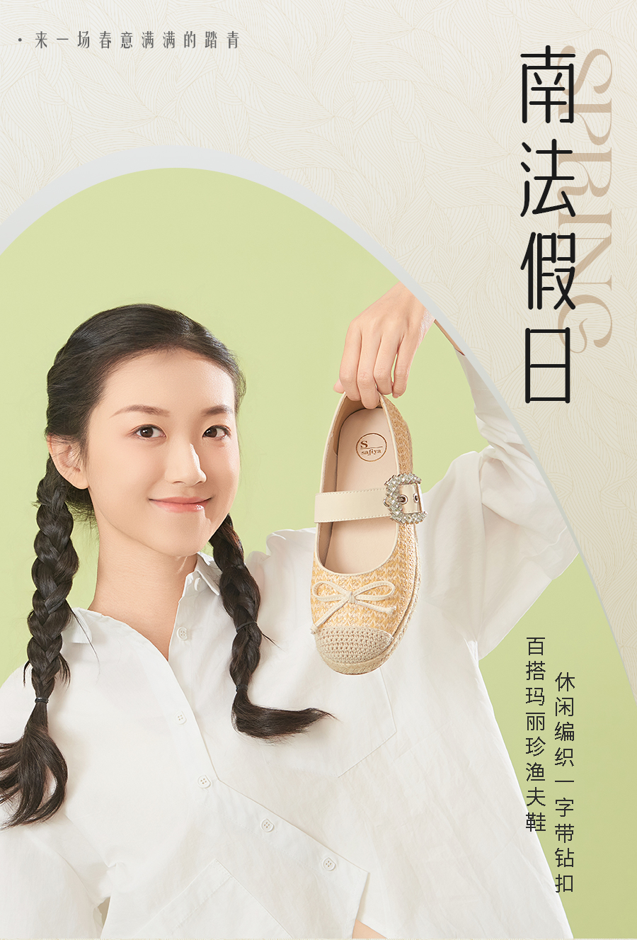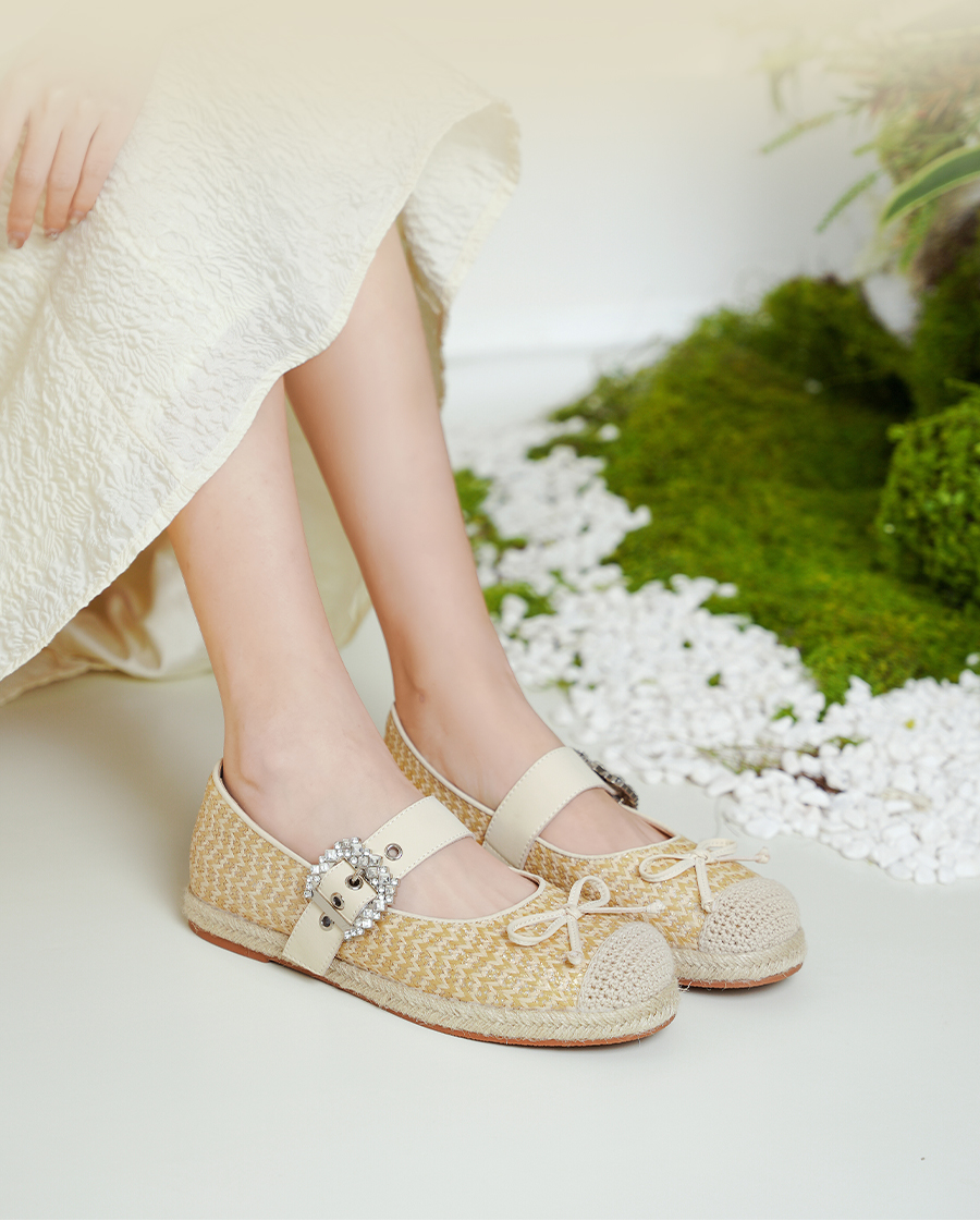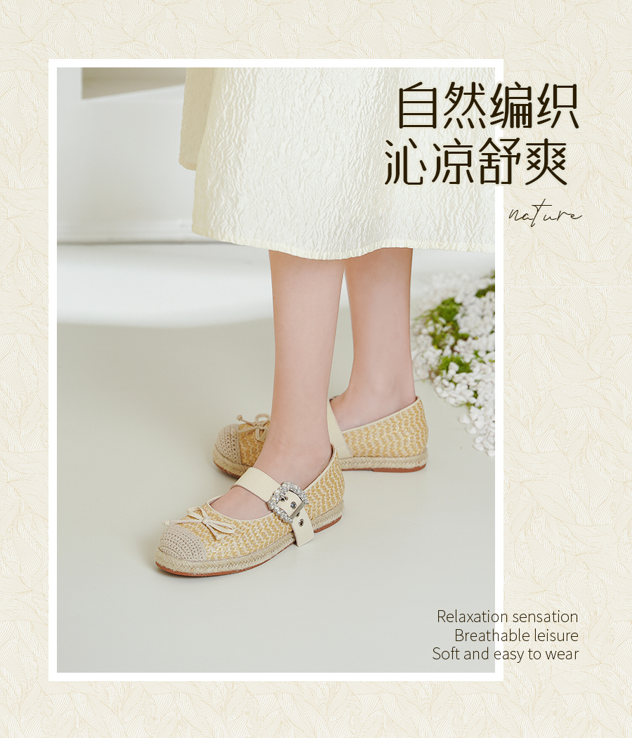 预售10天|Safiya/索菲娅2025休闲编织一字带钻扣百搭玛丽珍渔夫鞋SFD1111053