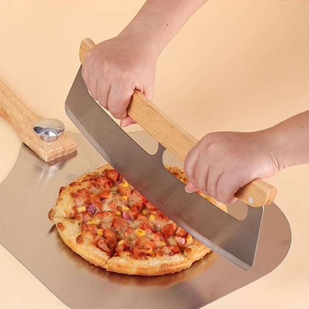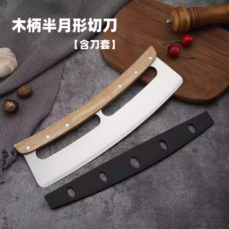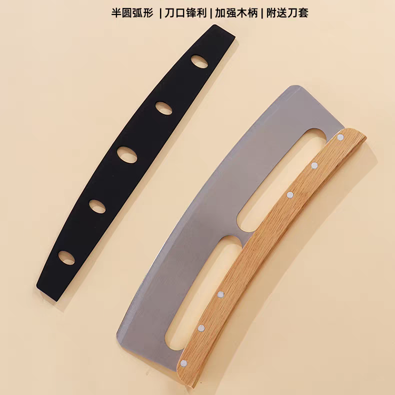 木柄半月形切刀(含刀套) 披萨摇刀 烘焙用具半圆披萨刀 商用牛轧糖披萨切刀工具
