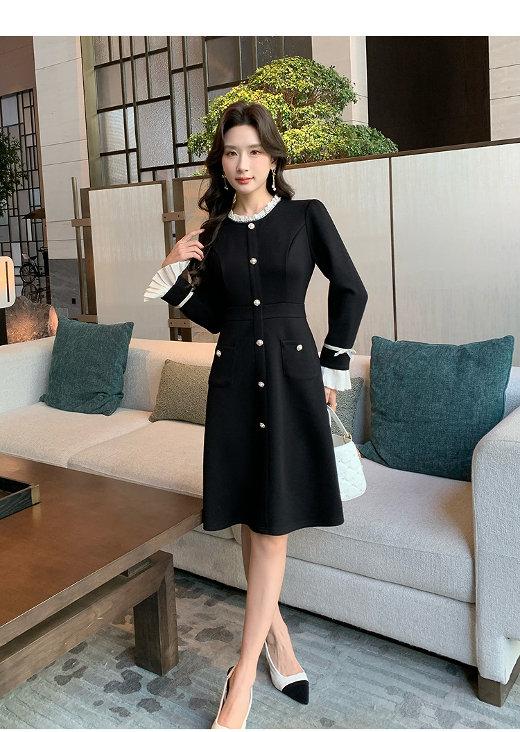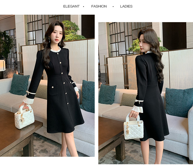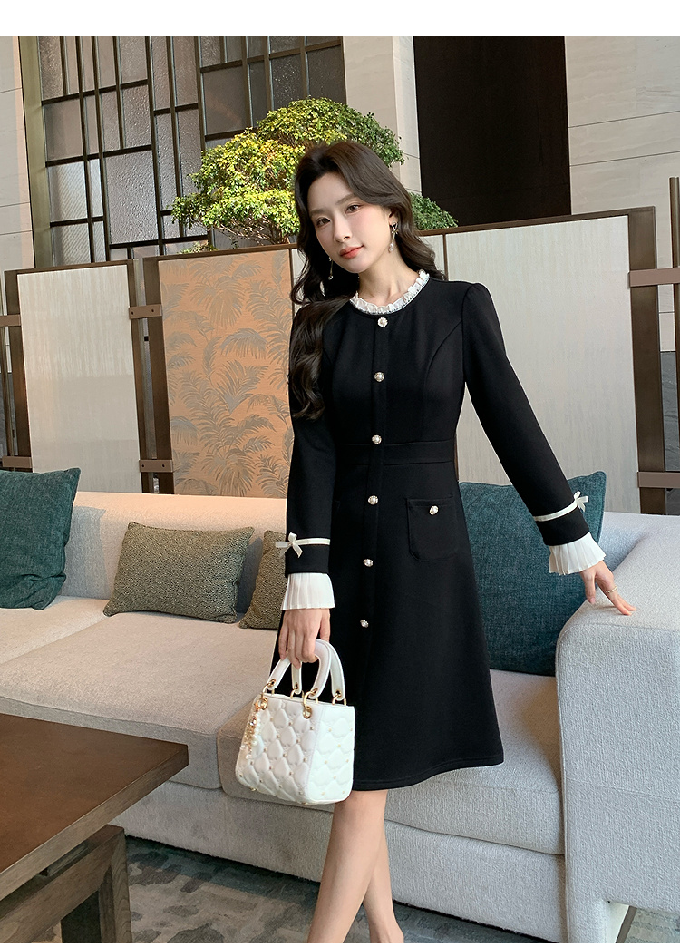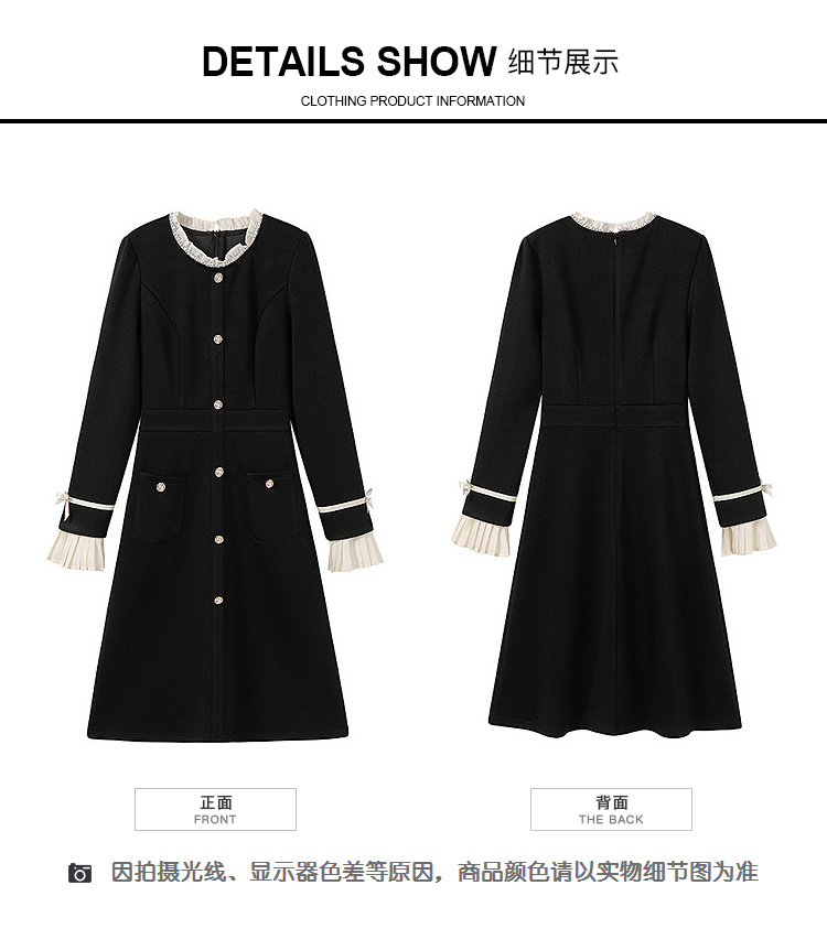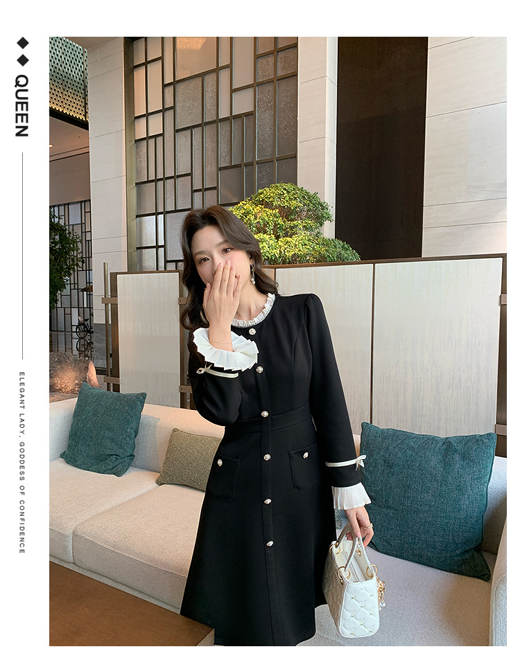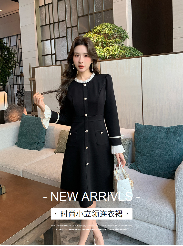 奢姿大码女装2024冬季小立领气质连衣裙胖妹妹喇叭袖设计时尚裙子9944891723