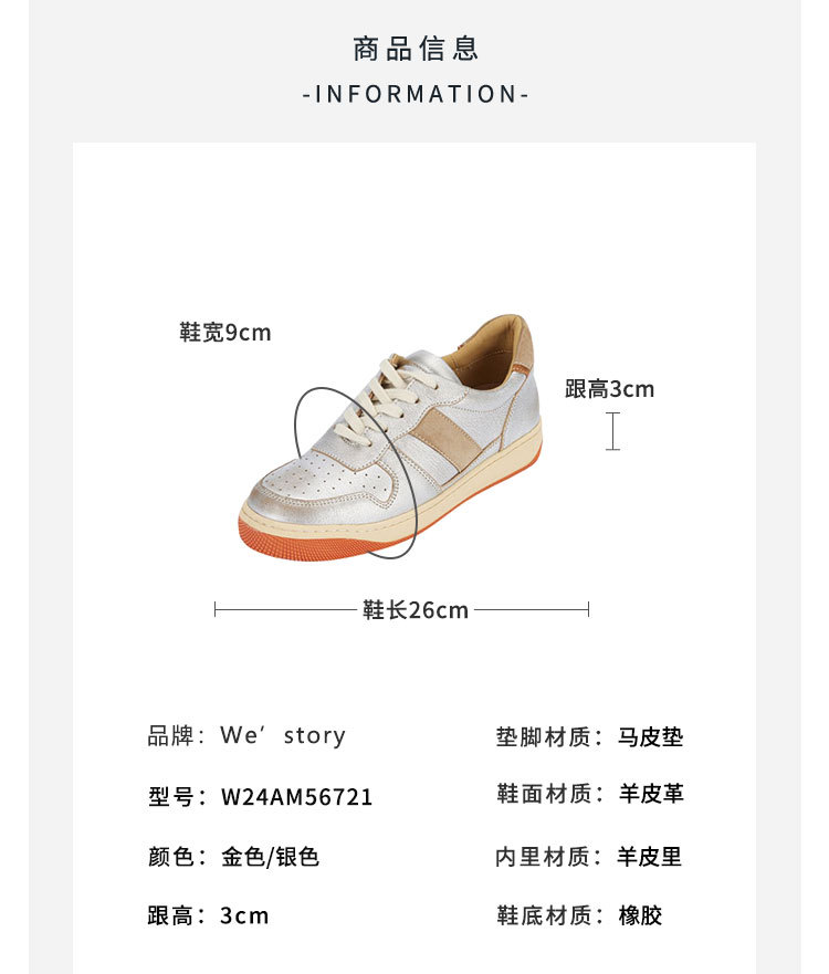 westory2024年春季新款平跟厚底增高舒适防滑运动鞋板鞋W24AM56721