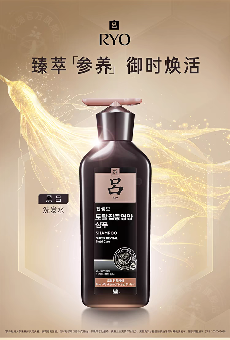 RYO黑吕臻参焕活御时昇机洗发水/护发素400ml 5大参养萃焕活头皮光泽提升润养 新老包装随机