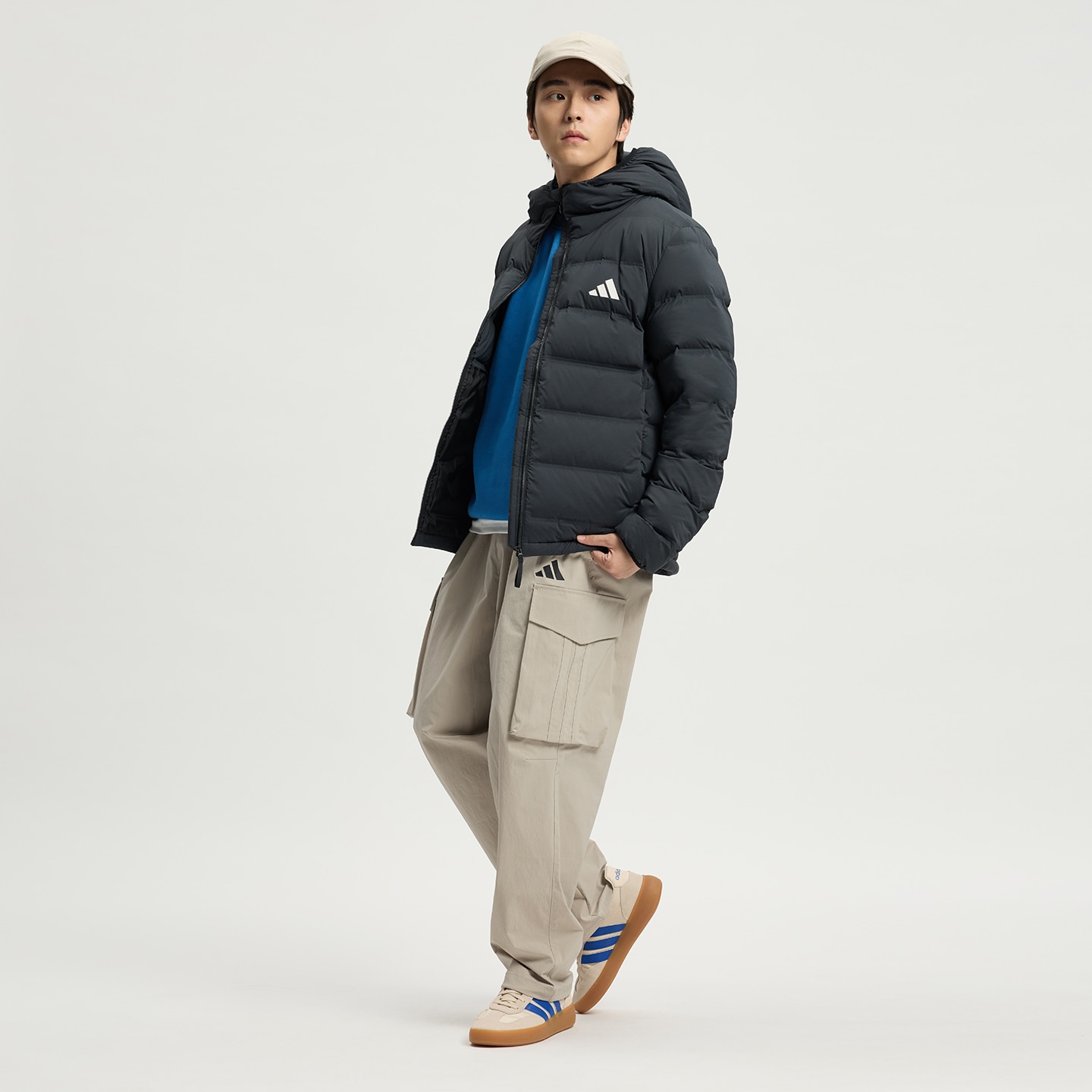 Adidas阿迪达斯HELIONIC STRETCH HOODED DOWN JACKET男子 防风保暖连帽羽绒服KH3993