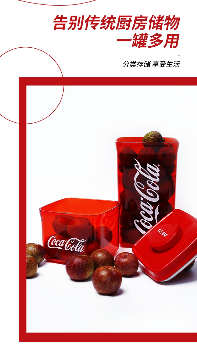 格沵(GERM)可口可乐联名潮流水果保鲜密封储物盒 红色850ml