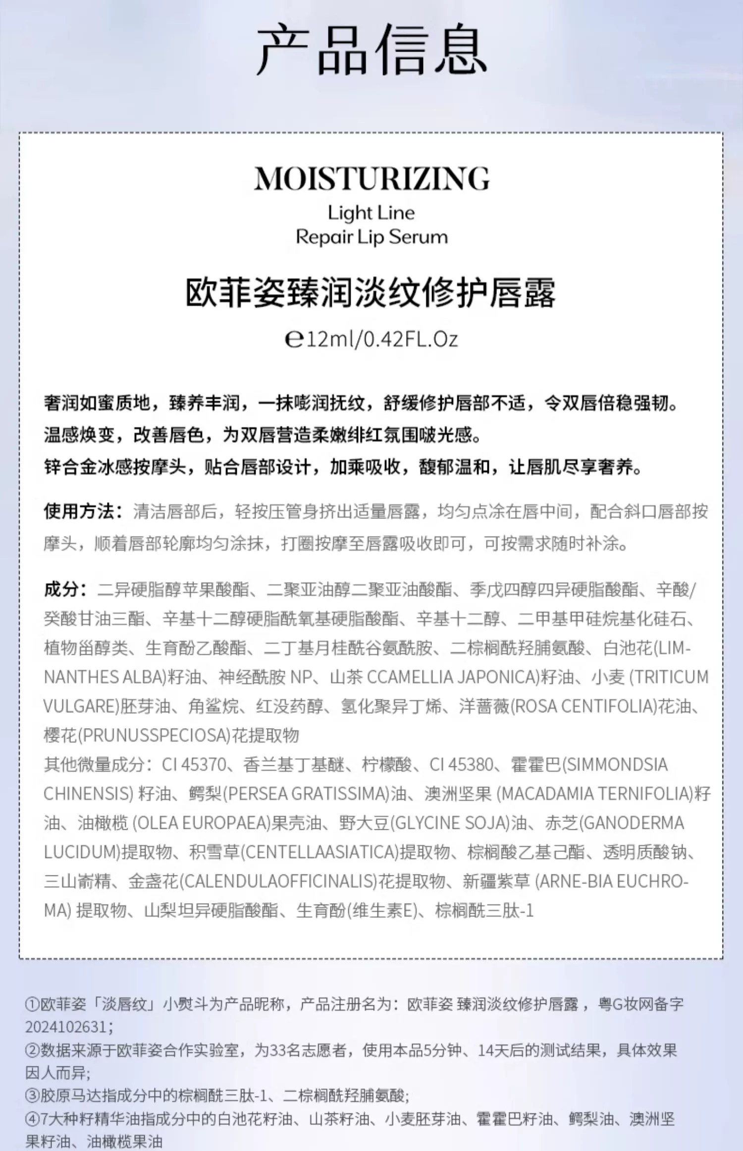 欧菲姿小熨斗臻润淡纹修护唇露舒缓修护保湿滋润唇膏精华