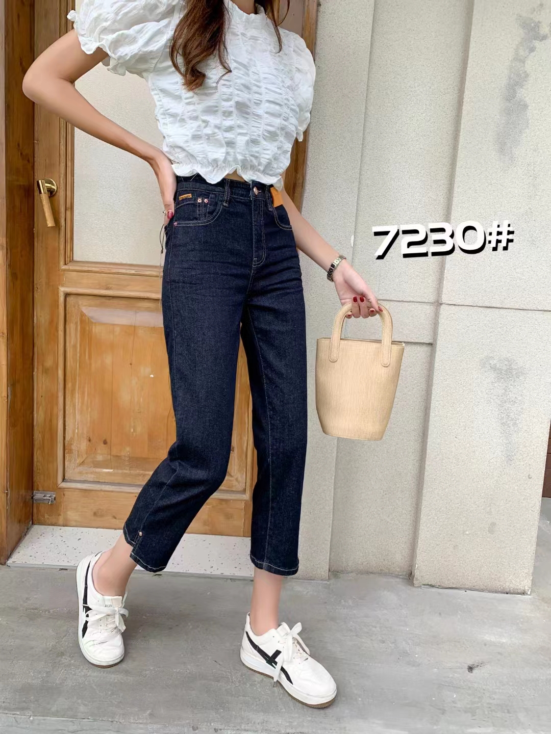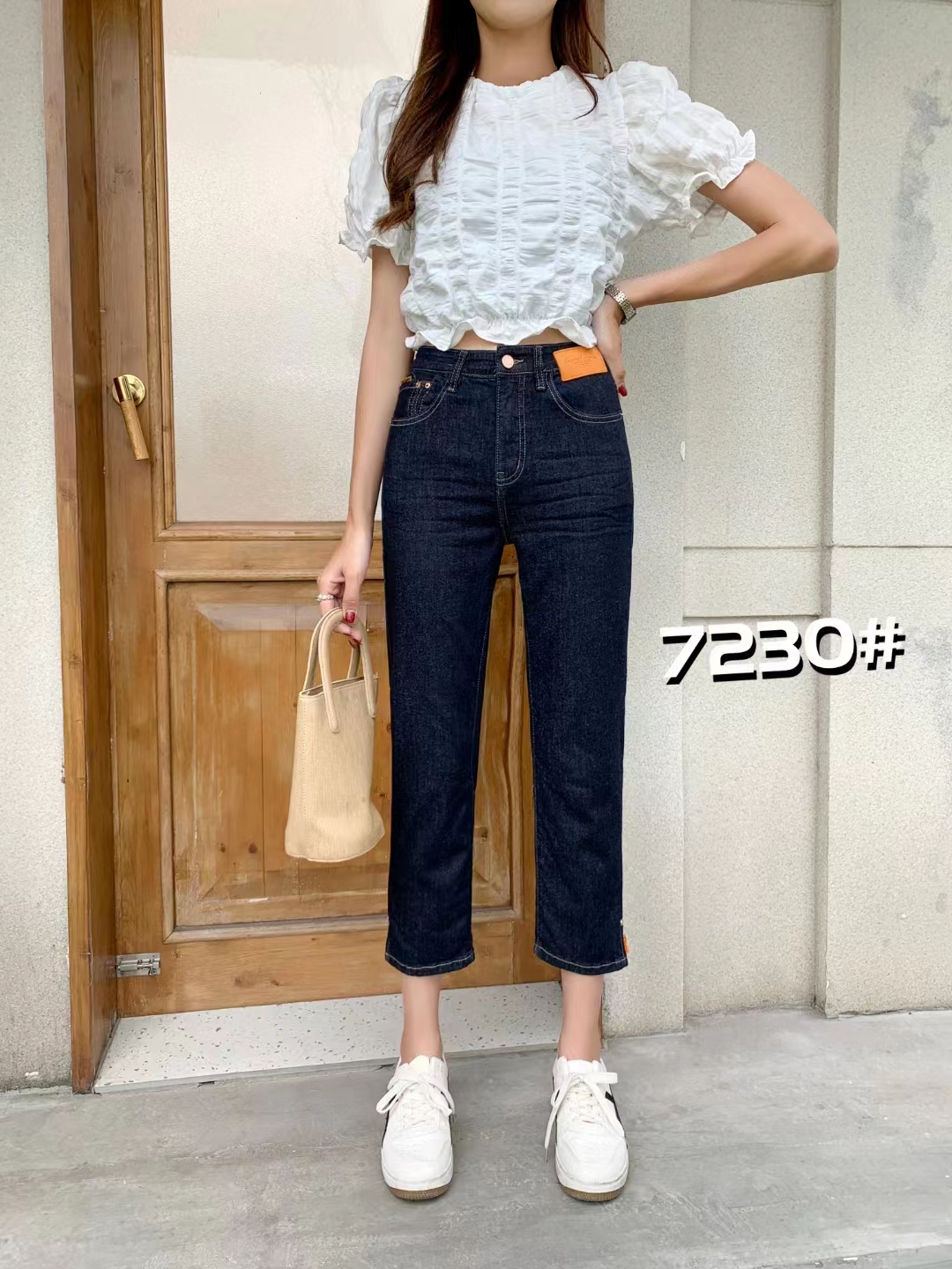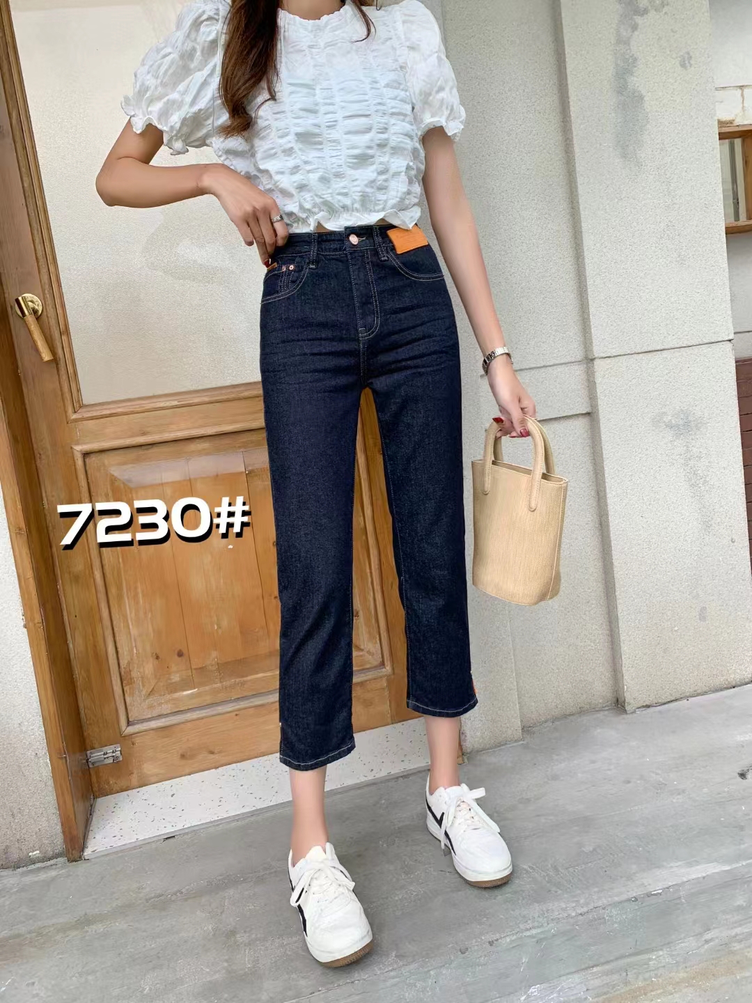 7230 # 深蓝 27-32 夏季新款超薄八分牛仔裤 高腰直筒弹力显瘦烟管裤