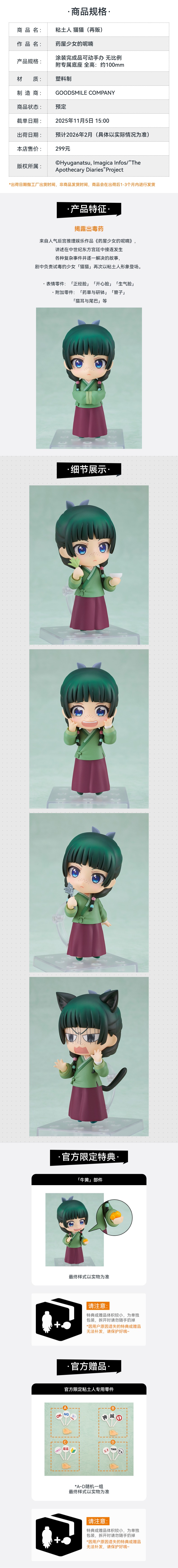 【GSC预售定金】粘土人 猫猫 附官方限定特典 药屋少女的呢喃