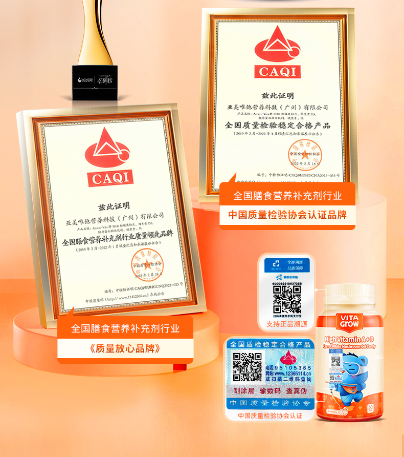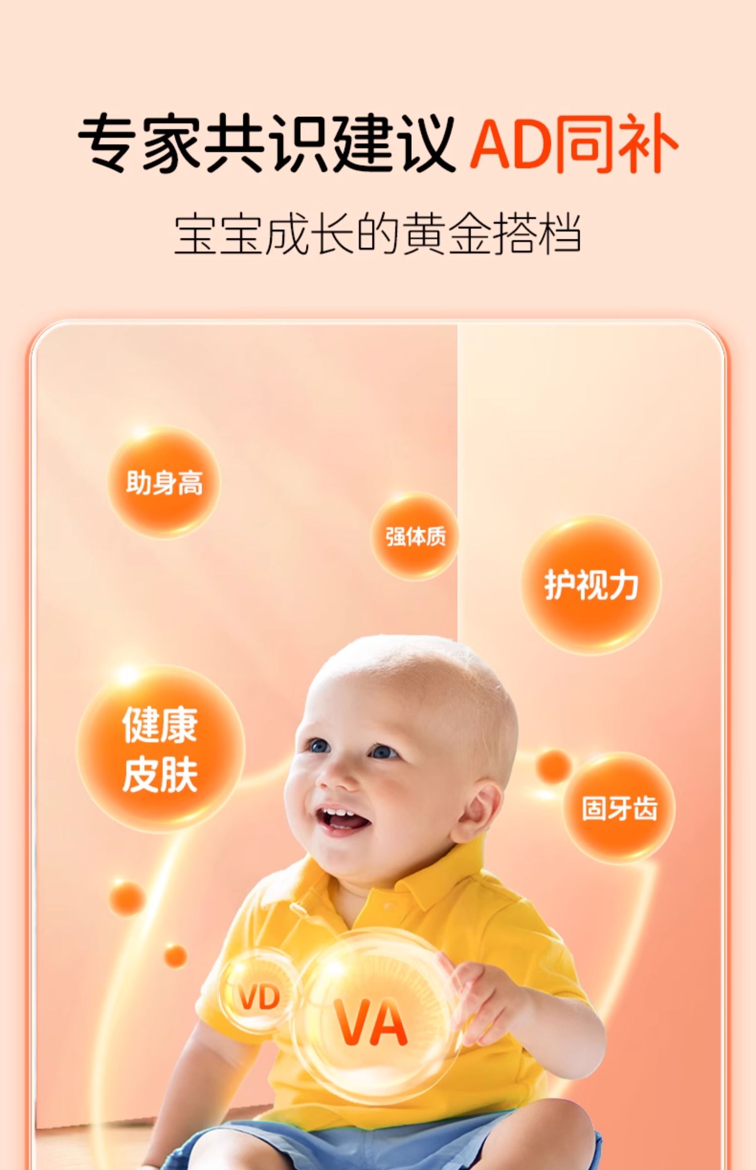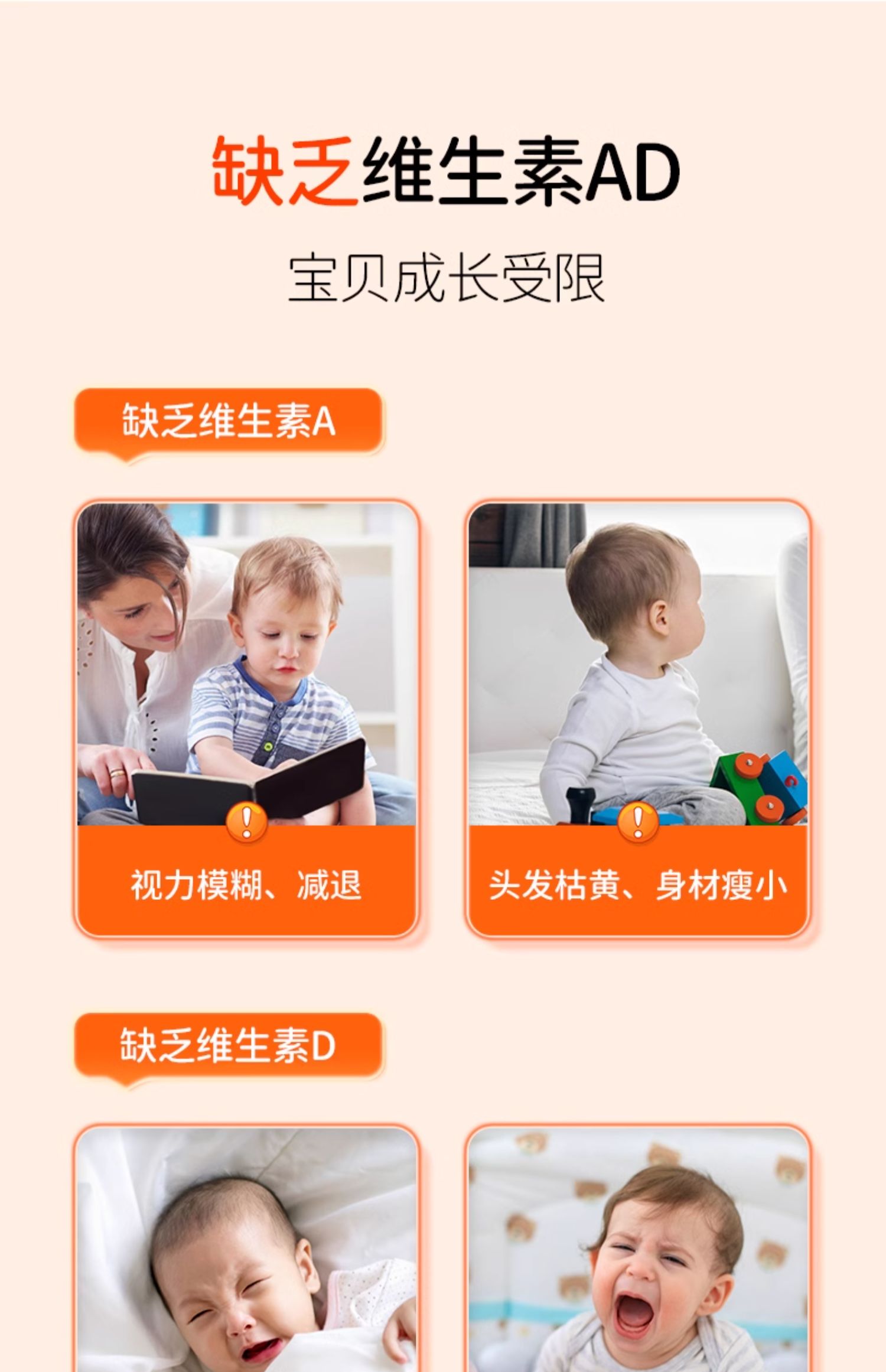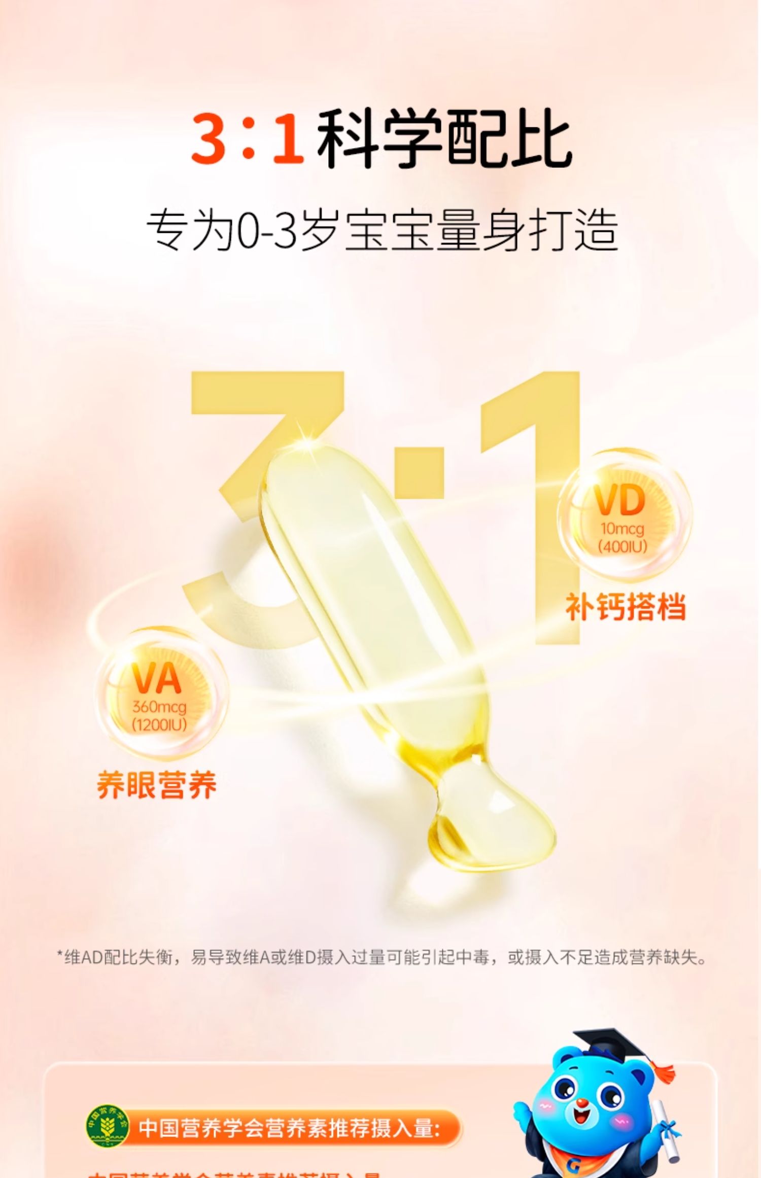 VITA Grow 婴幼儿维生素AD软胶囊 60粒/瓶 补好维AD 补钙视力齐发展(效期至2026-11-08 )