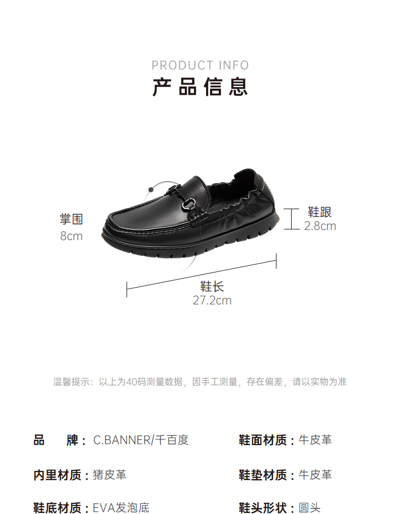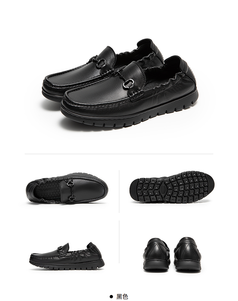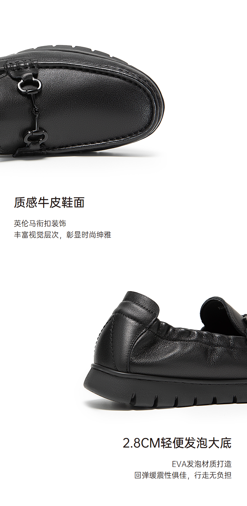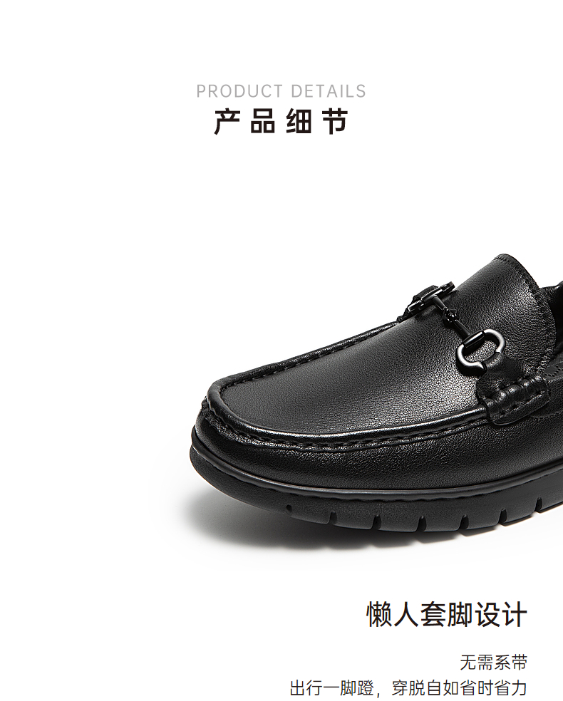 千百度男鞋一脚蹬皮鞋秋季男士真皮休闲皮鞋黑色豆豆鞋A24454021