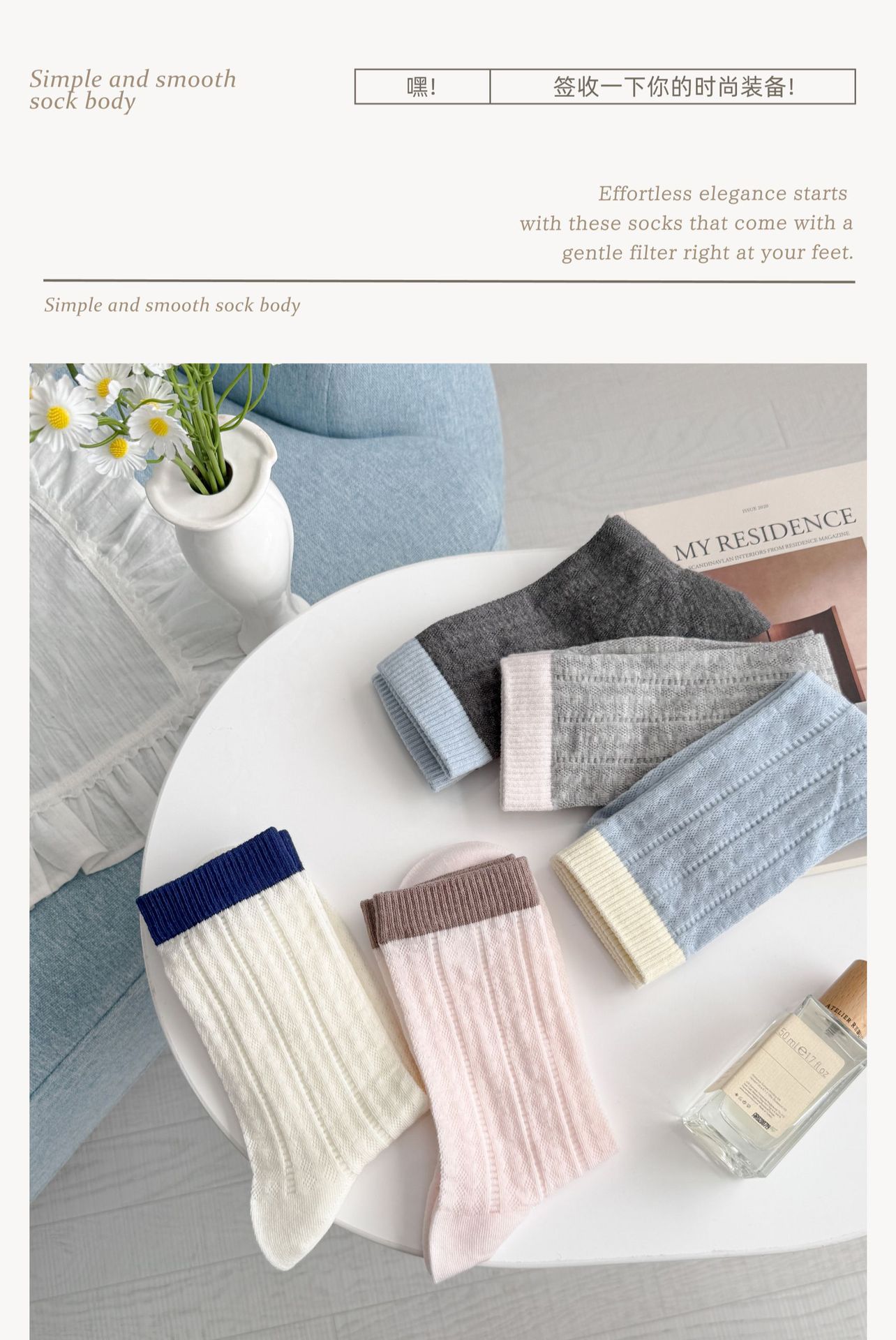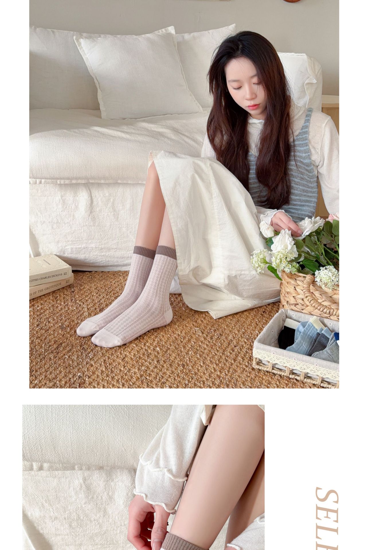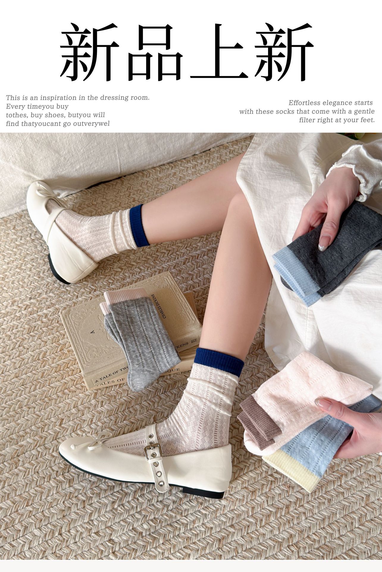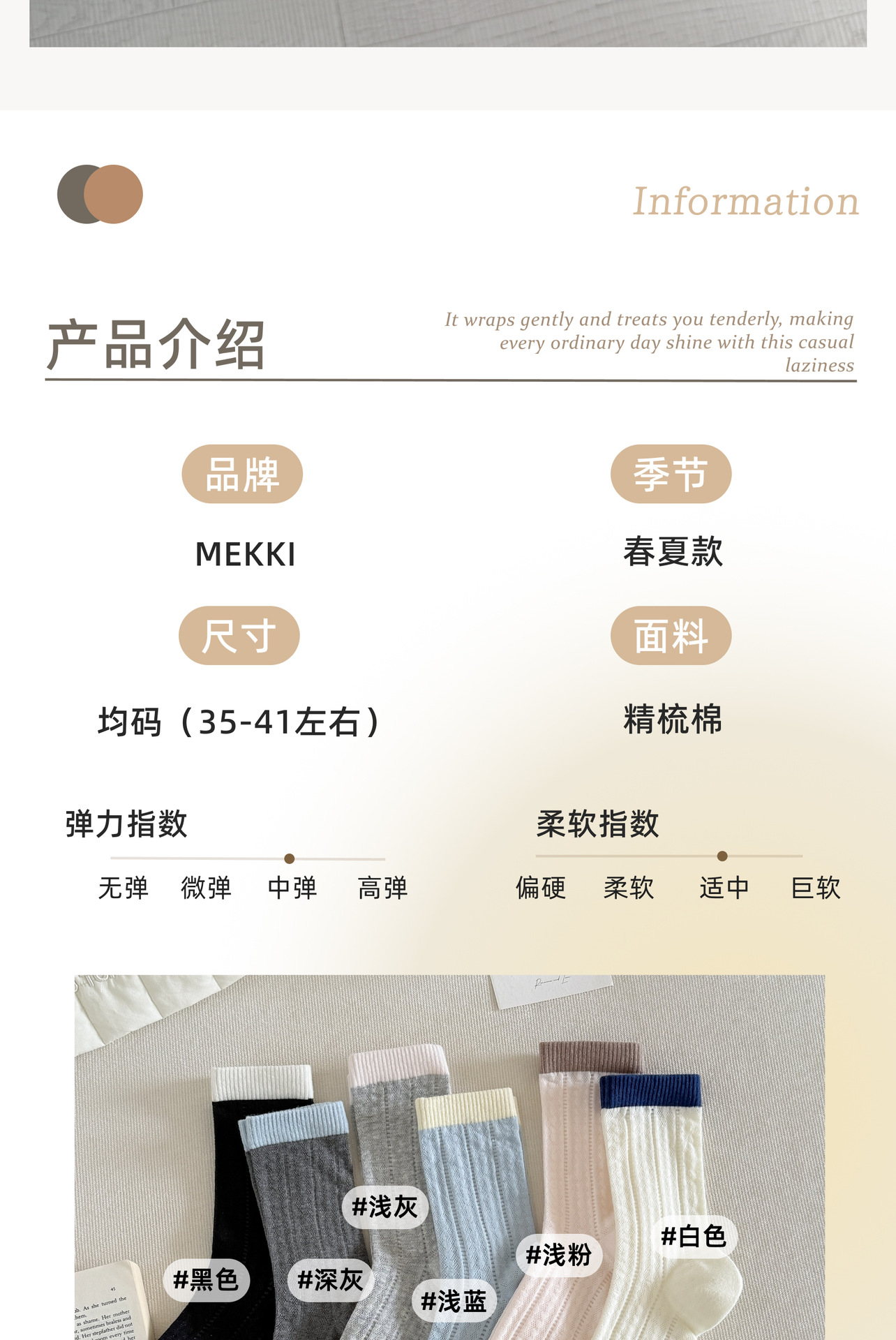 【39.9元5双,下单拍5】春夏袜子新款ins拼色网眼薄款竖条纹中筒袜糖果色精梳棉女袜ZXFX2026