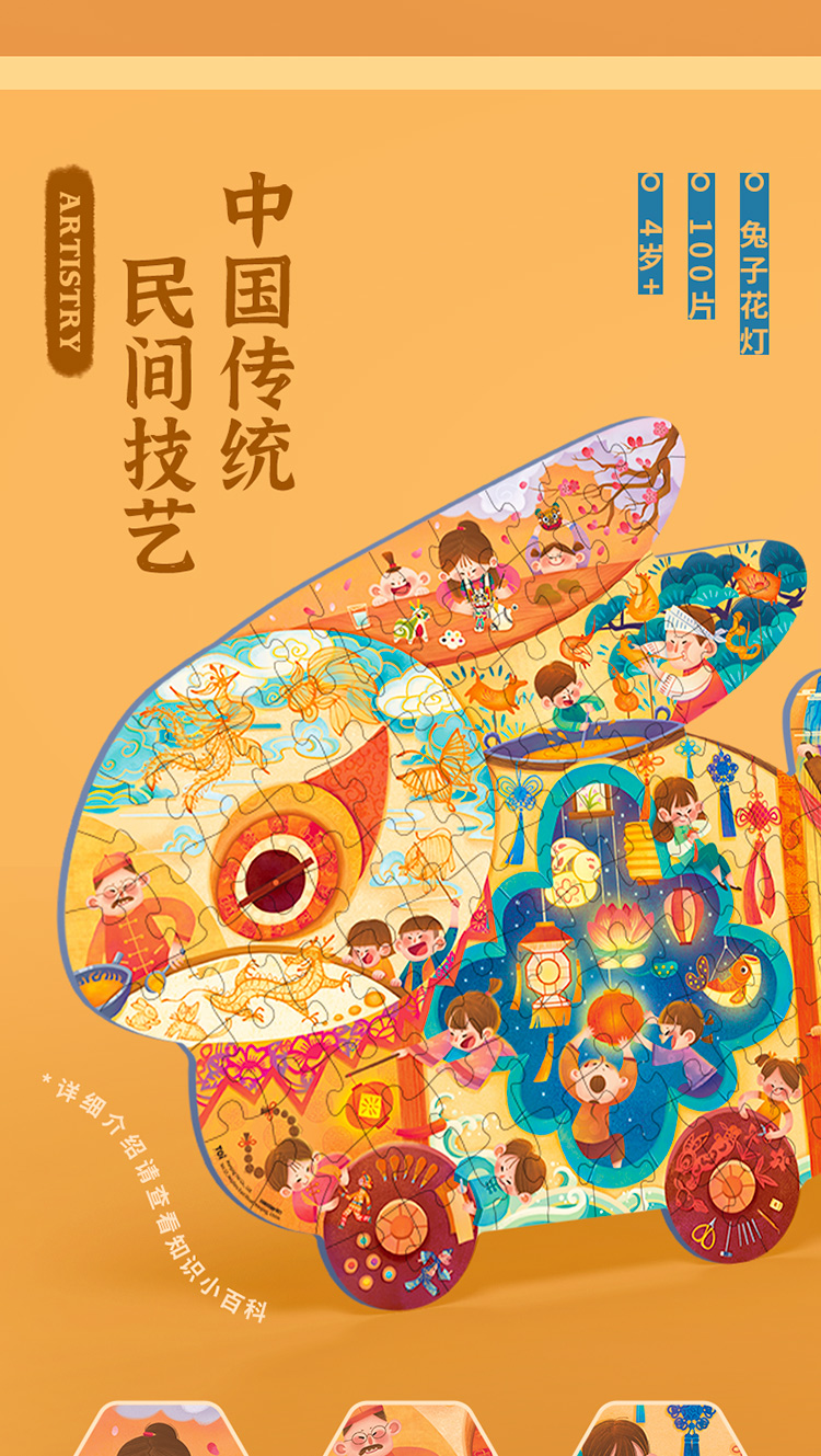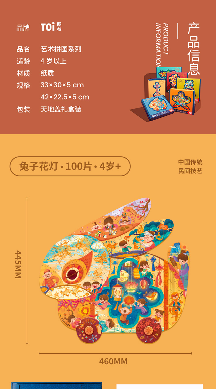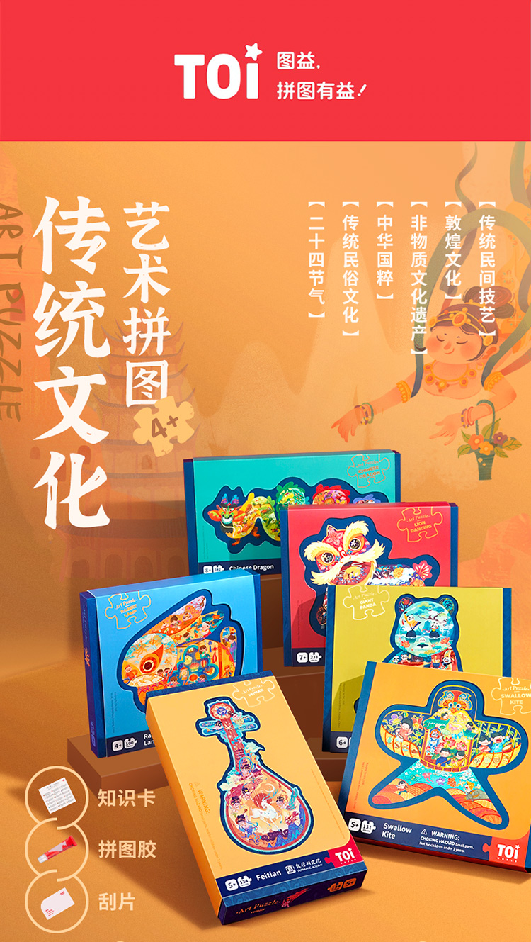 【TOI图益官方日销】 国风艺术拼图 -兔子灯/纸鸢/舞狮/熊猫/中国龙/飞天 六款可选 儿童国潮玩具宝宝礼物男孩女孩4-5-6-9岁