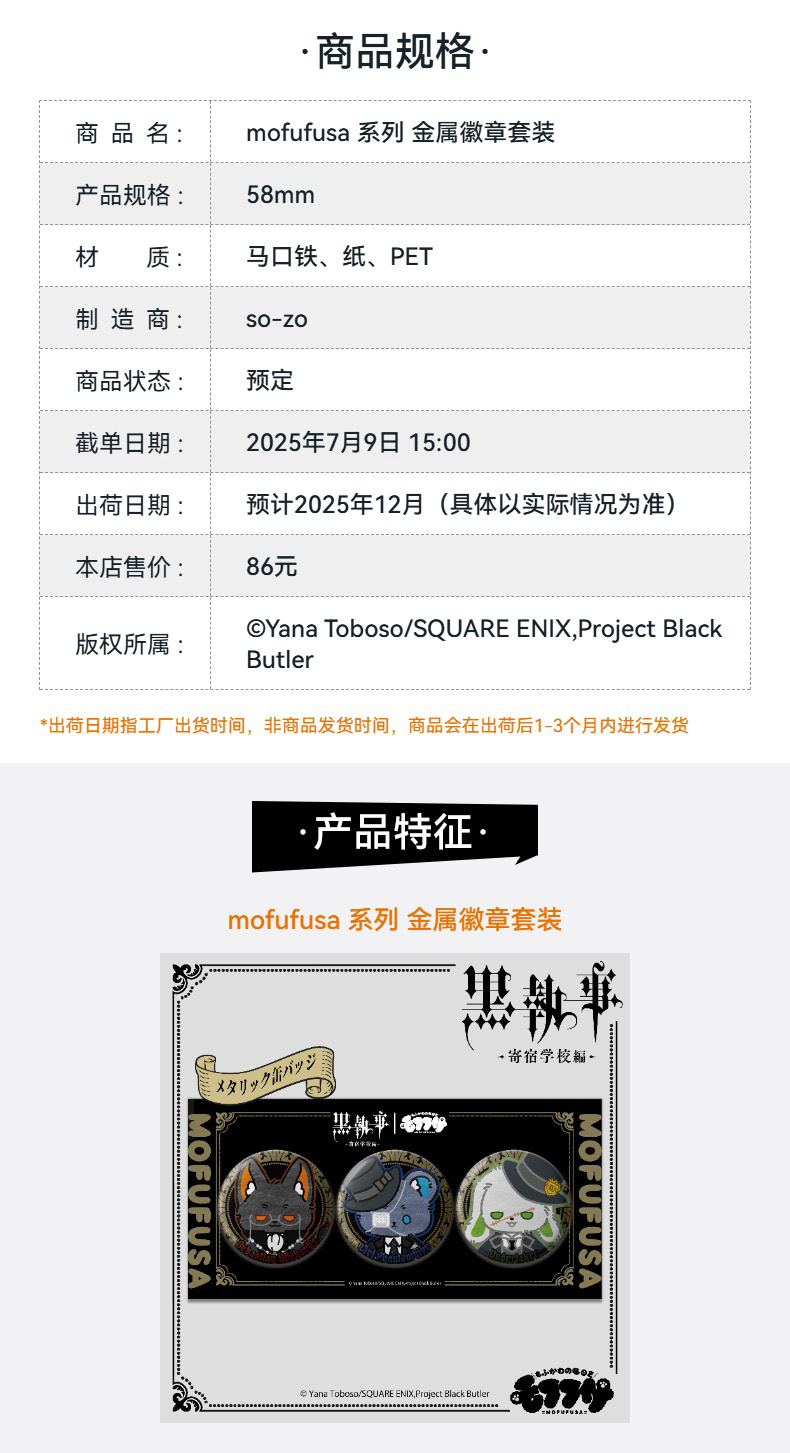 【GSC现货】mofufusa 系列 金属徽章套装 黑执事