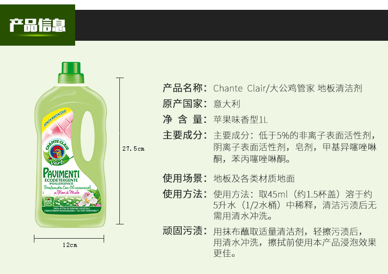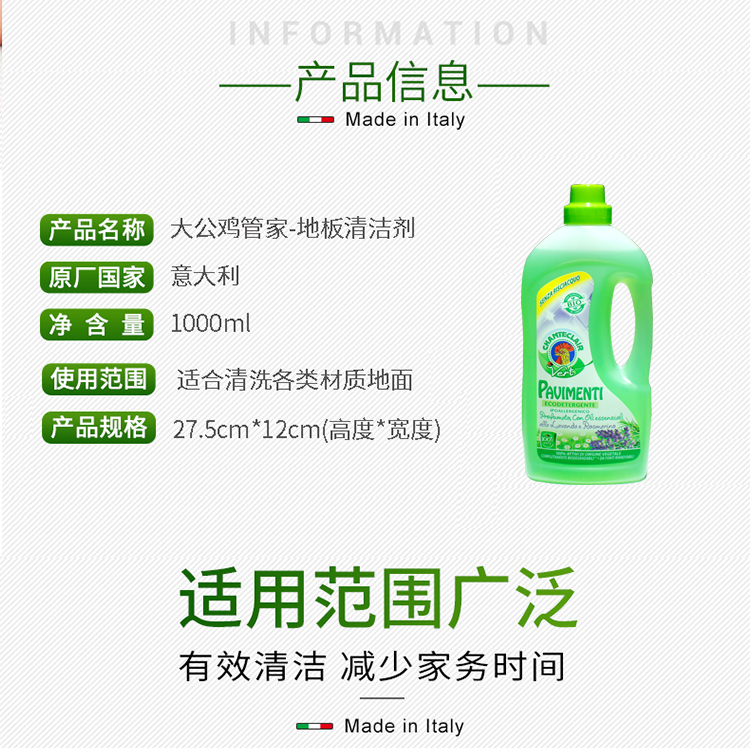 意大利进口大公鸡头地板清洁剂花香薰衣草花香1000ml【GPQ】