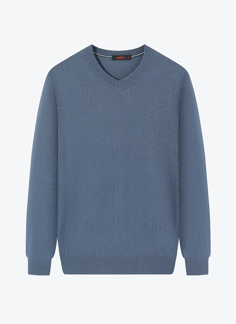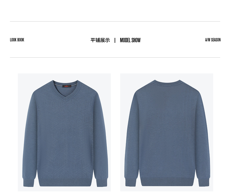 【可机洗】柒牌男士毛衣秋冬新款时尚字母提花含羊毛V领保暖毛衫126Y70050
