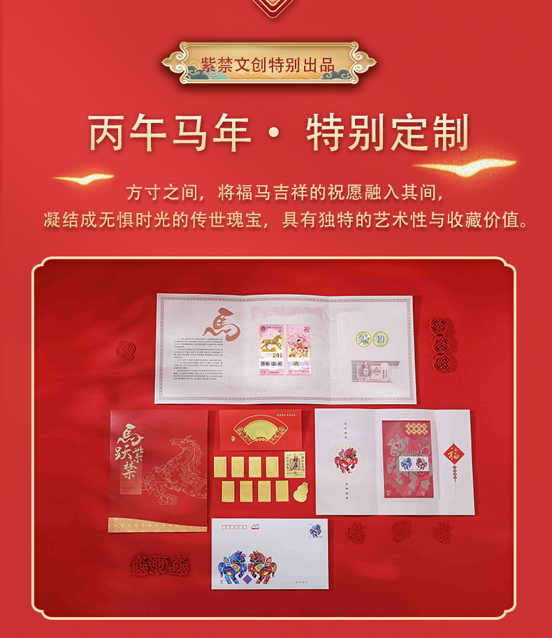 【现货】【马跃紫禁】马年珍藏册,福马迎新春2026马年纪念钞币马年邮票,紫禁文创金箔钞手机贴大套装