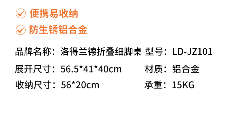 洛得兰德铝合金细脚桌LD-JZ101黑色