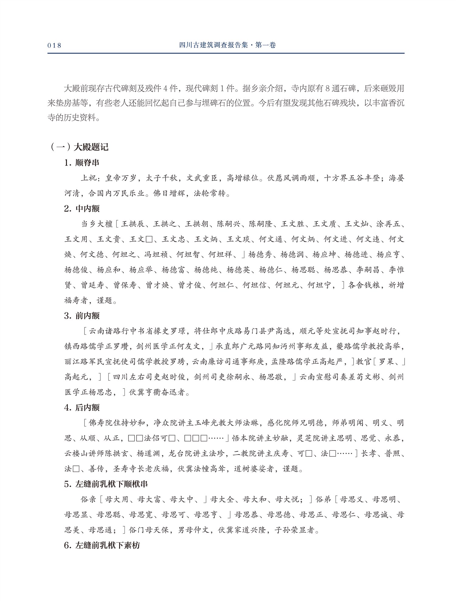 •此次出版的是丛书第一卷,后续各卷会根据调查、撰写进度,陆续出版。第一卷共包括7处古建筑的调查报告,分别是广元市剑阁县香沉寺、昭化区文庙,南充市阆中市五龙庙、张桓侯祠,南充市南部县观音庵、真相寺,绵阳市平武县豆叩寺。另有1篇上述建筑的木材树种鉴定报告。