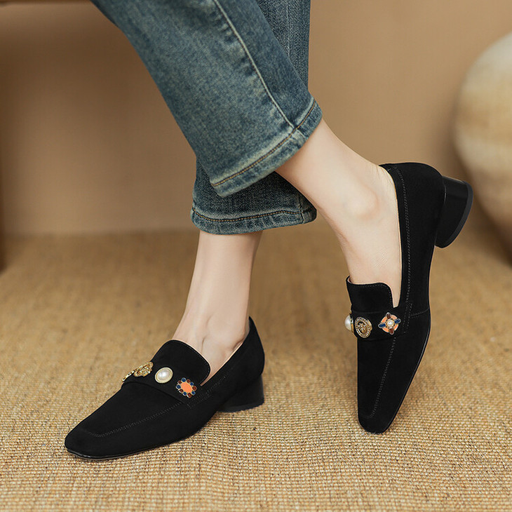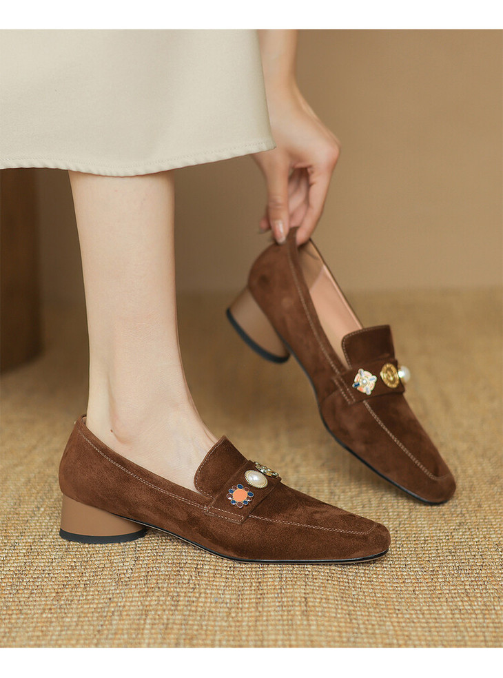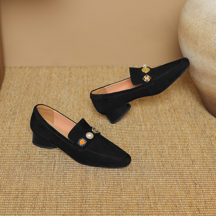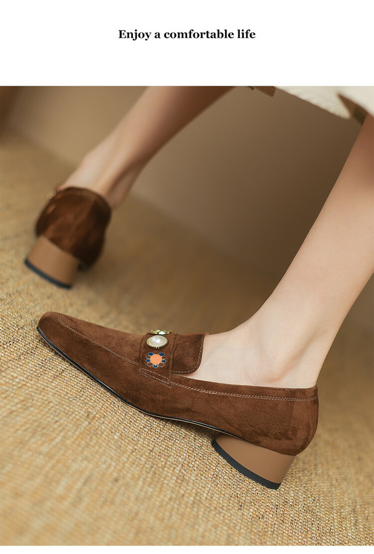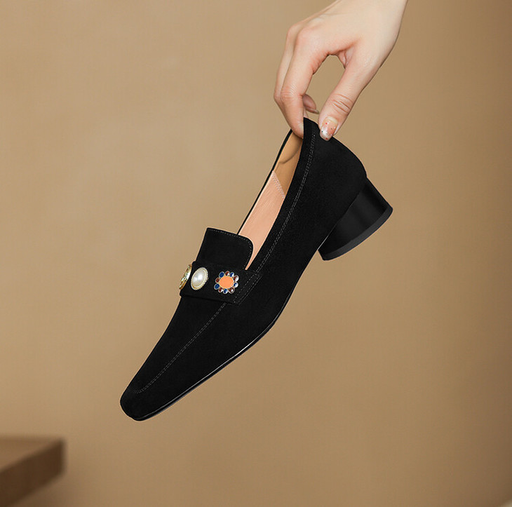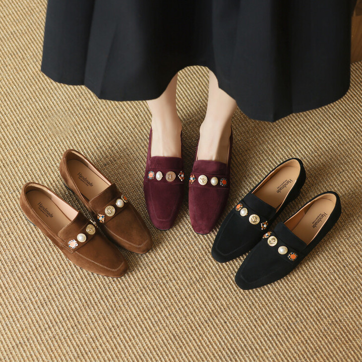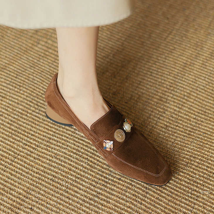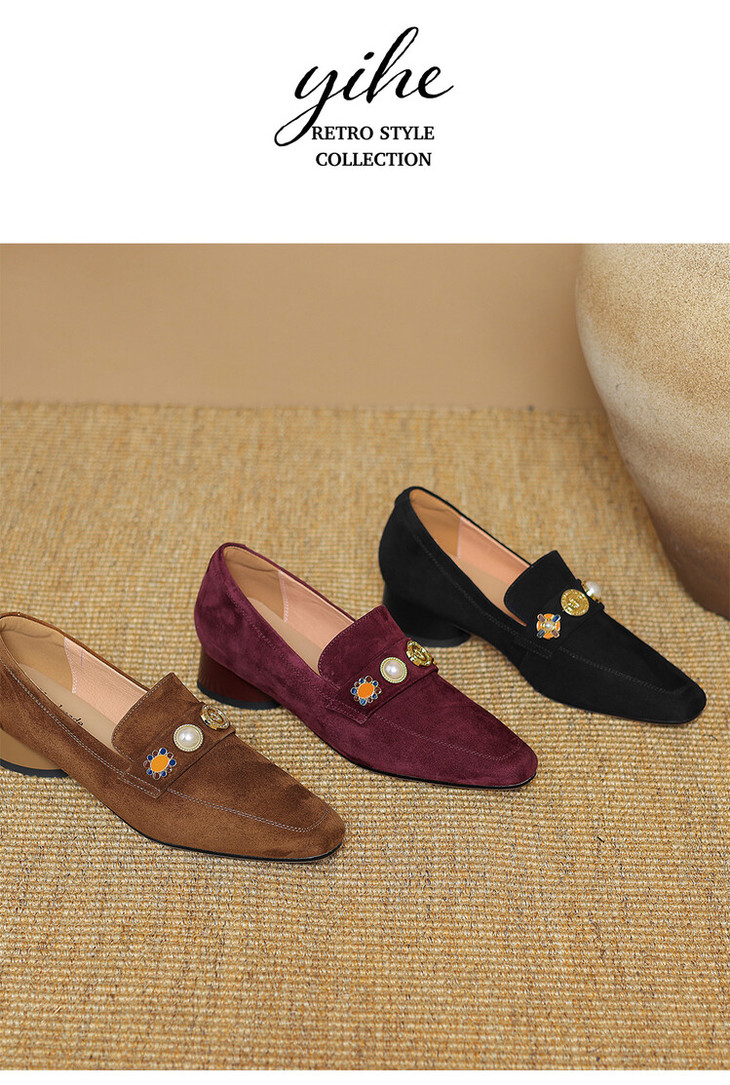 【预售5天】复古乐福鞋秋季新款女鞋粗跟低跟方头低帮深口单鞋LD&6956