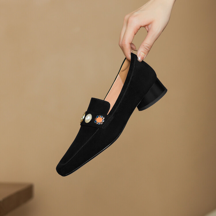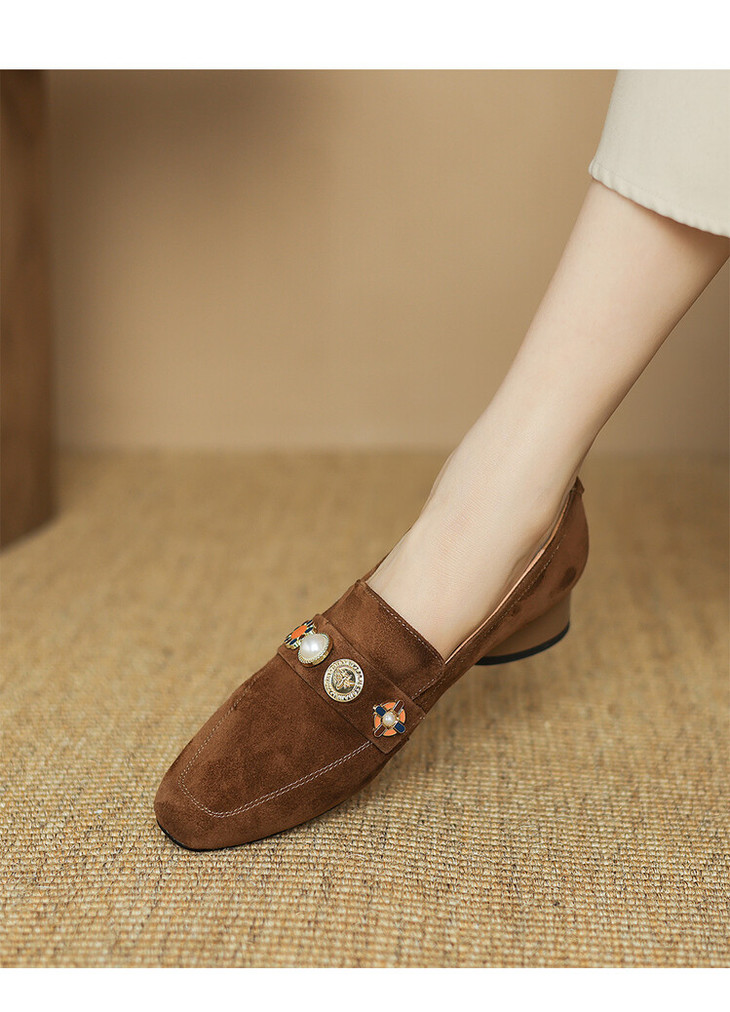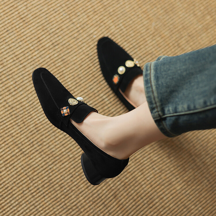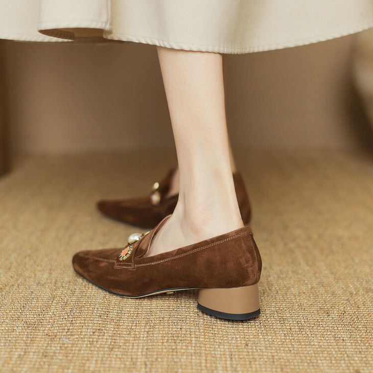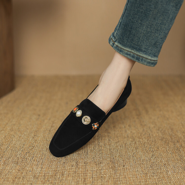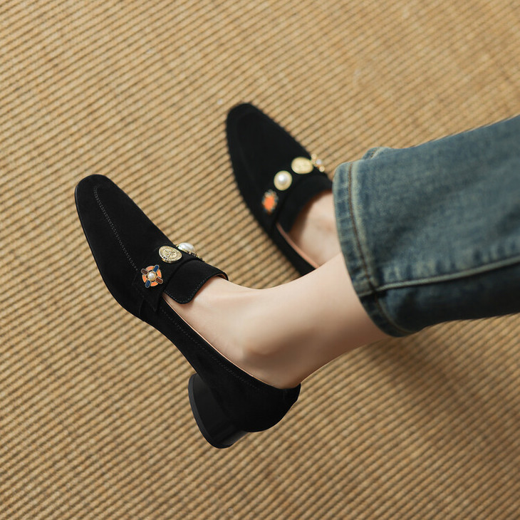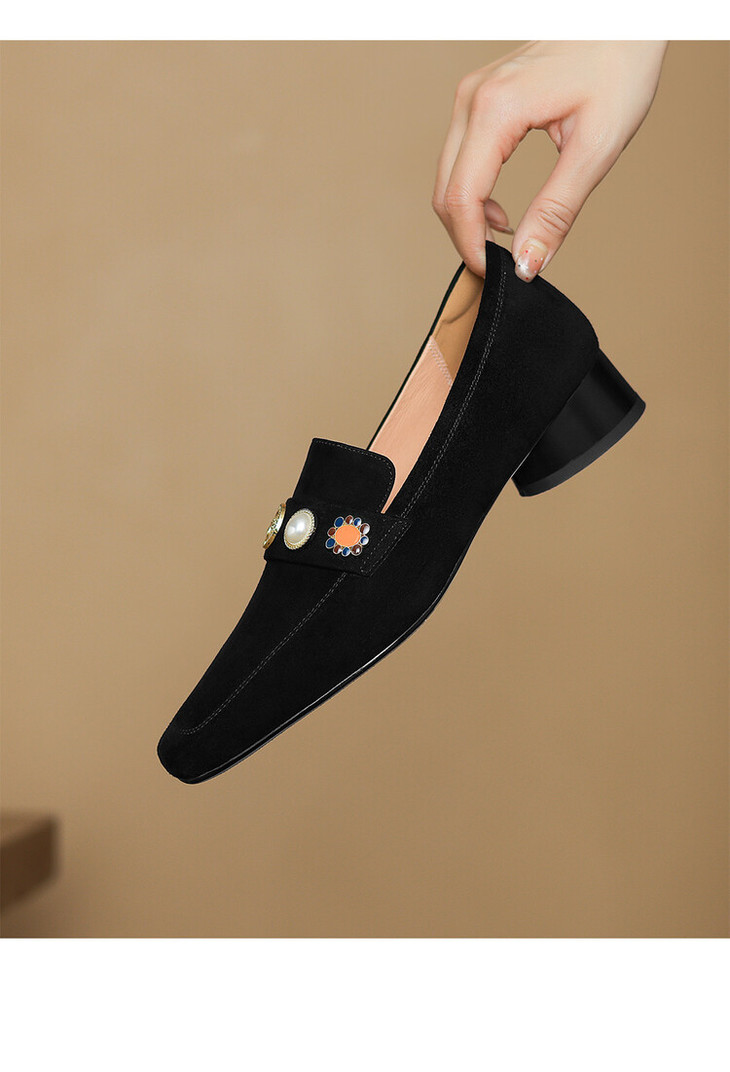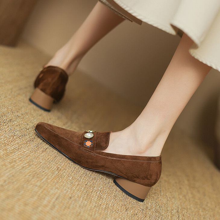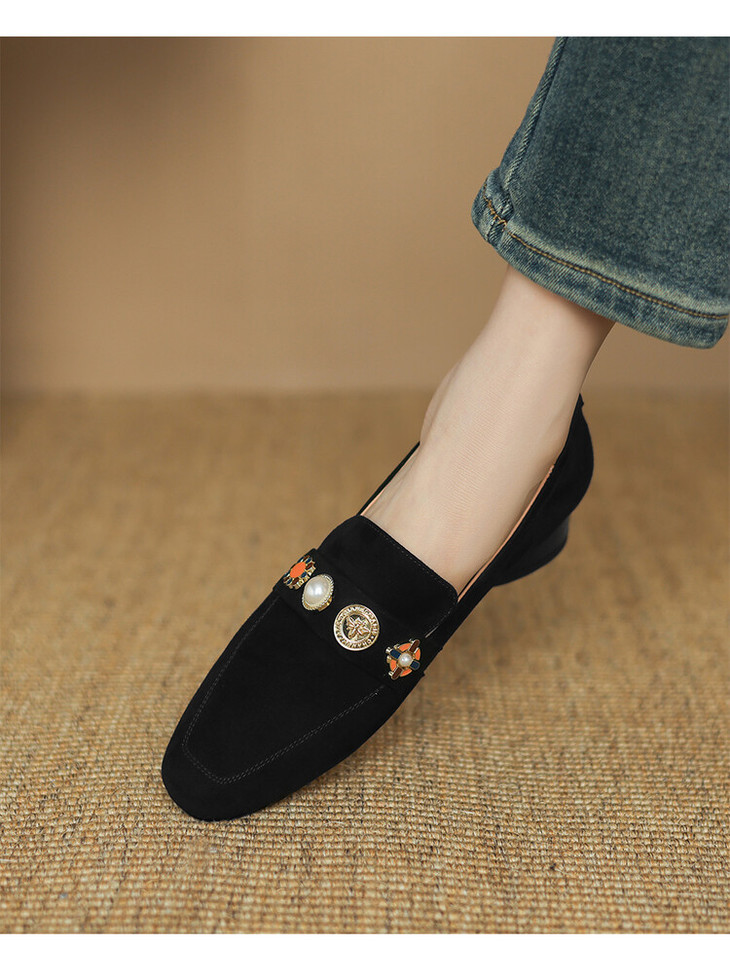 【预售5天】复古乐福鞋秋季新款女鞋粗跟低跟方头低帮深口单鞋LD&6956