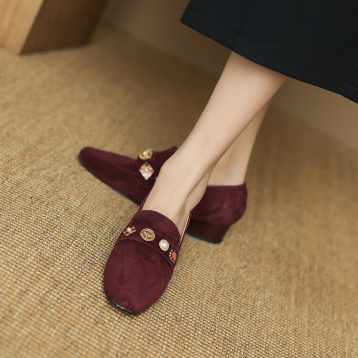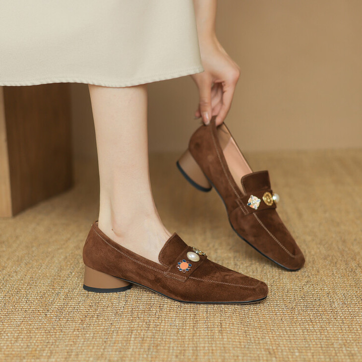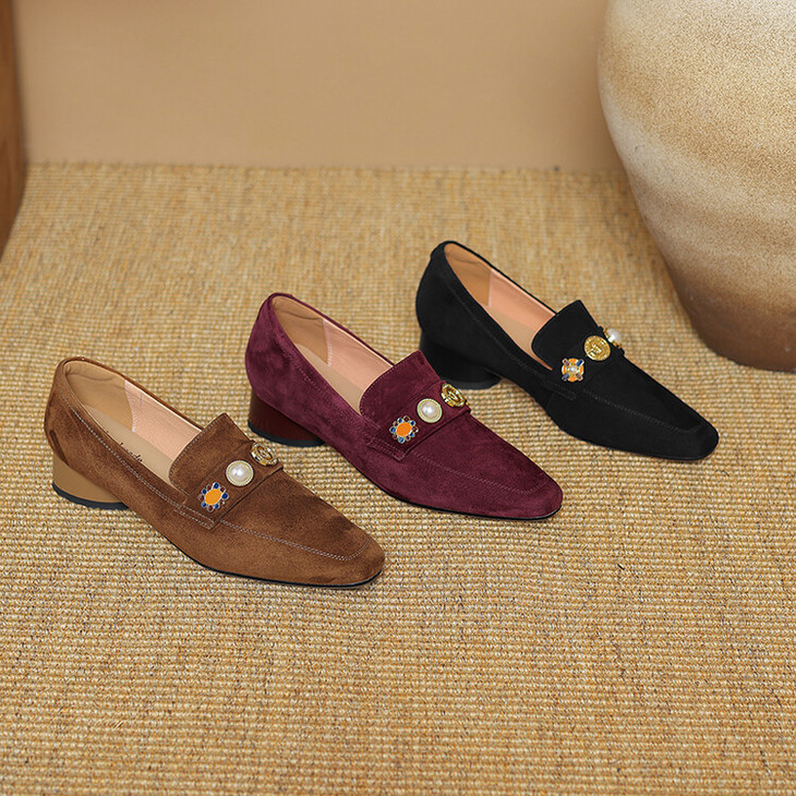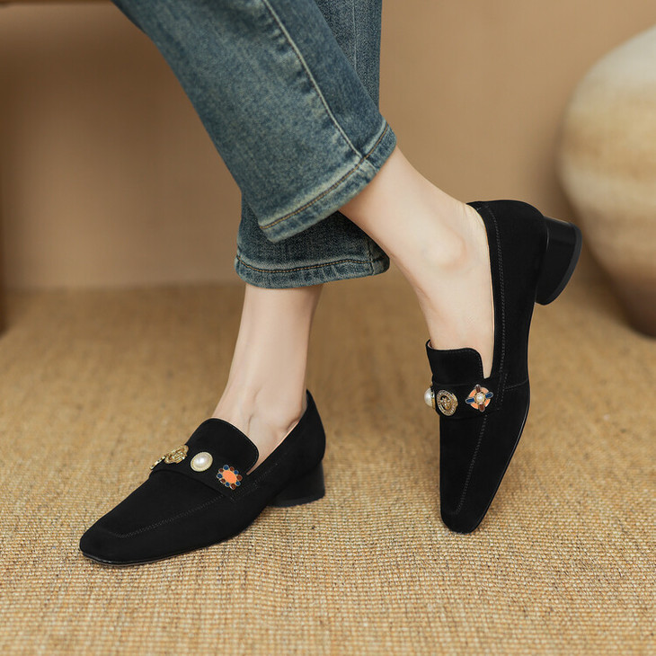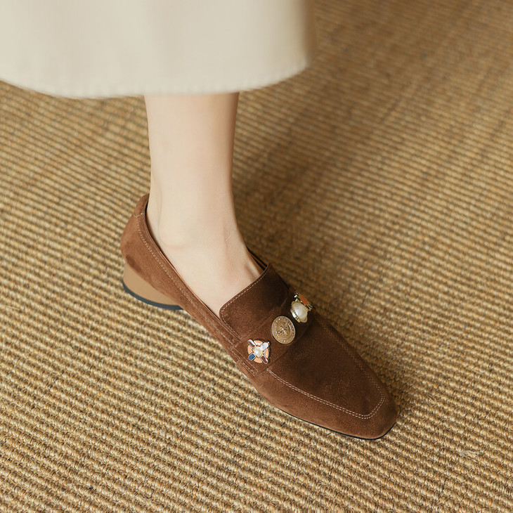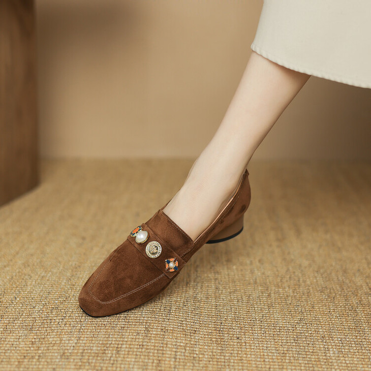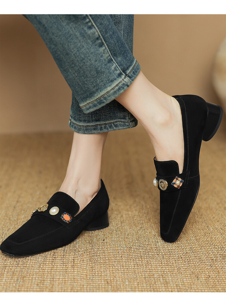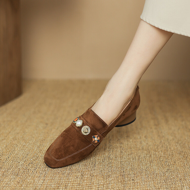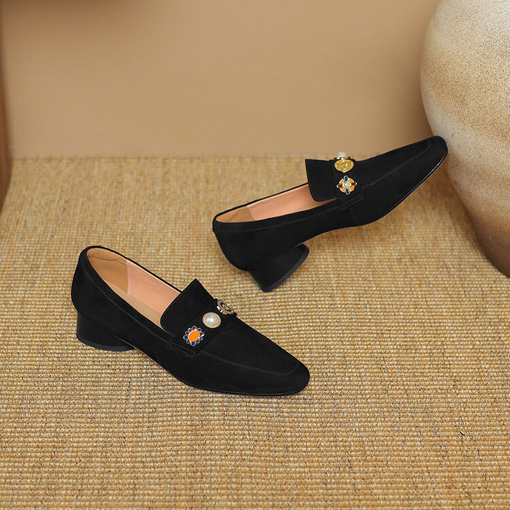 【预售5天】复古乐福鞋秋季新款女鞋粗跟低跟方头低帮深口单鞋LD&6956