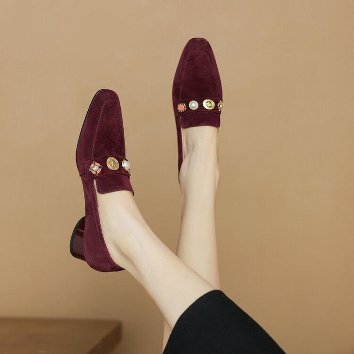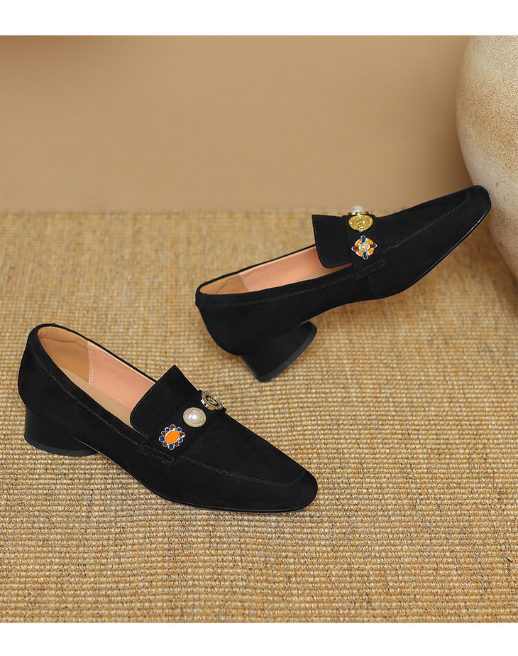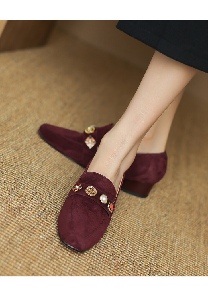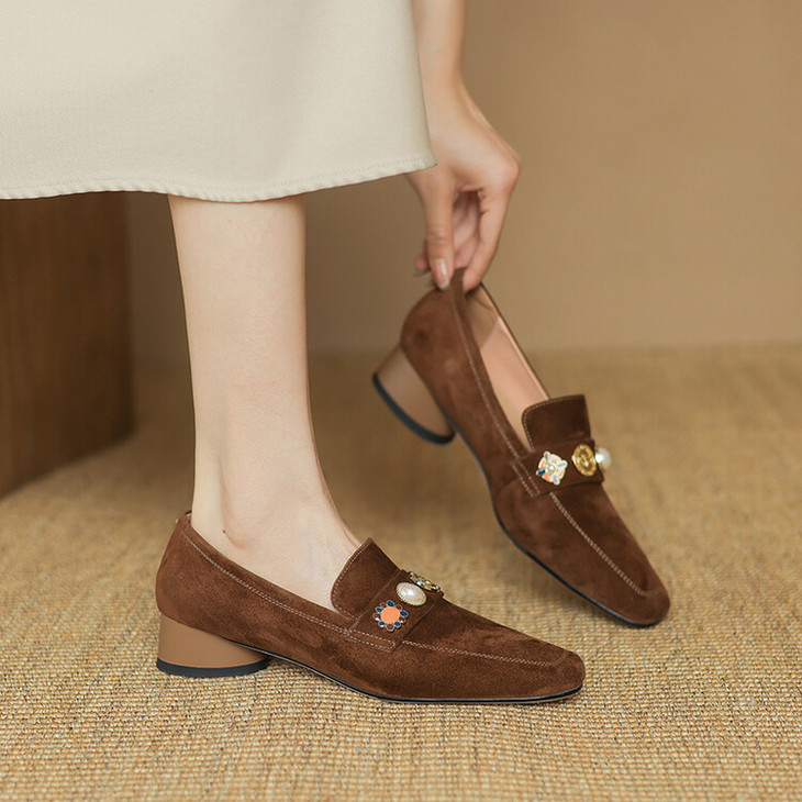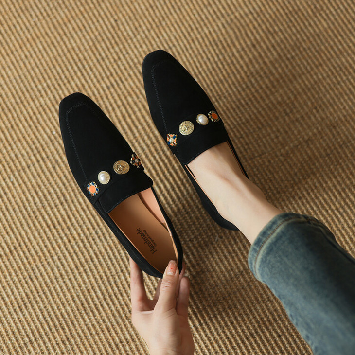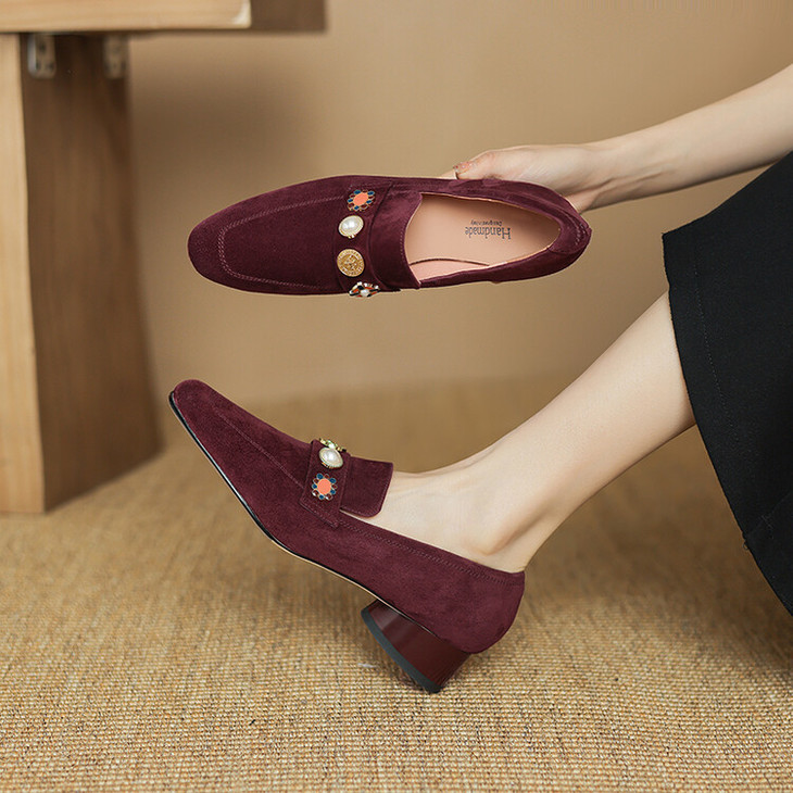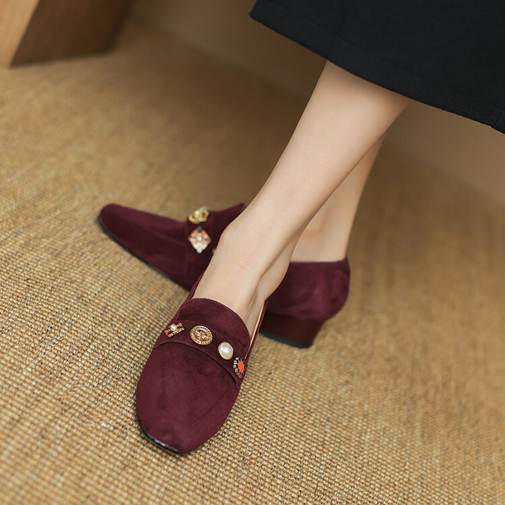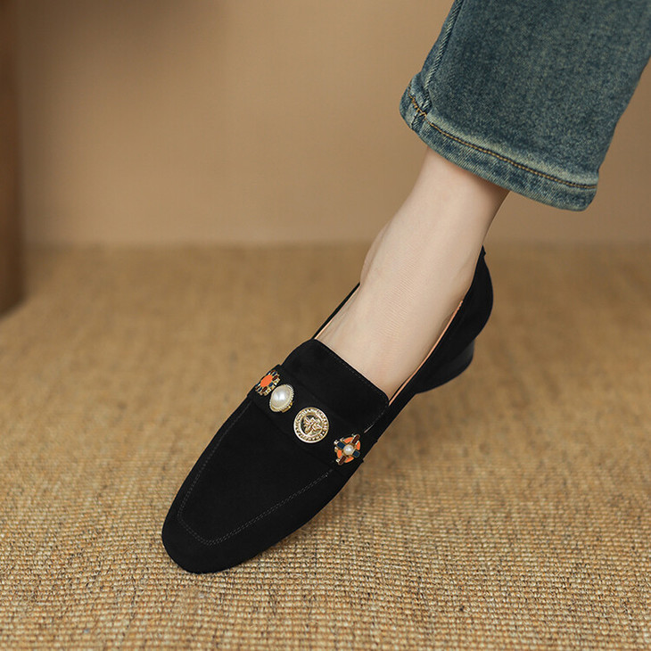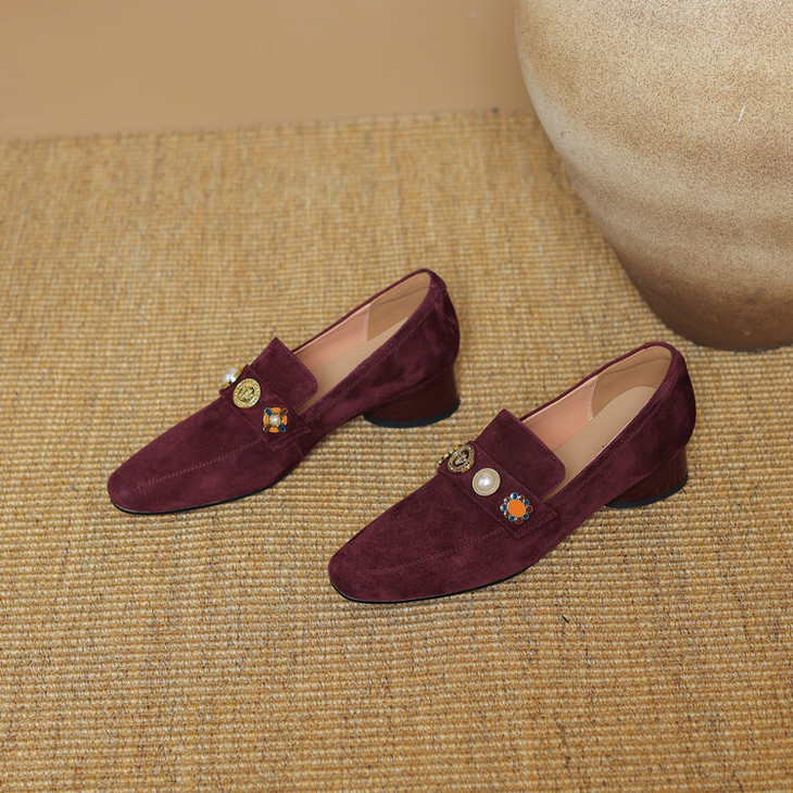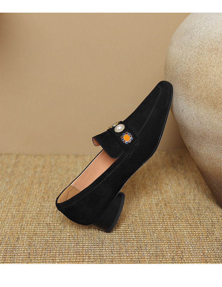 【预售5天】复古乐福鞋秋季新款女鞋粗跟低跟方头低帮深口单鞋LD&6956
